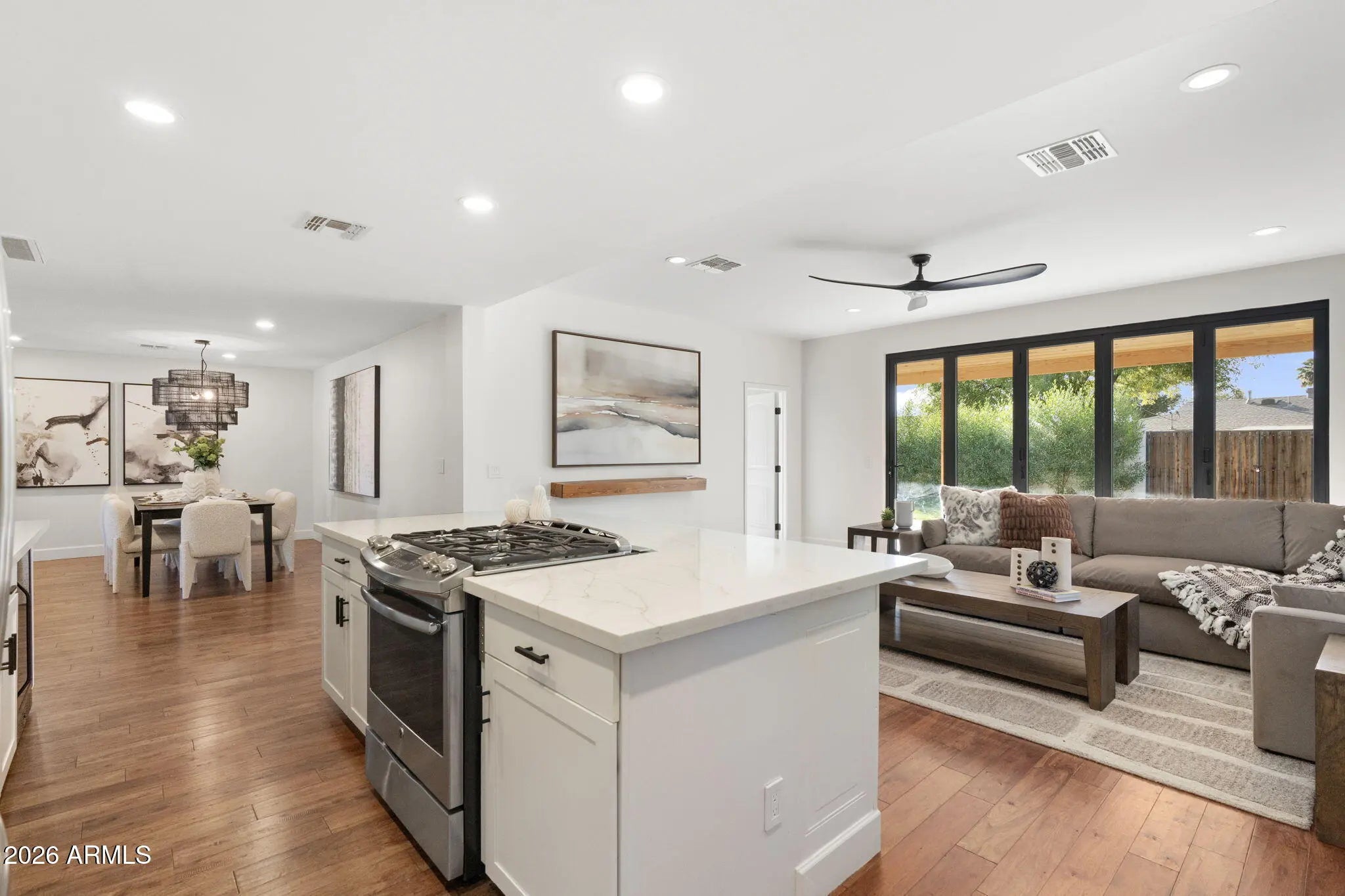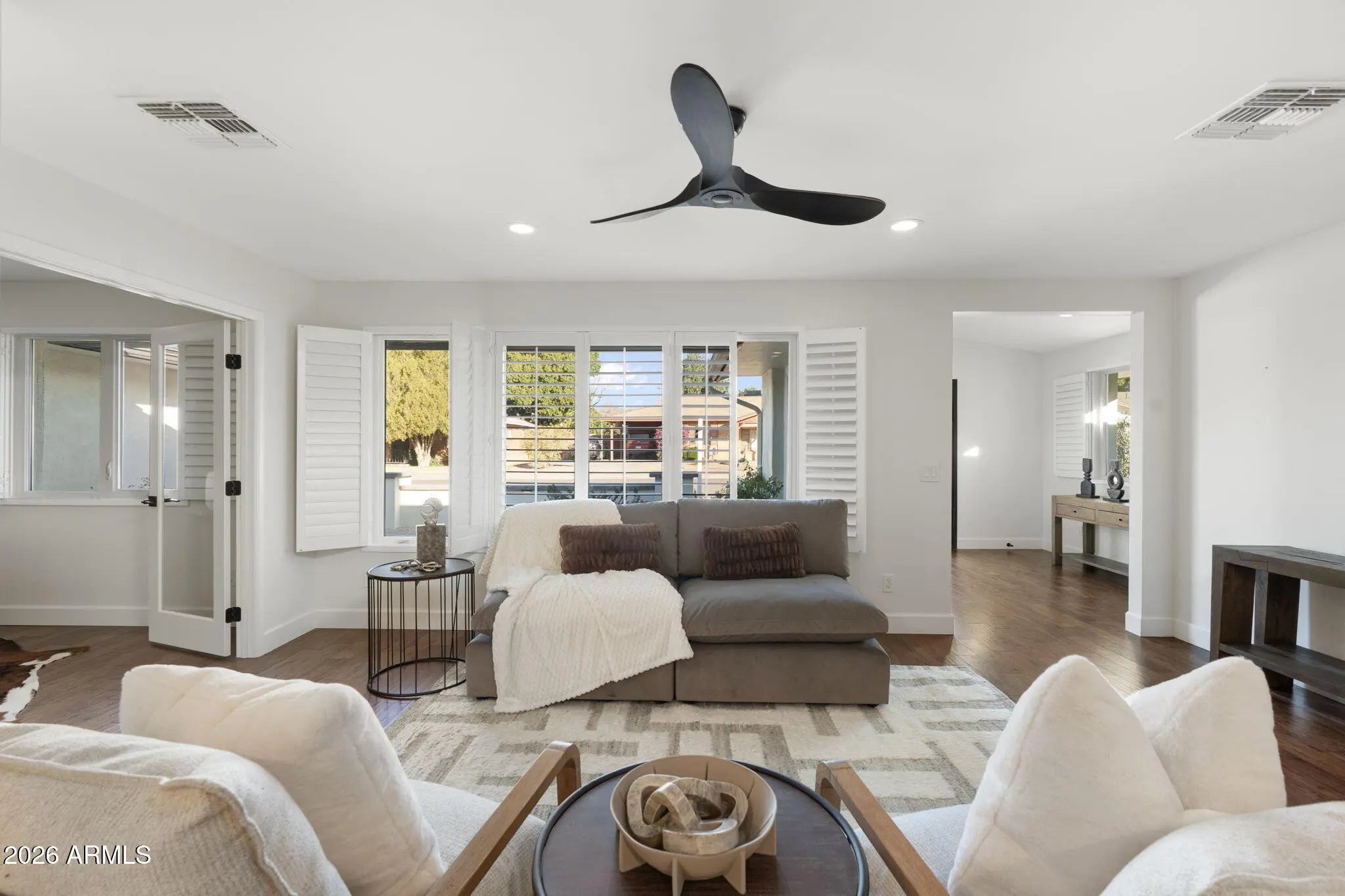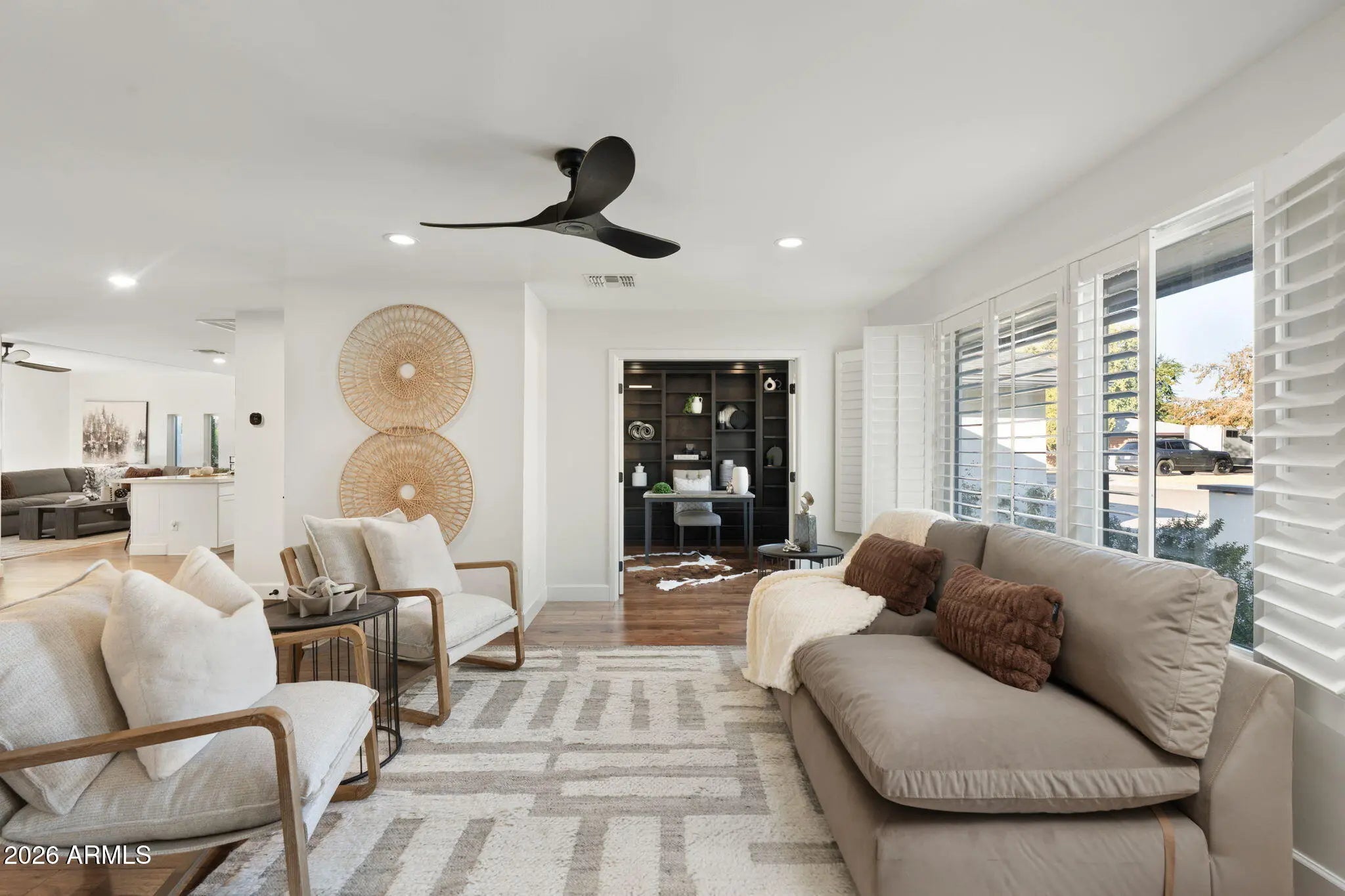 This exceptional residence delivers the rare combination of timeless Arcadia charm and high-end modern upgrades all completed with meticulous attention to detail. From the moment you arrive, the quality is undeniable. A FULL ROOF REPLACEMENT (2024) with a 10-YEAR TRANSFERABLE WARRANTY, TWO NEW WATER HEATERS (2024), and FRESH INTERIOR & EXTERIOR PAINT (2024) set the tone for a home that's been fully refreshed with intention and care. The curb appeal is elevated with a NEWLY DESIGNED FRONT YARD LANDSCAPE, elegant pavers, and lush landscaping on auto-timers ALL UPDATED IN 2024 creating a sophisticated arrival experience that hints at what's waiting inside. Step through NEW ARCADIA DOORS (2024) and feel the natural light flood in, drawing you into open, airy living spaces crafted for both everyday living and unforgettable entertaining. The chefs kitchen has been FULLY UPDATED IN 2024 showcasing QUARTZ COUNTERTOPS, a modern sink and fixtures, designer hardware, and a reverse osmosis system that blends luxury and function seamlessly. Throughout the home, PLANTATION SHUTTERS (2024), SMART RECESSED LIGHTING (2024), and STUNNING REAL WOOD FLOORS create a warm yet refined ambiance. The PRIMARY SUITE features a CUSTOM CLOSET SYSTEM designed to feel like a private dressing room, while the SPLIT FLOOR PLAN and OPTIONAL 4TH BEDROOM OR OFFICE offer thoughtful flexibility for modern living. The BACKYARD IS A PRIVATE OASIS fully redesigned in 2024 with lush landscaping, a RAISED FENCE LINE FOR PRIVACY, EXTENDED PATIO, and FRESHLY RESEEDED LAWN (2025). It's the perfect setting for golden-hour dinners, weekend gatherings, or quiet mornings surrounded by beauty. Even the GARAGE HAS BEEN TRANSFORMED, featuring NEW FLOORING, CUSTOM CABINETRY, and an EV CHARGER a flawless blend of utility and style. This home is surrounded by Arcadia's best scenic hikes, legendary restaurants, local boutiques, and the charm that makes this neighborhood so sought after.