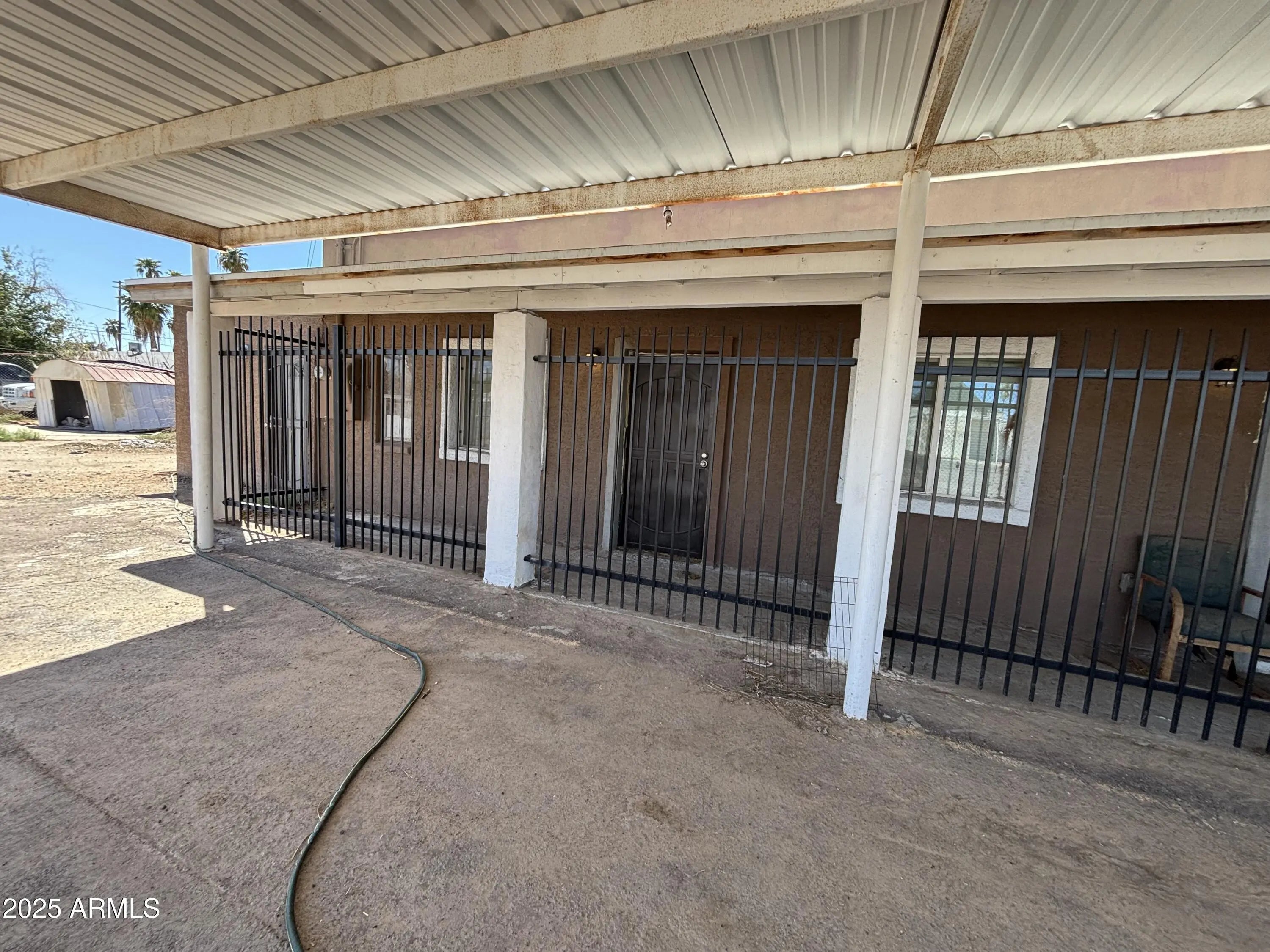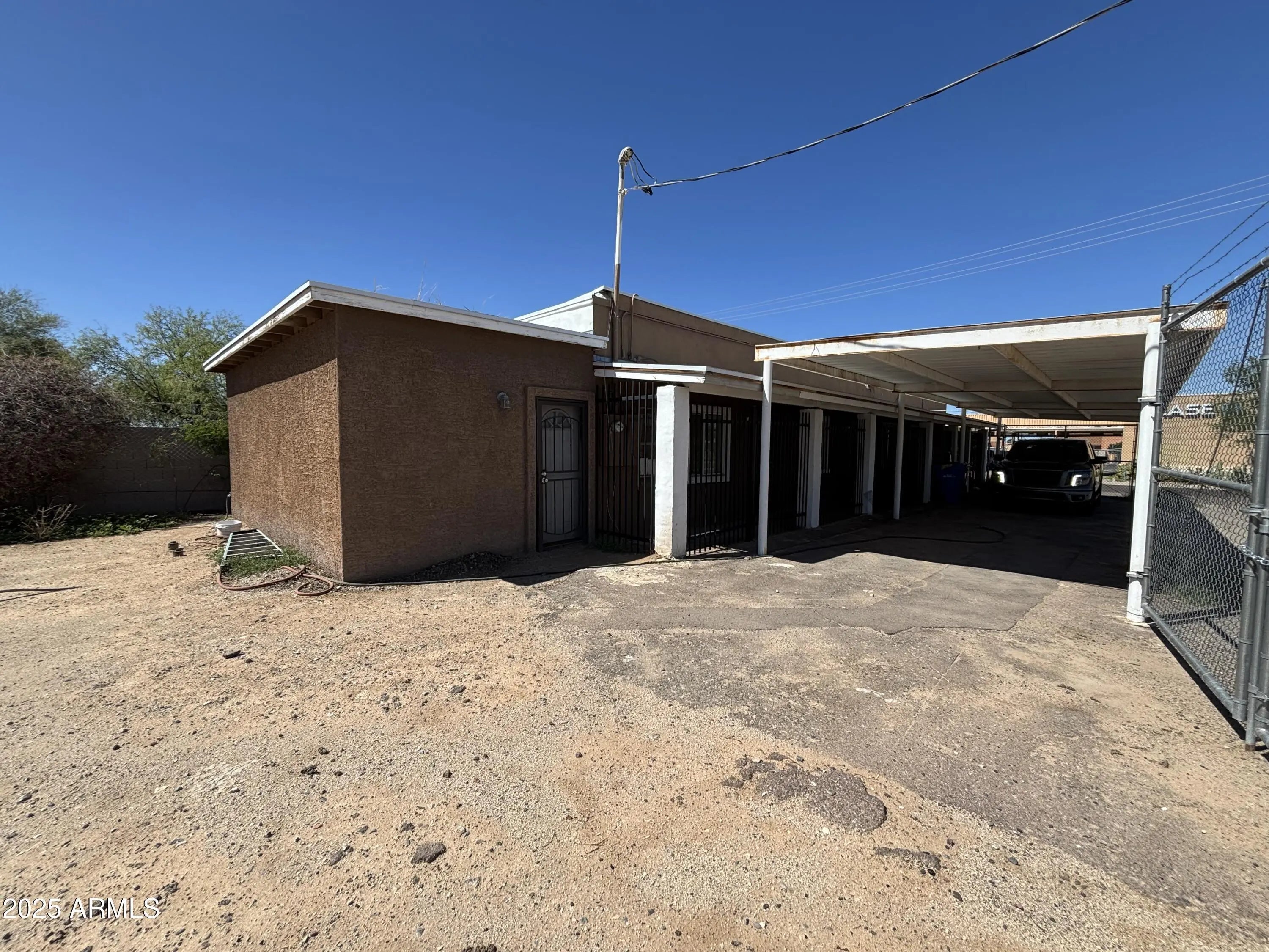 Functional single-story building features three large versatile rooms with connecting interior doors that may accommodate office space, light commercial enterprise or storage. Two bathrooms and a second hallway exit are situated along south side of building. Owner added new septic and water lines, water heater, roof, electrical lines and split AC systems. Covered parking area may accommodate at least three vehicles, and the entire property is encompassed by chain-link and barbed wire fencing as well as tubular steel fencing and gate along the patio exterior. There is also a spacious exterior yard south of the building perfect for expansion. Conveniently located just west of Central Avenue along the light rail route!