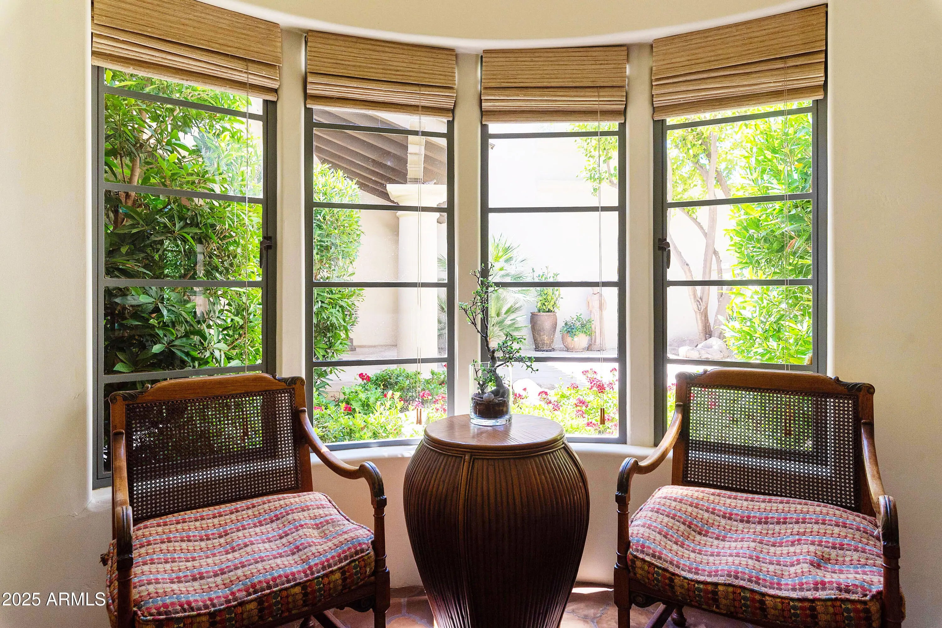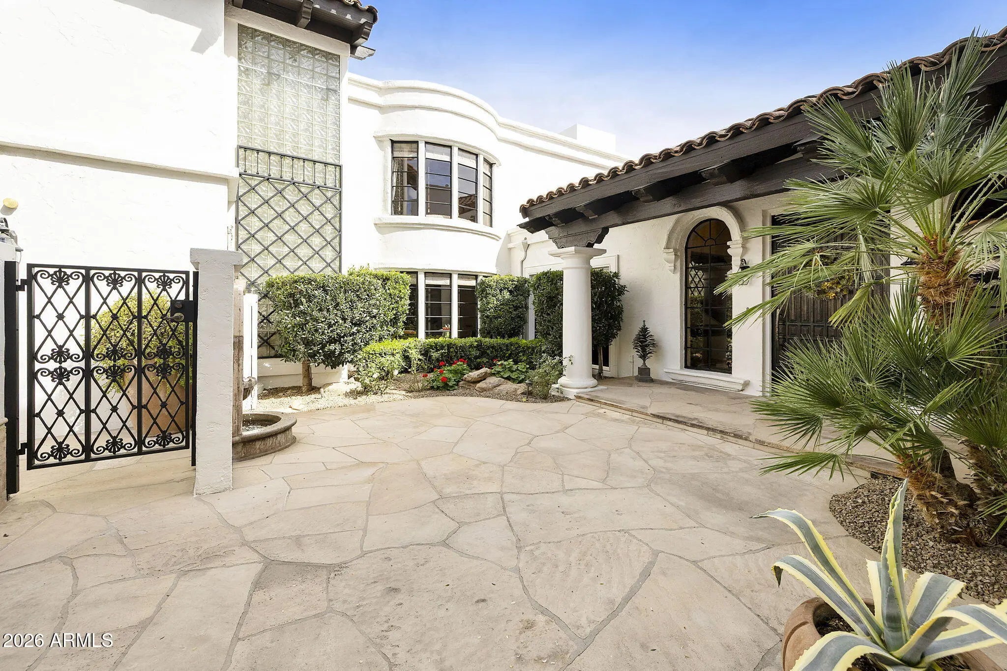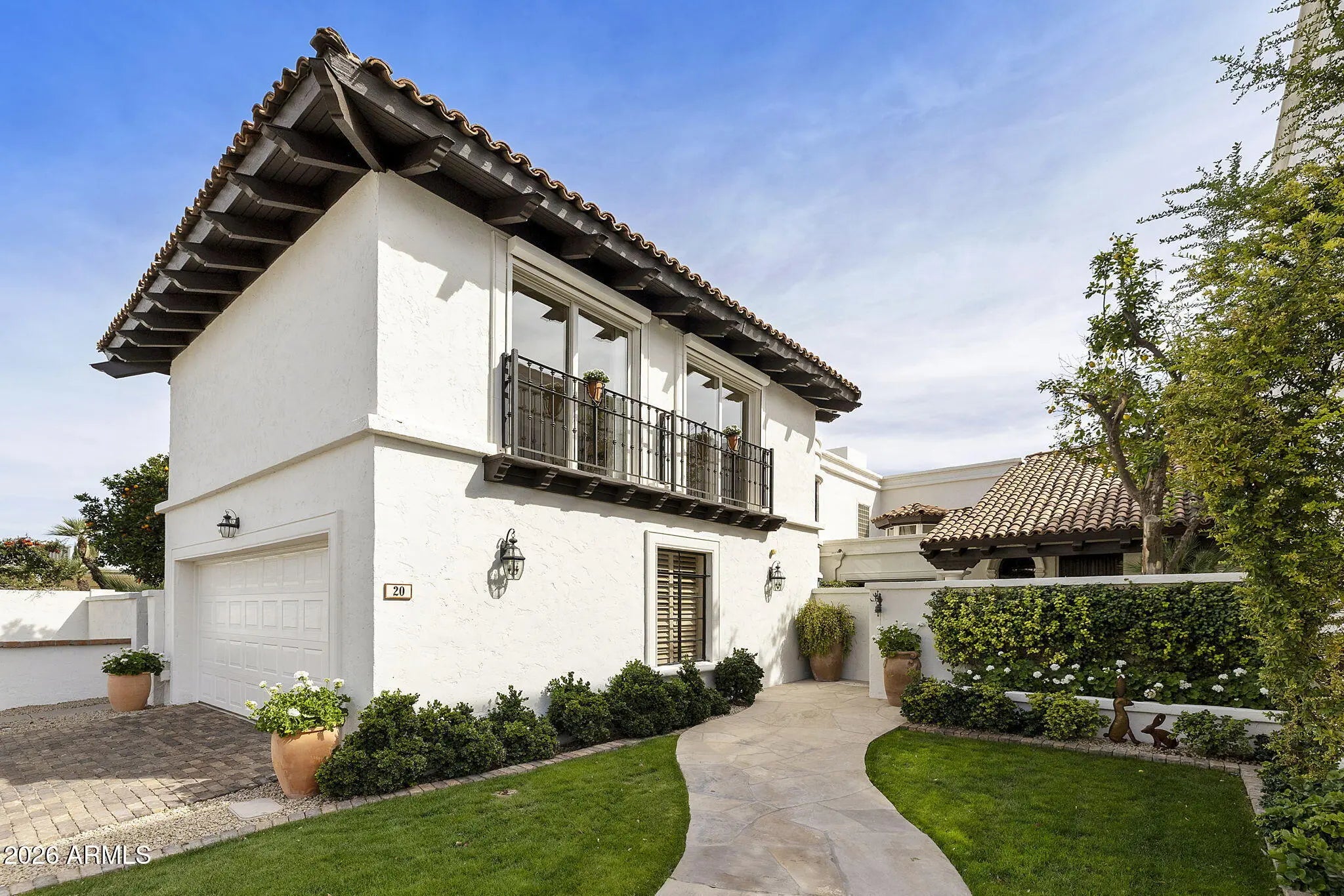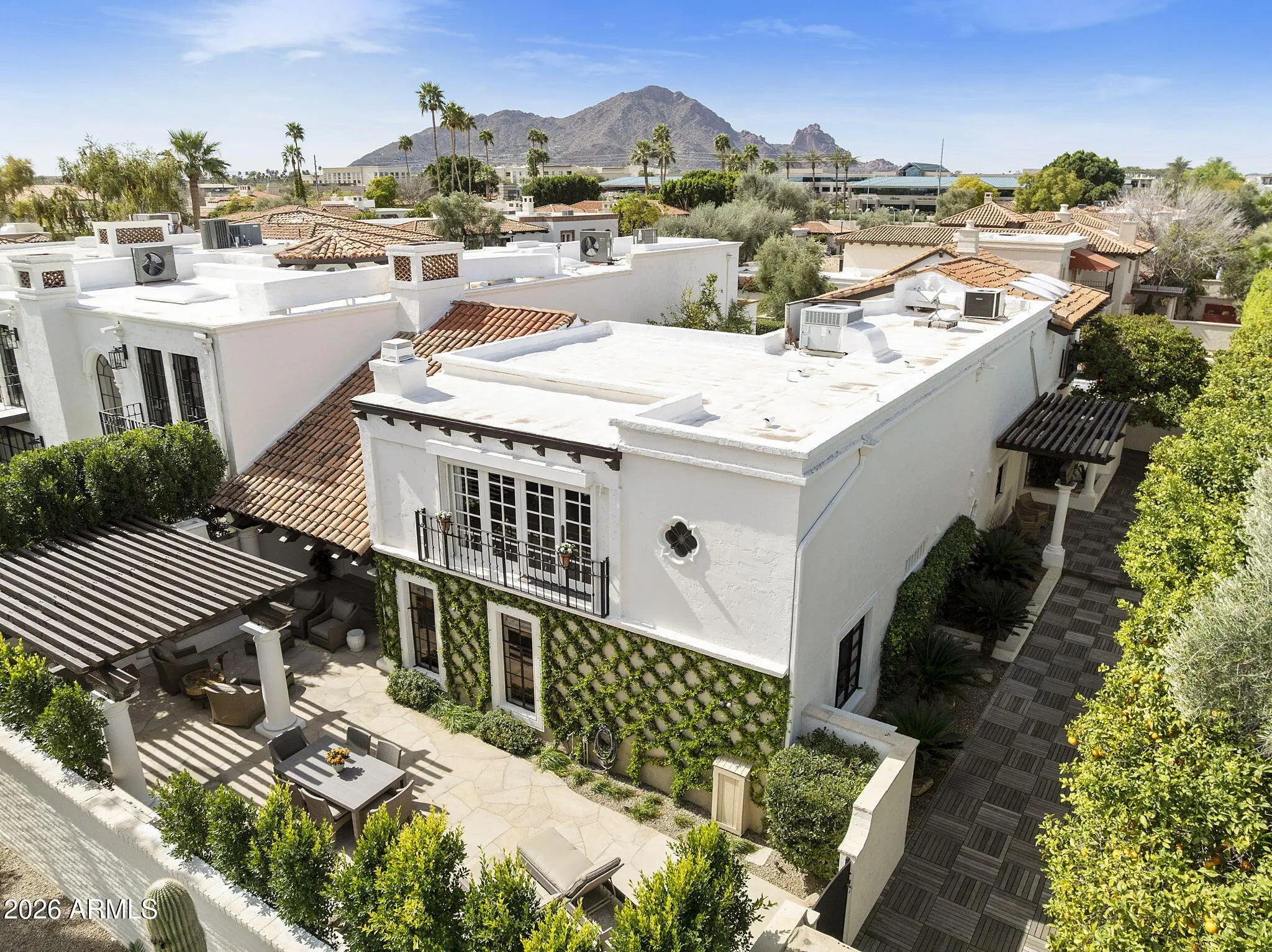 FOR THOSE WHO CHERISH THE FINER DETAILS! Not often will you find a property with the defining character as this home. European yet modern details masterfully & thoughtfully adorn this private treasure. The property offers a prime END location WITH ONLY ONE COMMON WALL. Enchanting SIDE GARDEN with easy & unique street access for all garden and home contractors. Once inside you will enjoy custom designed wood floors, hand crafted iron staircase(s), plank/beam ceilings, fireplace w/dramatic facade, MAIN LEVEL bedroom suite with custom built-ins. Cozy family & living room nestled near the private outdoor area with fireplace, BBQ & newly updated Mediterranean private garden. European kitchen with custom cabinets, center island, top of the line appliances, BRIGHT BAY WINDOW with access to the side garden. This residence offers 4 PRIVATE ensuite bedrooms. Follow the front custom iron staircase to 3 of the guest suites. First owner suite is spacious and private. Cozy fireplace with sitting area. Large shower can be converted to a steam shower. Center guestroom offers a bay window seat and private bath. Additional fourth bedroom suite is bright and spacious. Mountain views, large sitting area, two closets and a private secondary staircase leading to main living area. Space for elevator if important. Amenities offered to Cuernavaca residents include pool and spa. Tennis, pickleball courts. Gym and gathering area. Location is prime, near all that Scottsdale and Paradise Valley offers in shopping, restaurants and outdoor activities. Be a part of the REVIVAL of the SPANISH COLONIAL DESIGN.