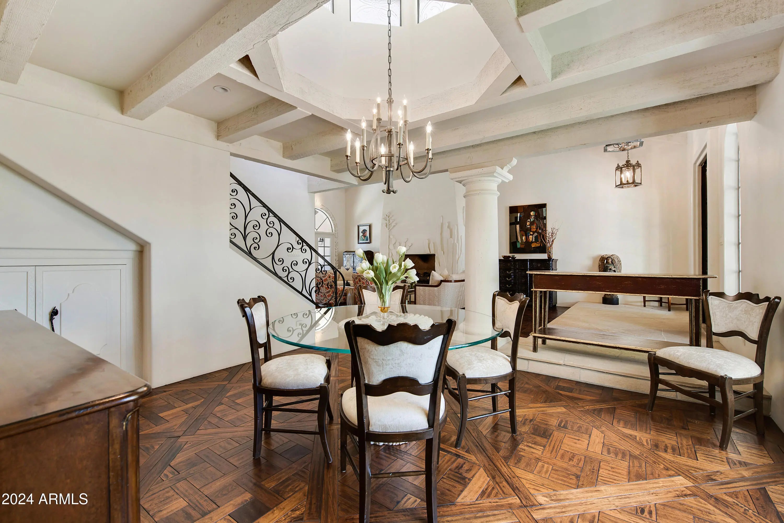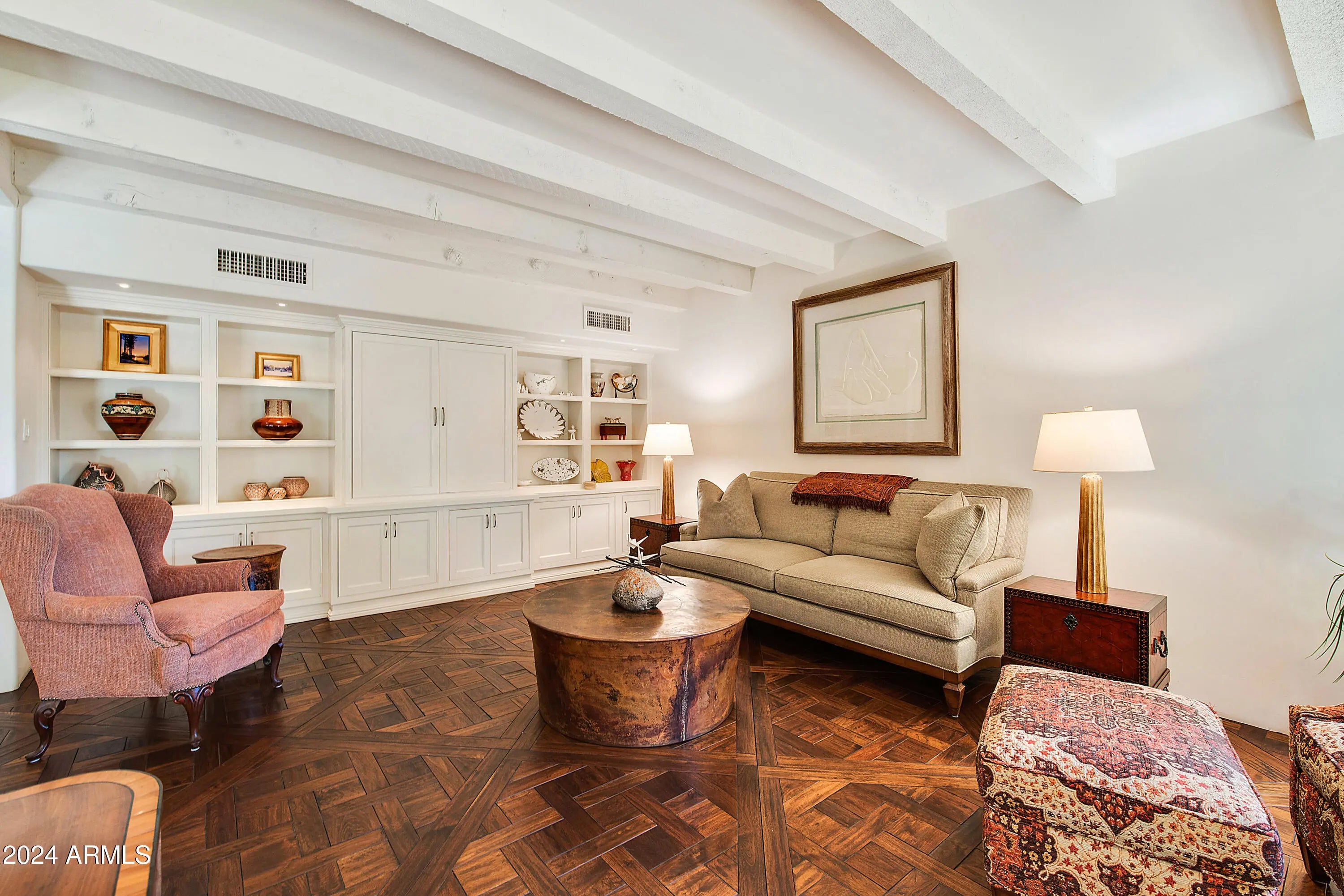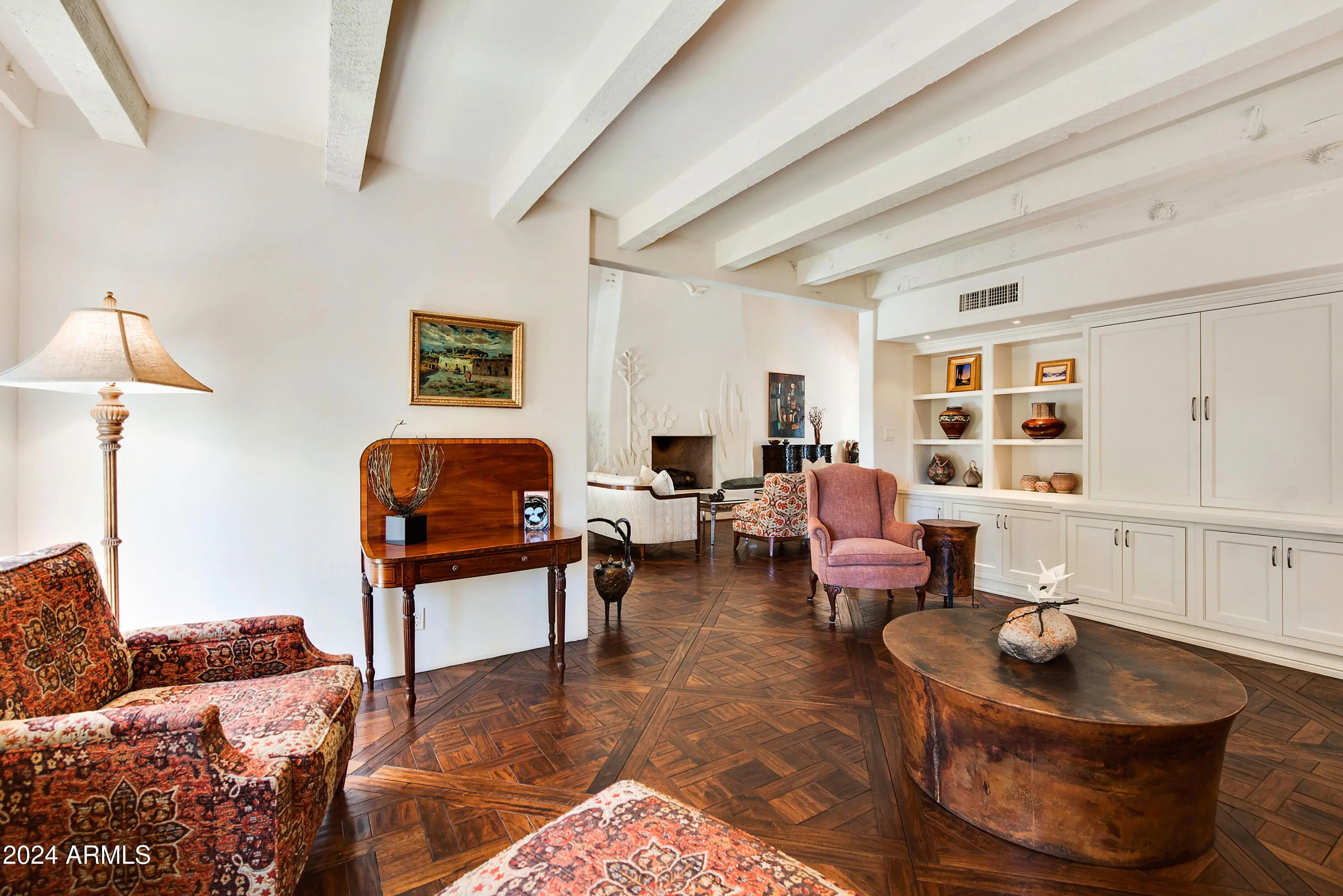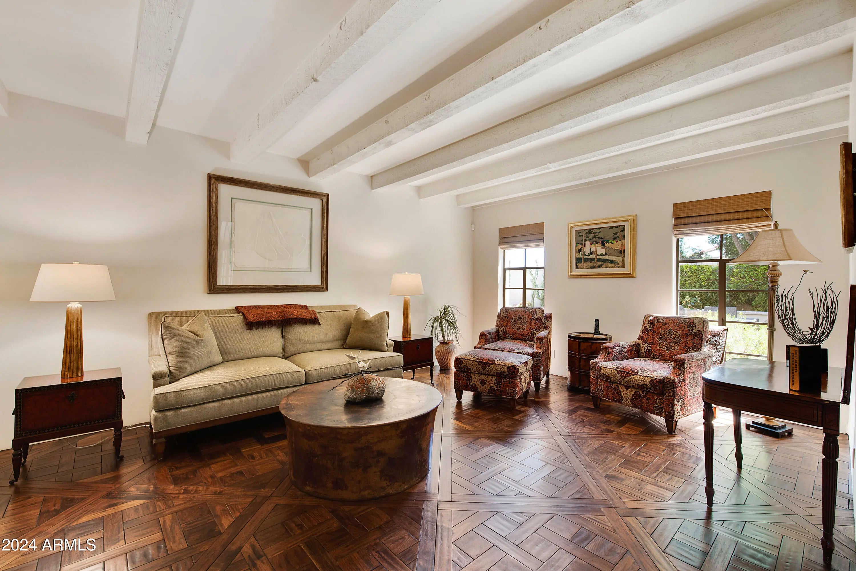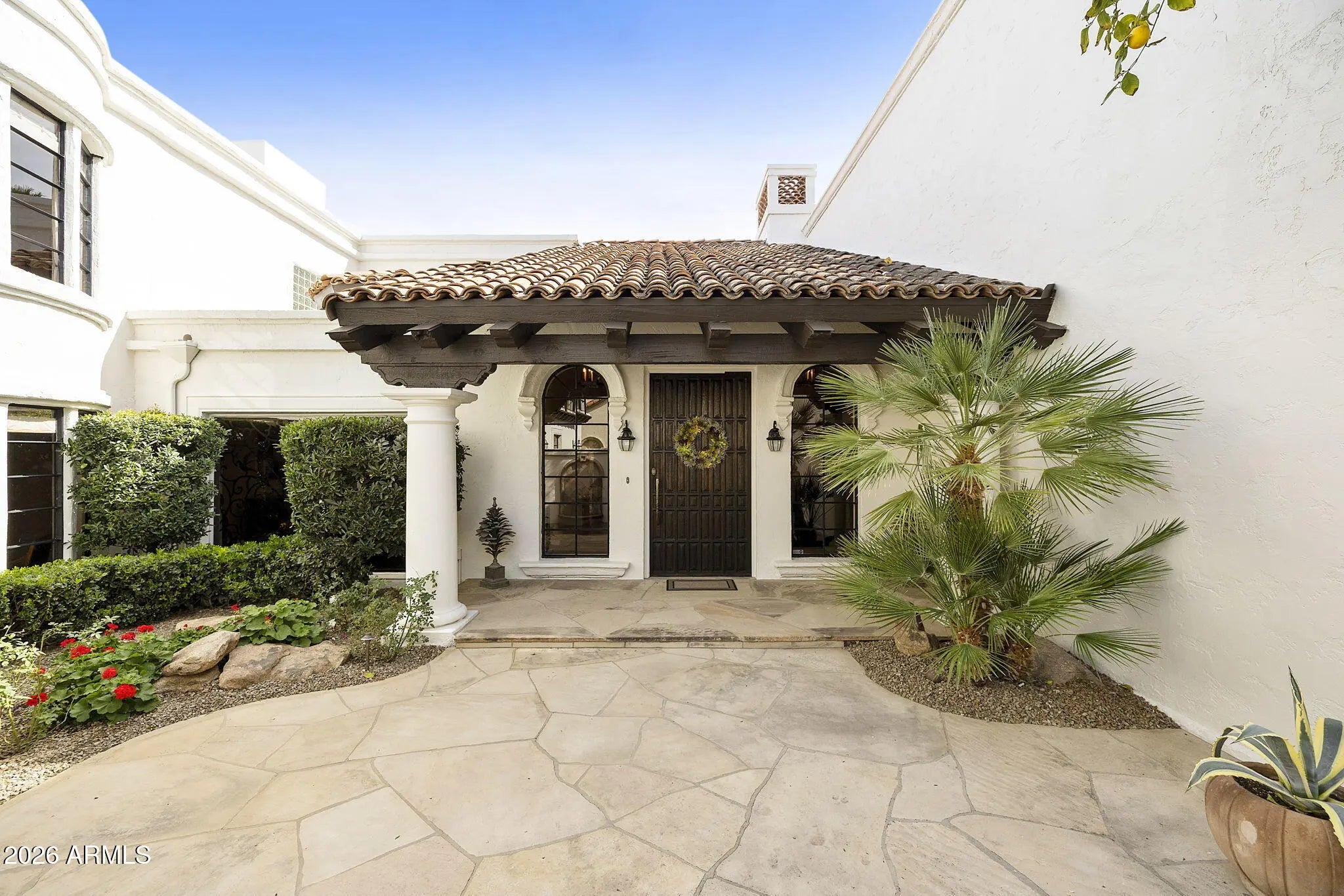 FOR THOSE WHO CHERISH THE FINER DETAILS! Not often will you find a property with the defining character as this home. European yet modern details masterfully & thoughtfully adorn this private treasure. The property offers a prime END location WITH ONLY ONE COMMON WALL. Enchanting SIDE GARDEN with easy & unique street access for all garden and home contractors. Once inside you will enjoy custom designed wood floors, hand crafted iron staircase(s), plank/beam ceilings, fireplace w/dramatic facade, MAIN LEVEL bedroom suite with custom built-ins. Cozy family & living room nestled near the private outdoor area with fireplace, BBQ & newly updated Mediterranean private garden. European kitchen with custom cabinets, center island, top of the line appliances, BRIGHT BAY WINDOW with access to the side garden. This residence offers 4 PRIVATE ensuite bedrooms. Follow the front custom iron staircase to 3 of the guest suites. First owner suite is spacious and private. Cozy fireplace with sitting area. Large shower can be converted to a steam shower. Center guestroom offers a bay window seat and private bath. Additional fourth bedroom suite is bright and spacious. Mountain views, large sitting area, two closets and a private secondary staircase leading to main living area. Space for elevator if important. Amenities offered to Cuernavaca residents include pool and spa. Tennis, pickleball courts. Gym and gathering area. Location is prime, near all that Scottsdale and Paradise Valley offers in shopping, restaurants and outdoor activities. Be a part of the REVIVAL of the SPANISH COLONIAL DESIGN.
