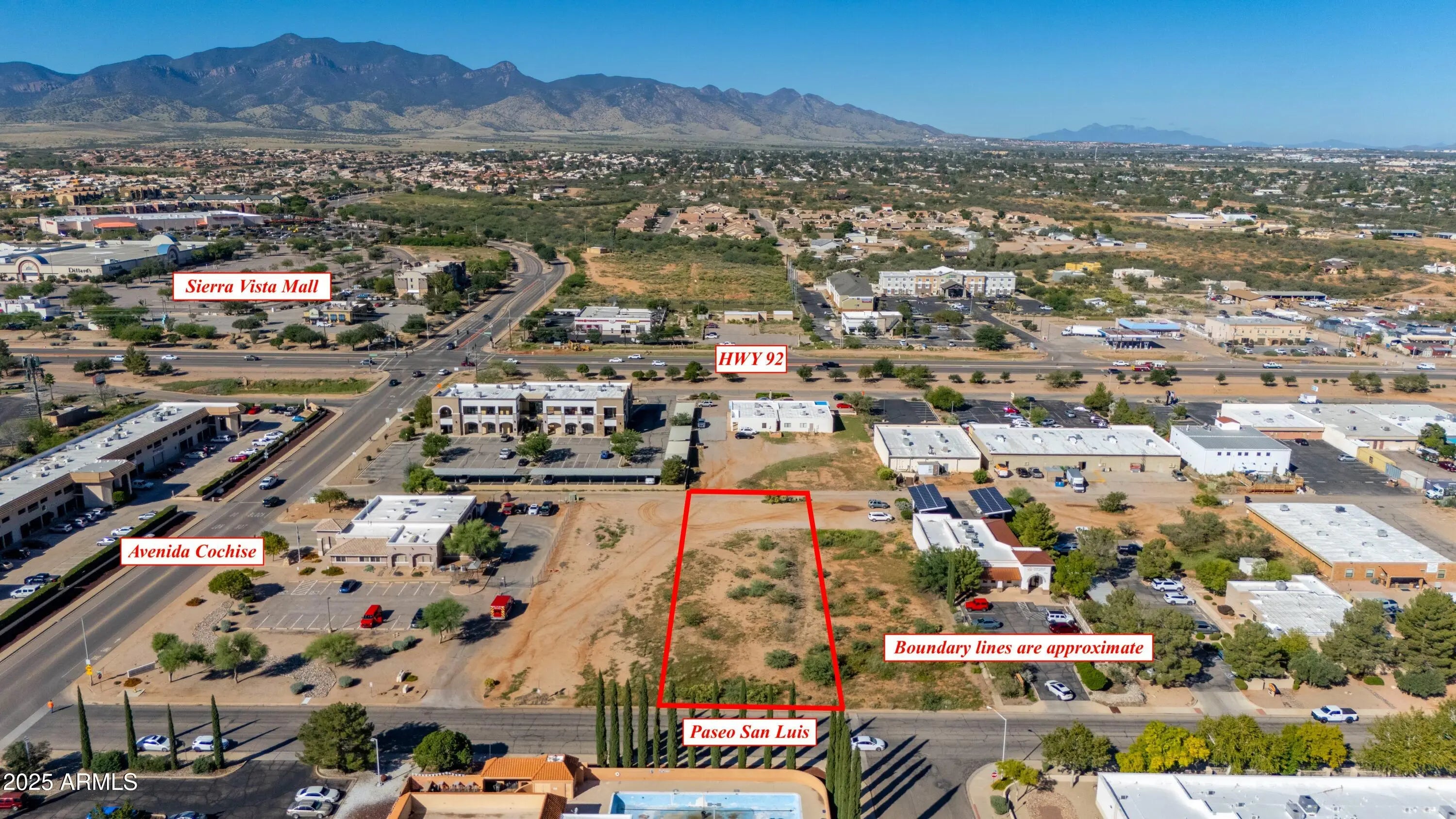 Fantastic Investment Opportunity! Don't miss your chance to own a prime piece of commercial land in a popular area of Sierra Vista. Whether you're looking to hold for future appreciation, develop and sell for a profit, or finally build the custom commercial space you've been searching for. This property delivers endless potential. Surrounded by established businesses including professional offices, dentist and doctors offices, an art gallery, fitness center, restaurants, bars, and the Sierra Vista Mall, this location offers excellent visibility and access in a highly desirable commercial corridor.