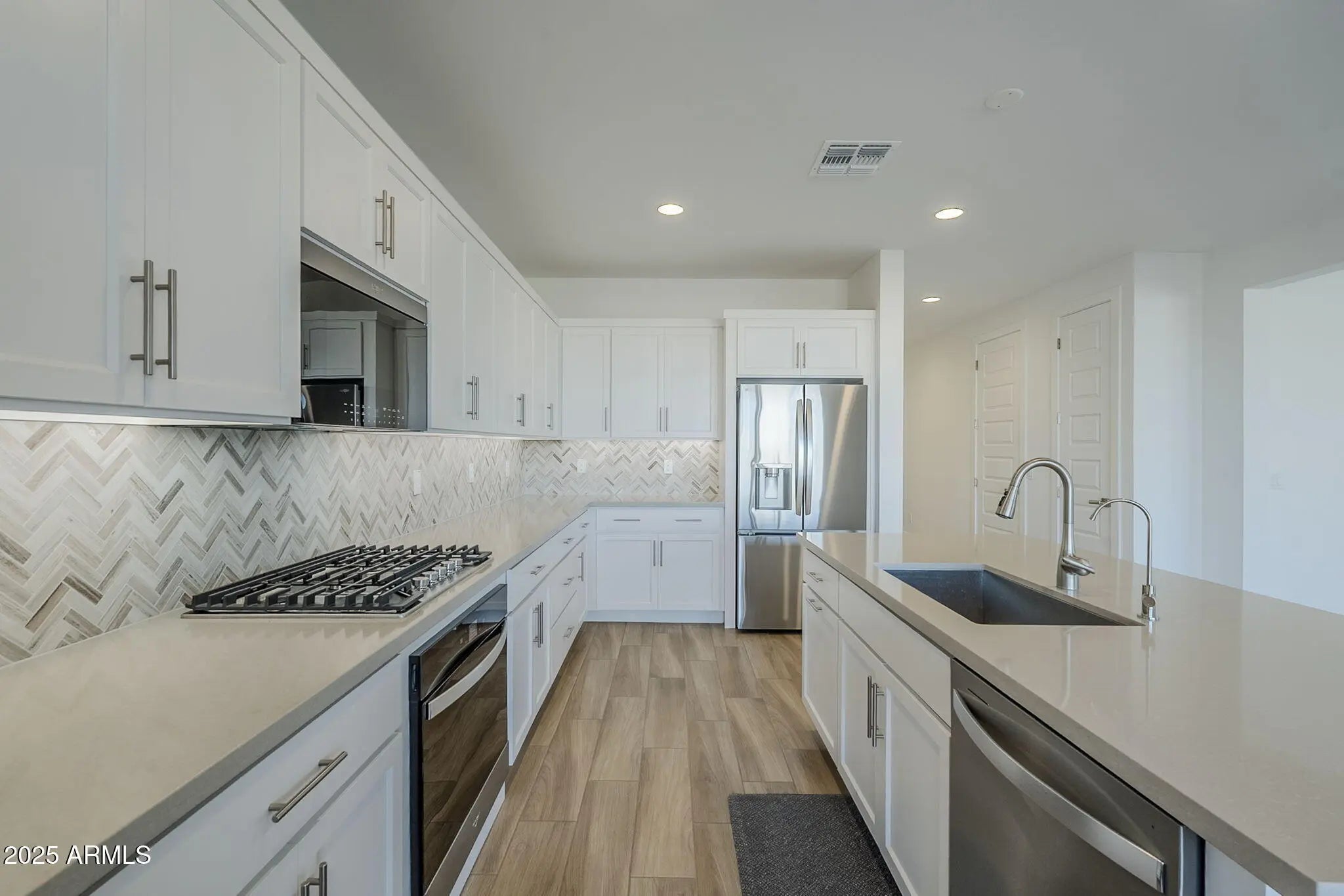 This stunning new build is a 5-bedroom, 3-bath, with window coverings on almost all of the windows, a built-in electric fireplace, a freshly painted interior, and an epoxy garage floor. Includes brand new washer, dryer, and refrigerator—no need to buy a thing! This home beats the other new builds in the neighborhood, because it already has upgrades added to it, so you don't have to! Enjoy the beautiful white kitchen, with wood look tile, a perfect living room for entertaining, and comfort in a beautiful new community close to parks, shopping, and dining. Skip the wait and move right in—this one is ready for you! Offered at $575,000.