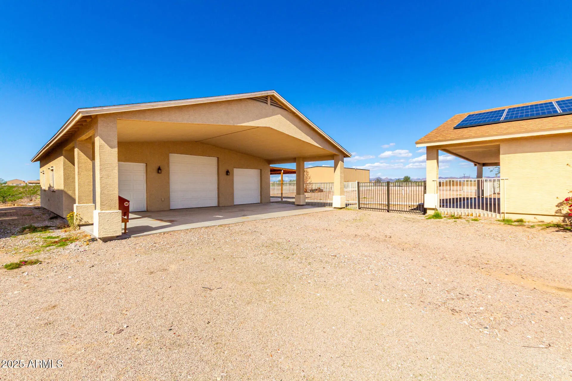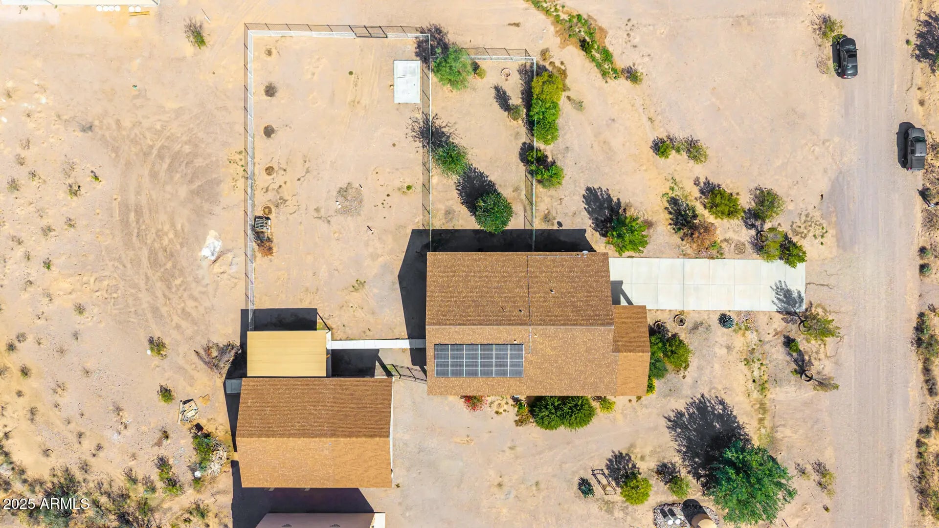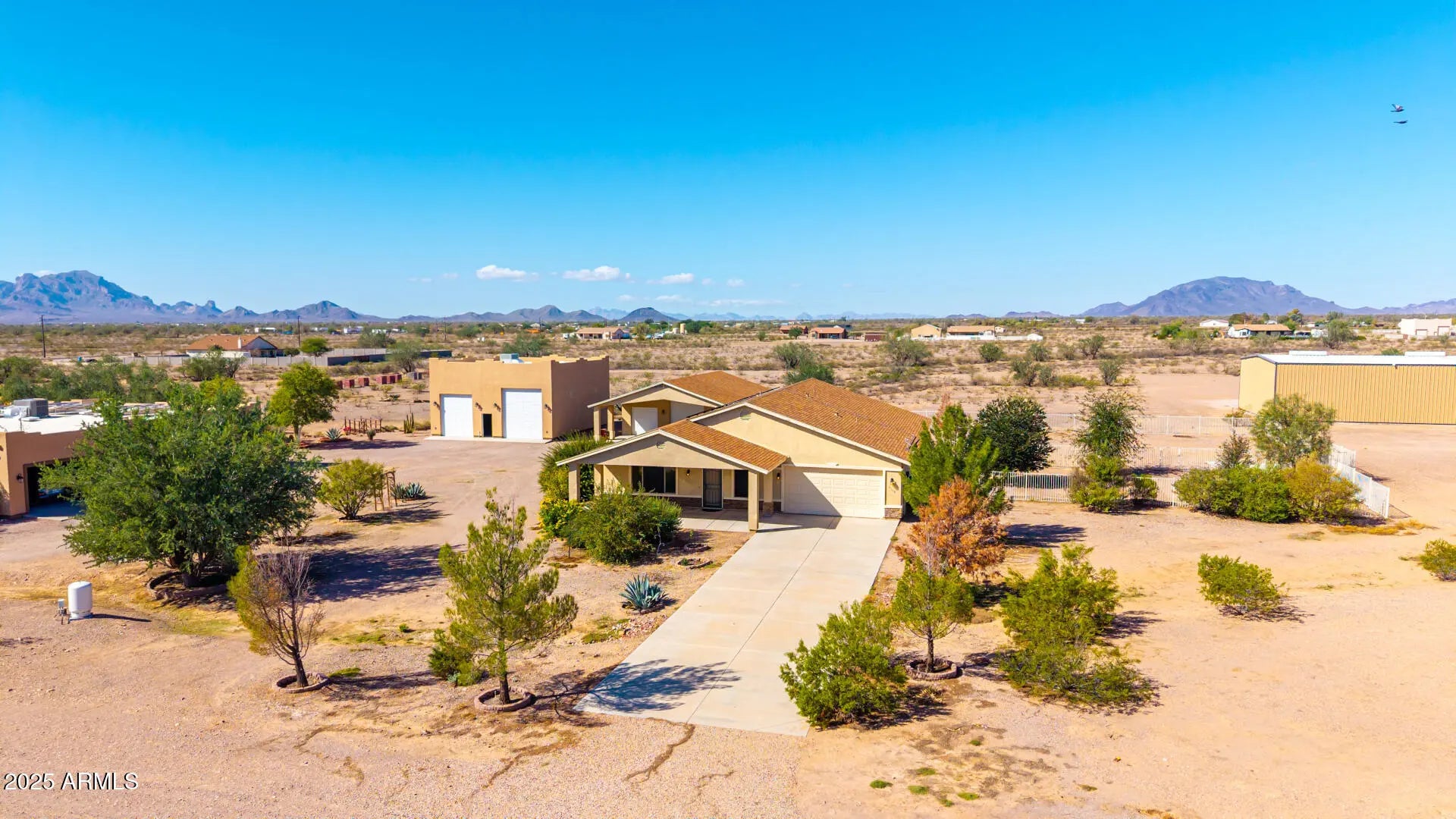 Do you need more garage space? This home is for you! This single level home offers nearly 2,200 sq ft of living space, 2 garages capable of holding up to 11 vehicles (climate controlled), additional covered parking for 5 vehicles & an acre of land! There are 3 large bedrooms with a den that could easily be a 4th bedroom if needed. Throughout you will notice tall ceilings (vaulted in the main spaces & 9' everywhere else), Tile/ Laminate wood floors (no carpet), neutral paint, 2'' faux wood blinds & ceiling fans in every room. The kitchen features oak cabinets & newer appliances (fridge included). The primary suite is HUGE & offers double sinks, renovated shower & large walk-in closet. Outside there are several covered patios overlooking your 1 acre lot. Mature trees, fenced yard & plenty of room for your horses, future pool, guest house or whatever you want to make it! The detached garage was built to match the house & is climate controlled. It offers plenty of LED lights, 100amp sub panel, lots of outlets (including 220 for your electric car, RV or welder), there is also water at the exterior of the building. There are 3 garage doors ranging 8' to 10' tall & interior ceiling height over 12' in some places allowing you to install car lifts or park an RV. Energy efficient items include sunscreens around the exterior windows & solar for lower electric bills! Tremendous value! 6,302 sq ft under roof (2,178 sq ft living space, 1,692 sq ft garage space, 1,282 sq ft carport space & 1,150 sq ft of covered patios), a home built in 2008 & an acre of land. Come purchase your slice of paradise today!