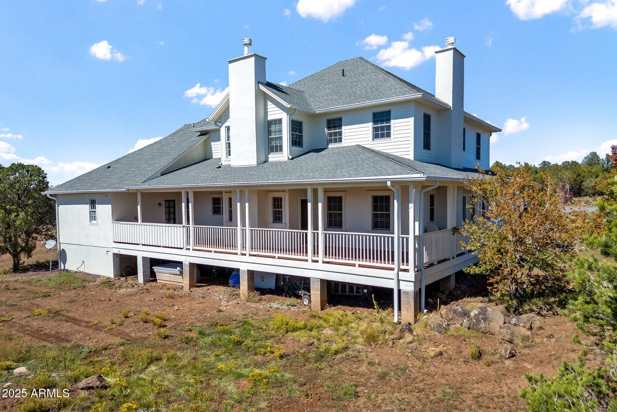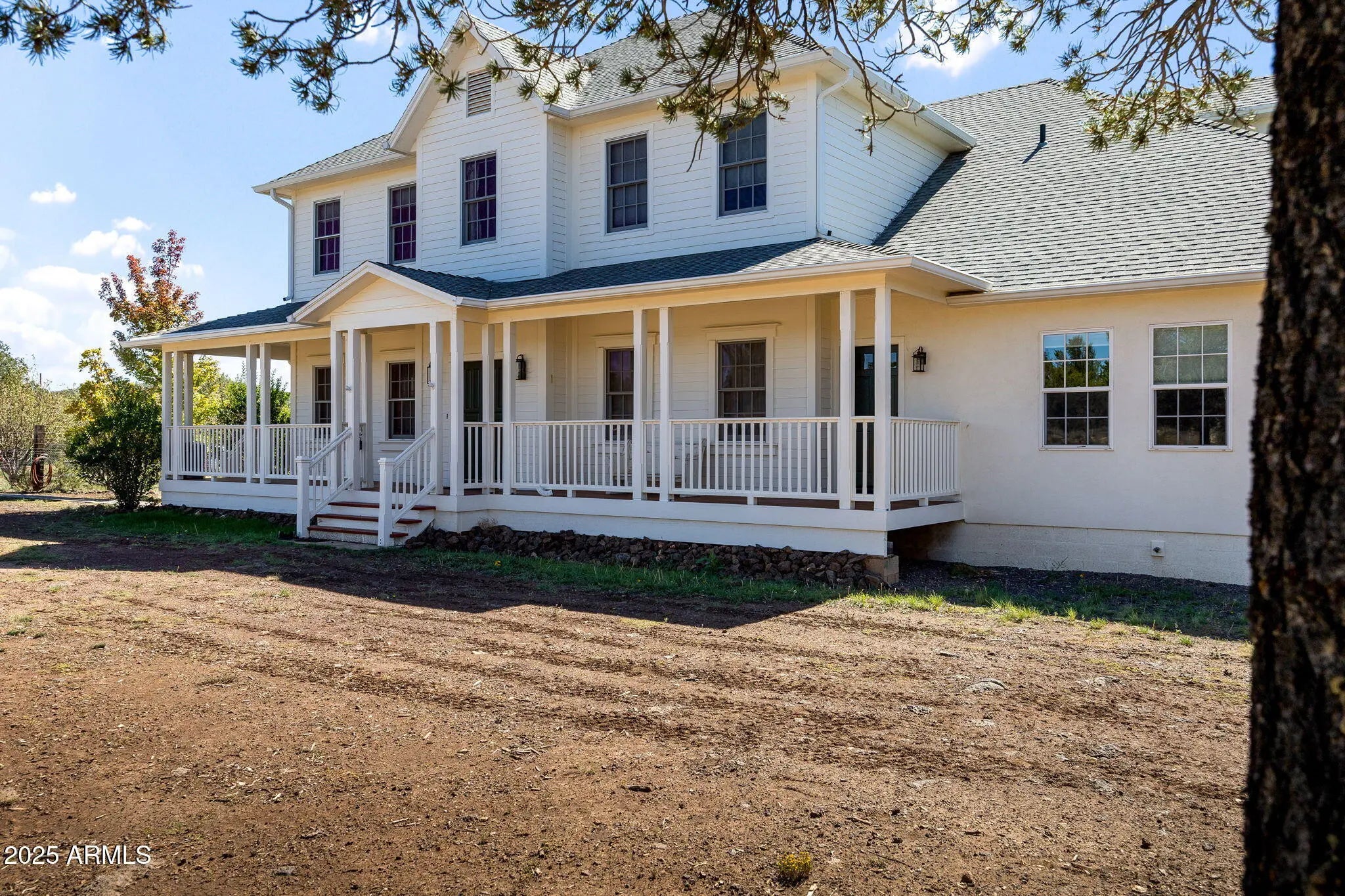 Embrace timeless elegance in this Southern-inspired masterpiece tucked away in Vernon, Arizona. Set on 6.24 acres of pristine land, this custom-built 4,297 SF 5 bed and 4.5 bath estate blends classic charm with refined sophistication. A sweeping wrap-around porch, framed by stately white columns and railings, sets the tone for gracious living and nostalgic beauty. Step into timeless elegance with this Southern-inspired estate in Vernon, Arizona. Set on 6.24 acres, this custom-built 4,297 SF home blends classic charm with refined living. A wrap-around porch with white columns evokes a bygone era, while inside, hardwood floors lead through a grand living room, cozy study, and a welcoming country kitchen—the heart of the home.