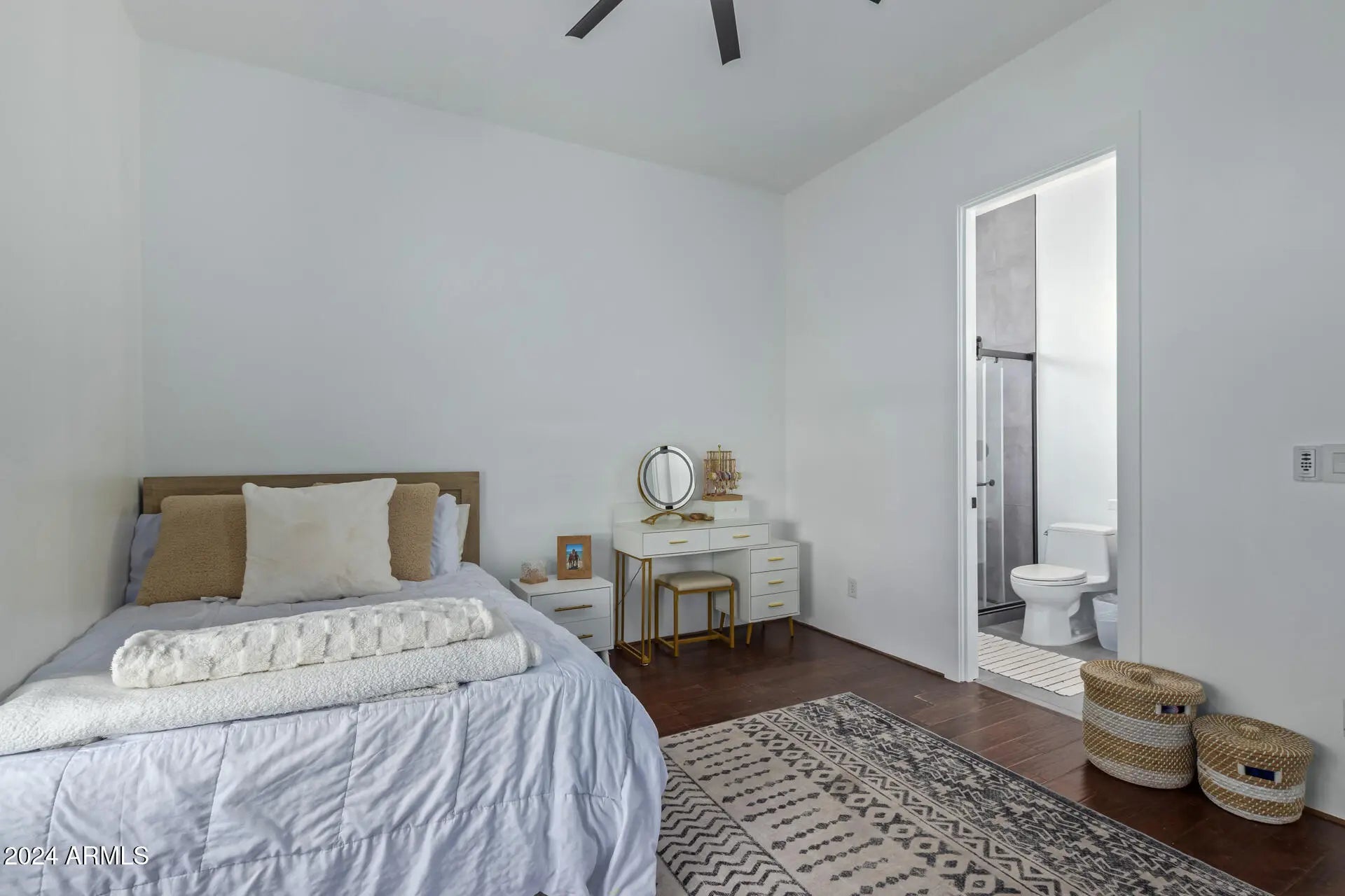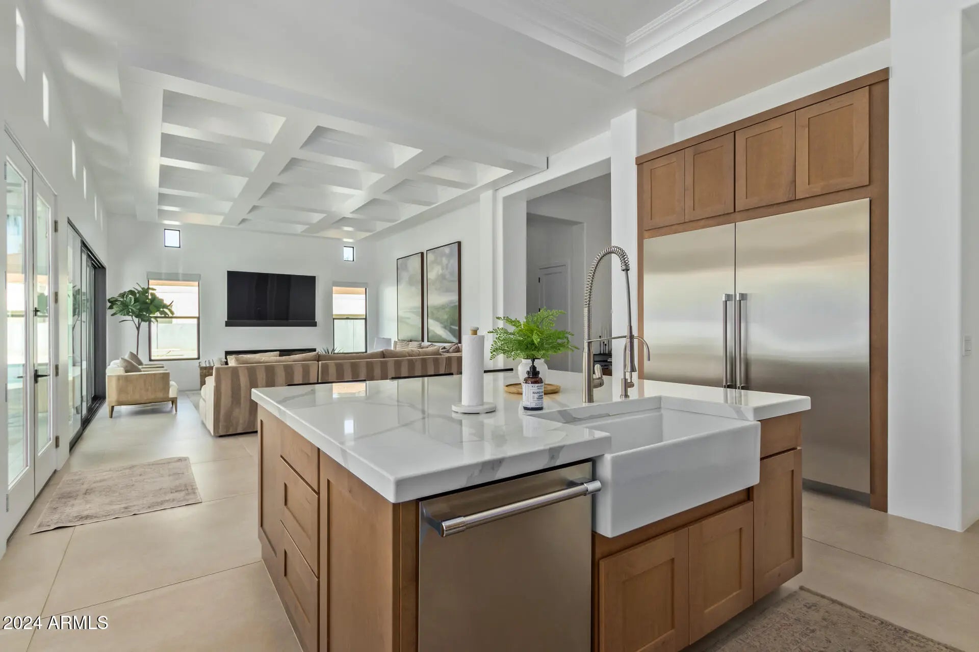 Completely renovated from top to bottom just 2 years ago, this stunning Queen Creek home blends modern design with everyday functionality. Featuring 4,298 sq ft total, the main home offers 4 bedrooms, 3.5 baths, a split primary suite with private laundry, and a teen/family room for flexible living. The chef's kitchen impresses with custom cabinetry, quartz countertops, built-in fridge/freezer, and coffered tray ceilings that flow into the great room. Enjoy seamless indoor-outdoor living with multi-slide doors opening to a sparkling pool and brand-new travertine deck. A brand-new detached 1 bed/1 bath casita—attached to the fully insulated double RV garage—is perfect for guests, a home office, or short-term rental income. Additional highlights include new roof, ACs, windows, doors, bathrooms, and stunning large scale tile flooring, plus a 3-car garage with EV charging station and climate-controlled storage room.