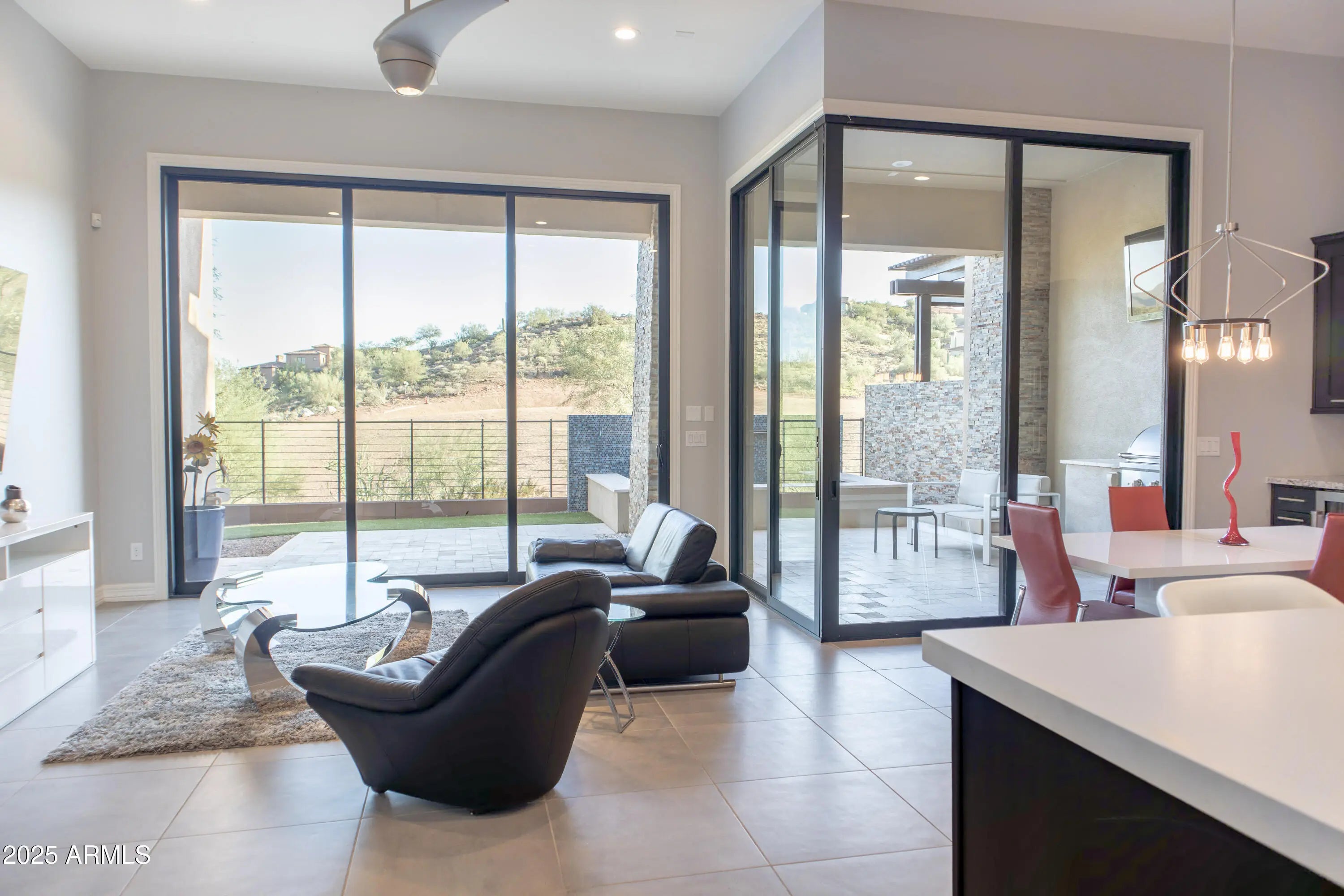 Experience effortless luxury living in this single-level home located within the prestigious guard-gated FireRock. Built in 2018, this immaculate condominium offers low-maintenance living—the HOA fee includes the front yard landscaping and more. The residence includes a separate casita with a private entrance, ideal for guests or multi-generational living. Inside the home, discover elegant Classy Closets built-ins and shelving in the primary bedroom closet and garage, custom 24'' tile flooring with upgraded carpet in the primary suite and casita. Relax outdoors with golf driving range views and an extra-large spa/spool with a soothing fountain & bubbling jets. Step through the doors and feel the difference—light, flow, and thoughtful detail in every space. Flexible Floorplan This home features a separate casita with its own private entrance, walk-in closet, linen closet, and full bathroom. Inside the main home, both bedrooms include en-suite bathrooms and walk-in closets, offering privacy and comfort for family or guests. A bonus room serves perfectly as a formal dining area or a flexible office/media space and is conveniently located near a half bath. The oversized laundry room includes abundant cabinetry for storage plus a utility sink. Sophisticated Finishes Throughout the main living areas, custom 24-inch tile creates a polished, upscale aesthetic, complemented by plush upgraded carpet in the primary bedroom and casita. Classy Closets built-ins enhance both the primary suite and garage, with custom drawers, cabinets, and shoe displays in the primary closet, and sleek cabinetry and shelving in the garage. The garage itself is a dreamfeaturing durable enamel flooring for a clean, functional finish. Gourmet Kitchen The kitchen is a true showpiece, highlighted by a large white quartz center island, granite perimeter counters, and top-of-the-line Wolf® appliancesincluding a 6-burner gas cooktop, double ovens, a drawer microwave, and a warming drawer. A built-in SubZero® refrigerator and wine refrigerator complete this chef's dream. Sleek black cabinetry lines both kitchen walls, and every elementfrom the lighting to the hardwarehas been thoughtfully selected to create a space that's both functional and visually striking. Primary Suite Retreat The spacious primary bedroom is filled with natural light and features remote-controlled window shades for effortless comfort. The fully customized walk-in closet includes Classy Closets cabinetry, drawers, and shelving, all beautifully illuminated for a touch of elegance and organization. Indoor-Outdoor Living A wall of 10-foot sliding glass doors in the great room opens to the backyard, creating a seamless flow between indoor and outdoor spacesideal for entertaining or quiet relaxation. Step outside to your private sanctuary overlooking the driving range. The elevated lot provides added privacy, while the extra-large custom spa/spool offers a tranquil escape with a soothing fountain, color-changing LED lights, and remote operation via phone or handheld remote. The travertine patio, artificial grass, and low-maintenance landscape ensure year-round beauty. A built-in Coyote stainless-steel gas grill with travertine countertops completes this entertainer's dream setting. Community & Location FireRock is one of Fountain Hills' most desirable guard-gated communities, offering 24-hour security, privacy, and convenient access to Scottsdale's dining, hiking, and the town's iconic fountain park. At its heart lies FireRock Country Club, currently completing a $29M renovation of its clubhouse, courts, and golf course. Members enjoy resort-style living with elegant private dining, a refined clubhouse, shimmering pool and fitness center, dedicated tennis and pickleball courts, and a championship 18-hole Gary Panks-designed golf course. With Golf, Sports, and Social memberships available, residents can tailor their experience to fit their lifestyle in this serene desert setting. Experience the ease of luxury living without compromise. This FireRock home blends sophistication, privacy, and comfort in a way that makes everyday life feel beautifully simple. Come see what low-maintenance living at a higher level truly feels like.