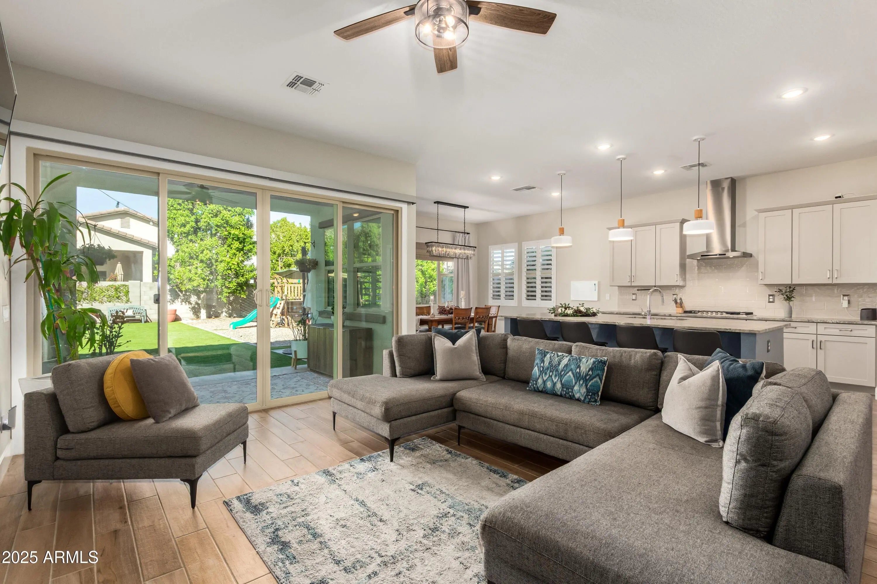Welcome to Verrado Highlands — Where Small-Town Charm Meets Modern Luxury! Set against the stunning backdrop of the White Tank Mountains, this better-than-new home in the sought-after master-planned community of Verrado offers the perfect blend of elegance, comfort, and lifestyle. Enjoy miles of tree-lined streets, neighborhood parks, community events, and an active, welcoming atmosphere just west of Phoenix. Step inside to discover a spacious open-concept great room flowing seamlessly into a designer kitchen featuring elegant sueded granite counters, sparkling tile backsplash, upgraded lighting, and an oversized breakfast bar—ideal for gatherings and entertaining. Ample cabinetry and a HUGE walk-in pantry with extra square footage make everyday living effortless. A soothing, neutral color palette complements any décor. Upstairs, a family-friendly loft offers flexible space for play or relaxation. The primary suite is a true retreat, complete with Arcadia doors leading to a private balcony with mountain views. The spa-inspired bath includes dual dressing areas, a large walk-in subway-tiled shower, and a custom walk-in closet with built-ins, open shelving, and a stunning glass display for shoes and handbags. The upstairs laundry room provides convenience and extra space for storage or hobbies. The backyard oasis is fully finished with mature landscaping, ledgestone planters, low-maintenance turf, and a covered patio featuring a built-in grill, bar area, and charming wood pergola. There's even a dedicated play area for all ages to enjoy. A three-car tandem garage offers plenty of room for vehicles, storage, or weekend toys. Experience the vibrant Verrado lifestylecomplete with top-tier amenities, community events, and breathtaking desert scenery. *The seller will contribute 1% of the purchase price to be used as interest rate buy down or closing cost reduction with full price offer.