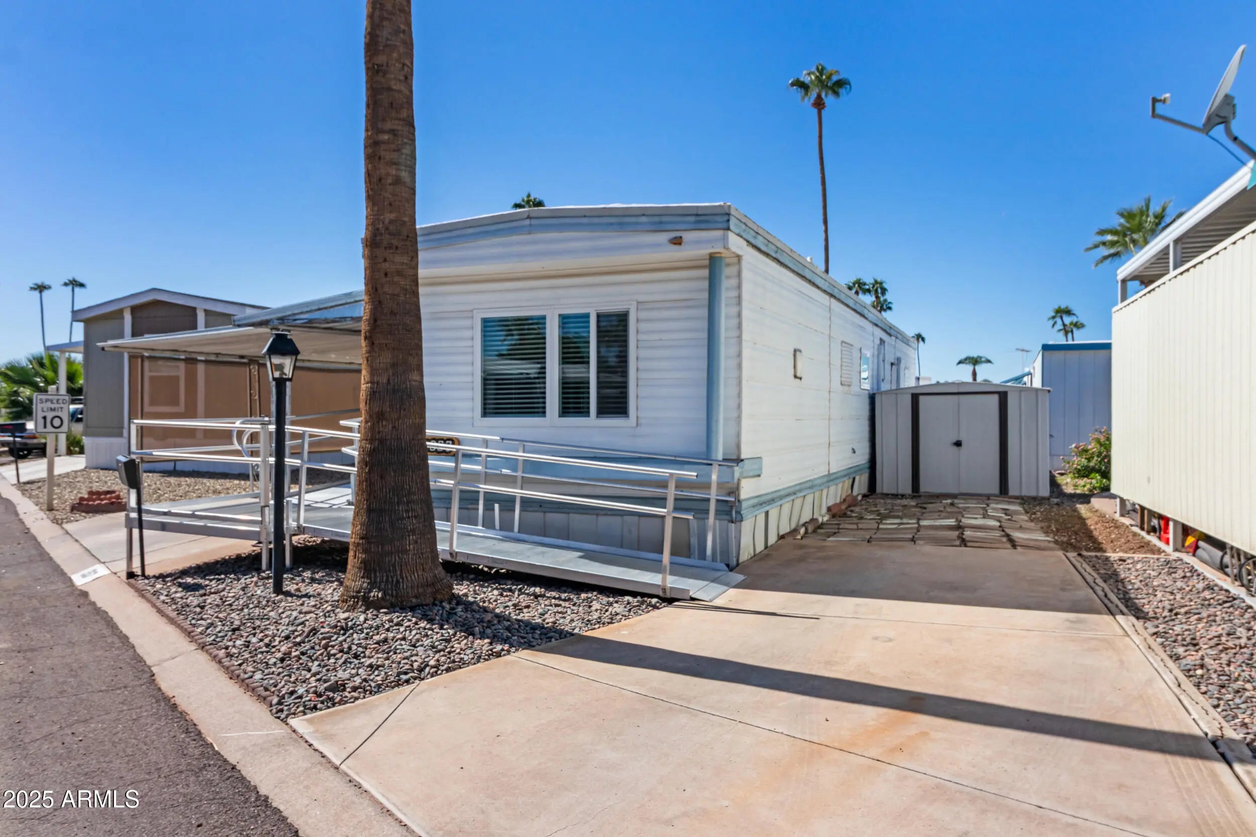 UPDATED THROUGHOUT 1972 CHAMPION 2 BEDROOM 2 BATHROOM, MASTER BEDROOM HAS SEPERATE ENTRY/EXIT TO RAMP, MASTER BATH HAS WALK IN SHOWER, ADA RAMP WITH LIFT, EXTRA 4 CAR PARKING, 2 COVERED WITH PRIVACY SHADES AND 2 SLAB OPPOSITE SIDE OF RAMP, NEW DUAL PANE WINDOWS AND ARCADIA SLIDING DOOR , LAMINATE FLOORING THROUGHOUT, NEW 3 ZONE MINI SPLITS, NEW HOT WATER HEATER AND AWNING, ROOF RECENTLY UPDATED AND COATED BY PREVIOUS OWNER, STORAGE SHED, 55+ COMMUNITY,NEAR MEKONG PLAZA,INT'L MARKETS,BANNER HOSPITAL,I-10,LOOP 101,202,BUSES,LIGHT RAIL*LOWER LOT RENT APPROX $720.00 MO*RENTALS OK*ADDT'L OCCUPANTS 40+