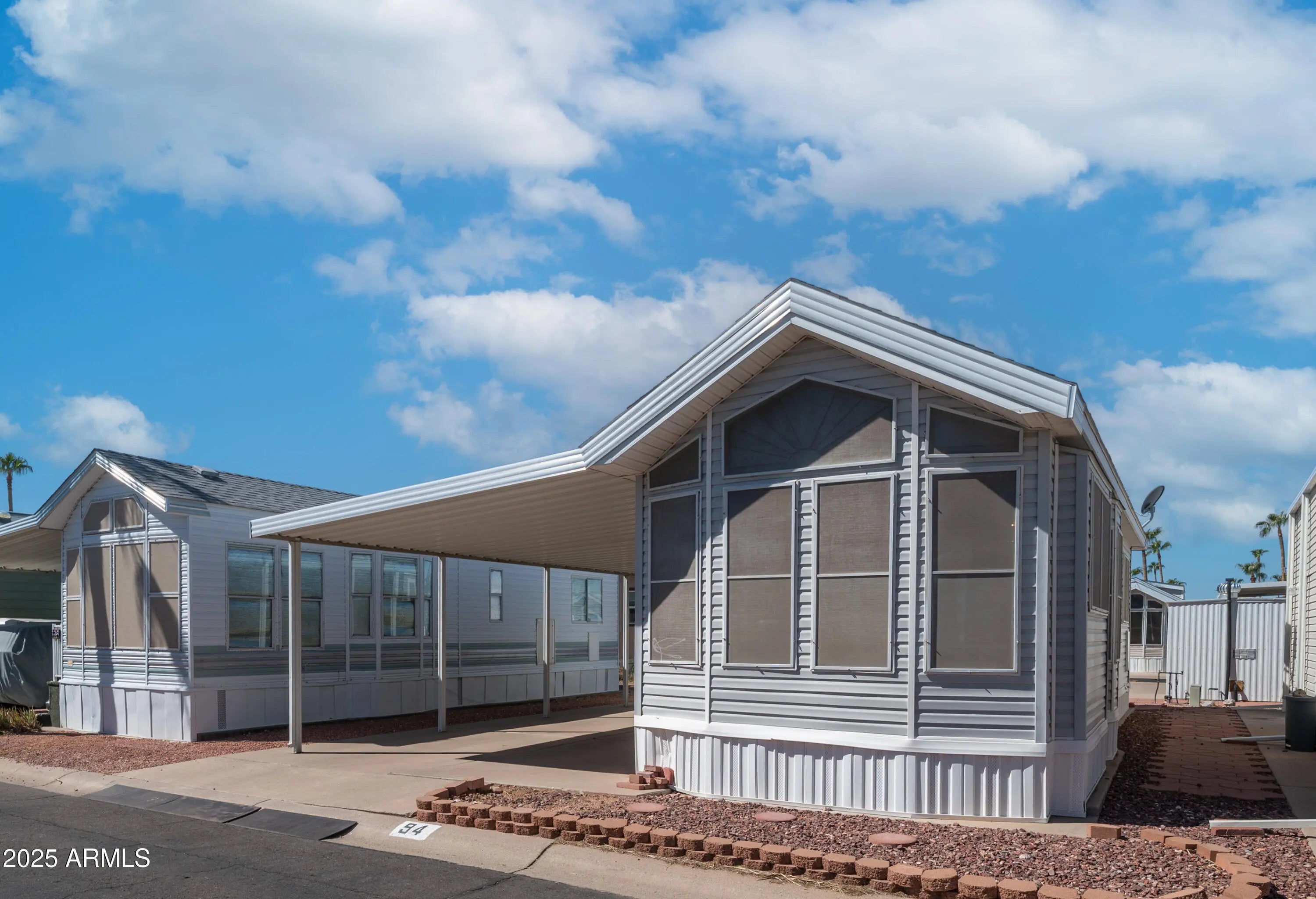 Welcome to your desert dream retreat—where the sun shines brighter, the skies stretch wider, and the lifestyle feels like a year-round vacation! If you're looking to soak up the best of Arizona's outdoor living while owning the land beneath your feet, this gem in the coveted 55+ resort-style community of Golden Vista is calling your name. Tucked away in a meticulously maintained neighborhood, this charming home is a perfect blend of style, comfort, and low-maintenance living. The home welcomes you with vaulted ceilings and an open-concept kitchen and living area that's bathed in natural light, creating a bright and airy atmosphere that's perfect for everyday living or entertaining. Step outside and enjoy mountain views from the front, or unwind on the private back patio complete with stylish pavers with an ideal spot to relax and soak up the desert serenity. The spacious bathroom offers generous counter and storage space, and the detached shed provides room for extra storage or even a creative hobby corner. With a newer roof, updated AC, double-paned windows, and excellent insulation, this home is energy efficient and move-in ready. Best of all, you own the land, no lot lease here! Life at Golden Vista is more than just comfortable living; it's an active, vibrant lifestyle. From the fitness center, heated pool and spa, and woodshop to the sewing club, library, softball team, and countless other activities, there's truly something for everyone. This is more than a home, it's a community where friendships flourish and every day brings new possibilities. Come see what makes Golden Vista so special you may never want to leave!