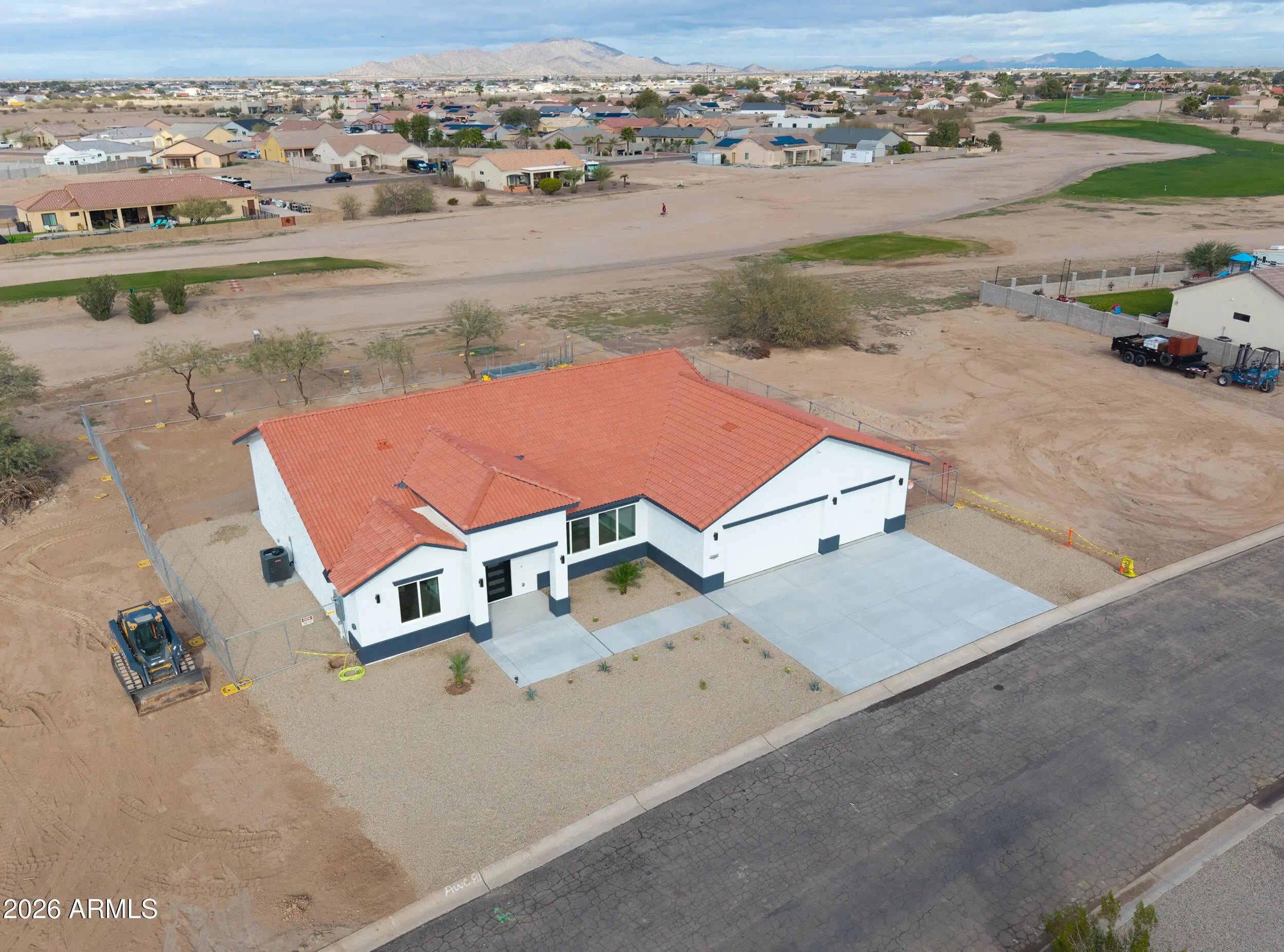 Golf Course-Stunning Custom Home loaded with lots of upgrades! 3 car garage fully insulated includes epoxy flooring. Gourmet kitchen offers granite counter tops, soft close white shaker cabinets with crown molding, upgraded plumbing and light fixtures. Built in Microwave with side by side stainlees steel refrigerator. Kitchen island with electrical. Beautiful breakfast bar for entertaining. Enjoy the open living & dining area with 9'X8' Arcadia doors bringing in natural light. Upgraded ceiling fans and blinds throughout. Primary bedroom 17X18, dual sinks and walk in shower with 2 shower heads, middle ceiling and wall mount. Decorative niche, and full height tile with glass shower doors. The huge walk in closet offers custom shelving for ample storage. Additional hightlights include: A striking 42 X 96 Wrought iron front door greets your guest upon entering. 2x6 construction. Upgraded sheathing & foam insul. Insulated 3 car garge with Epoxy flooring. EVC in garage. 2 double gates, one in front & 1 in back-overseeing the Golfcourse. Desert designed landscaping. 10 foot ceilings, windows and patio door are Milgard with a life time warranty. Interior doors are 8 ft, Trusses 2x6 and 24 " overhang, facia is 2x8. Monolithic foundation pour. Compaction test completed and passed successfully. Entire house is foam insulation. All interior walls have Batt insulation R-13. Ceramic tile throughout house. Villa tile roof. Prewired Cat 6 cable for fiber optic internet. 6 Security cameras included. Quality construction by a Quality builder. There is no other home that can compare!! Come Look for yourself...Gorgeous!!!