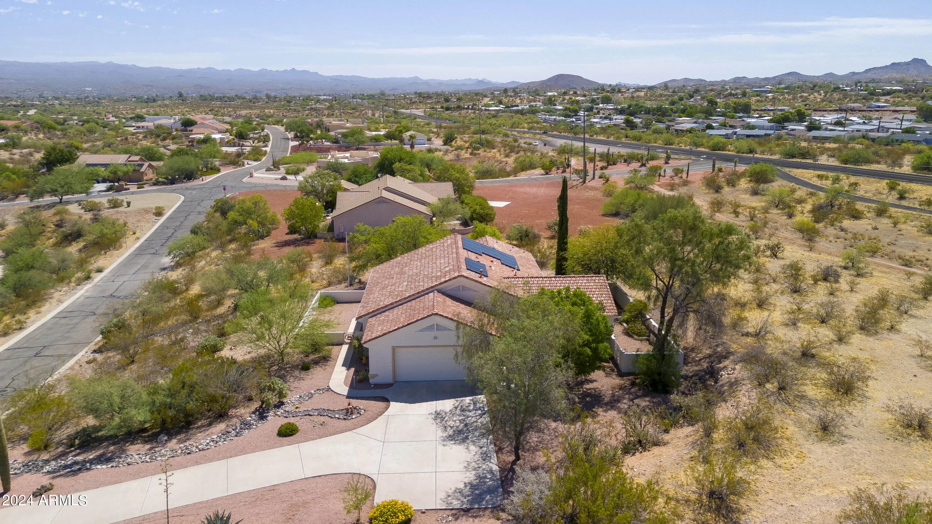 Enjoy gorgeous views from both north & south covered patios of this lovely 2061 sqft 3 bdrm, 1.75 bath home which features a bonus room that could be used as a den/office/other, living room, spacious kitchen w/ breakfast bar, sizable dining area & stainless steel appliances, split floorplan, large master bdrm, master bath w/ double sinks & walk-in closet, tankless hot water heater installed 1/2023, energy star windows, ceiling fans, cooling/heating installed 1/2023, Platinum water softener installed 1/2023, 9' ceilings, additional attic insulation 3/2023, oversized 2-car garage, private back courtyard, mature landscape w/ front & back yard watering system, no HOA, & leased solar ($124.68/month, no yearly increase). All this on a 46,730 sq ft parcel in the popular Saddle Ridge subdivision.