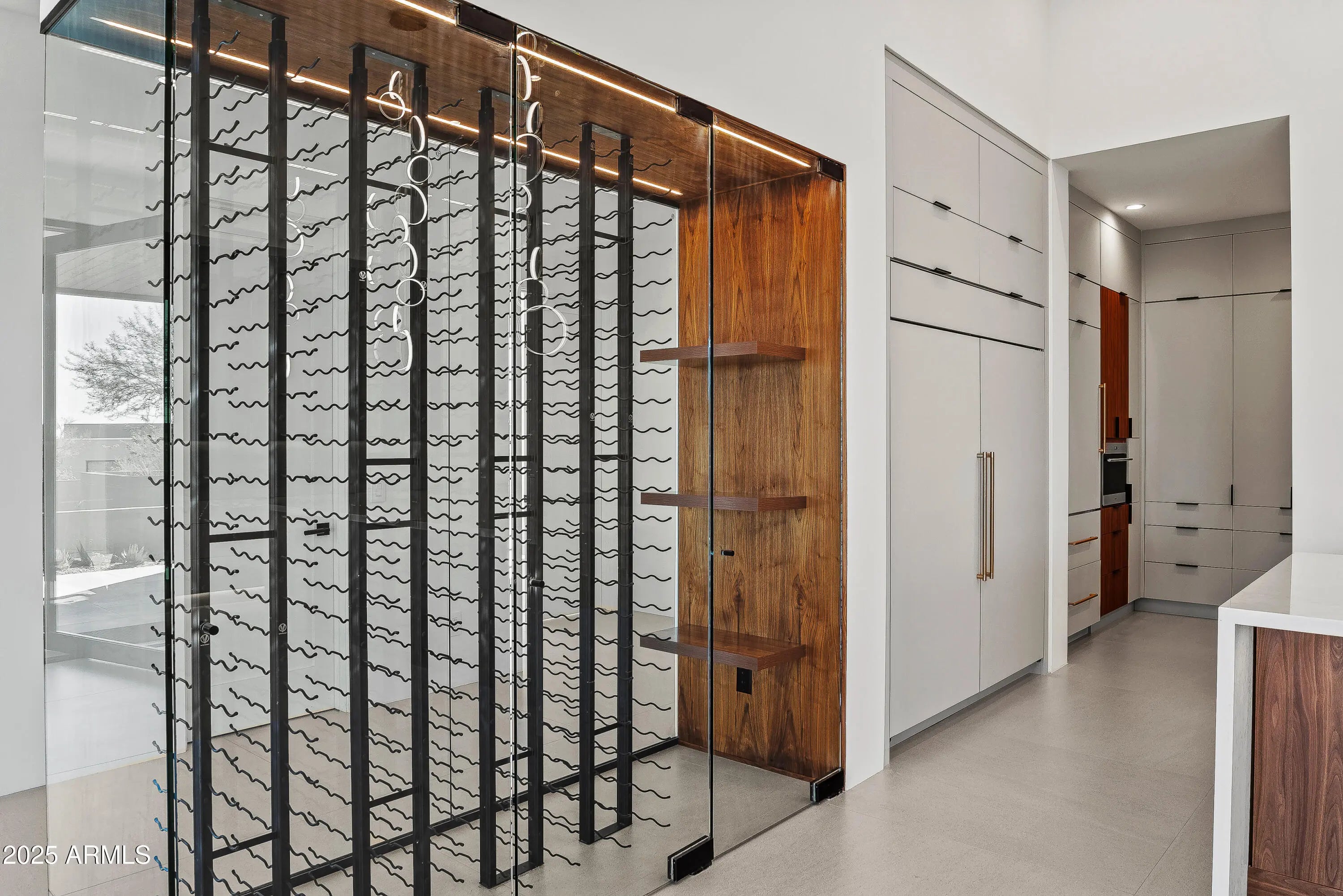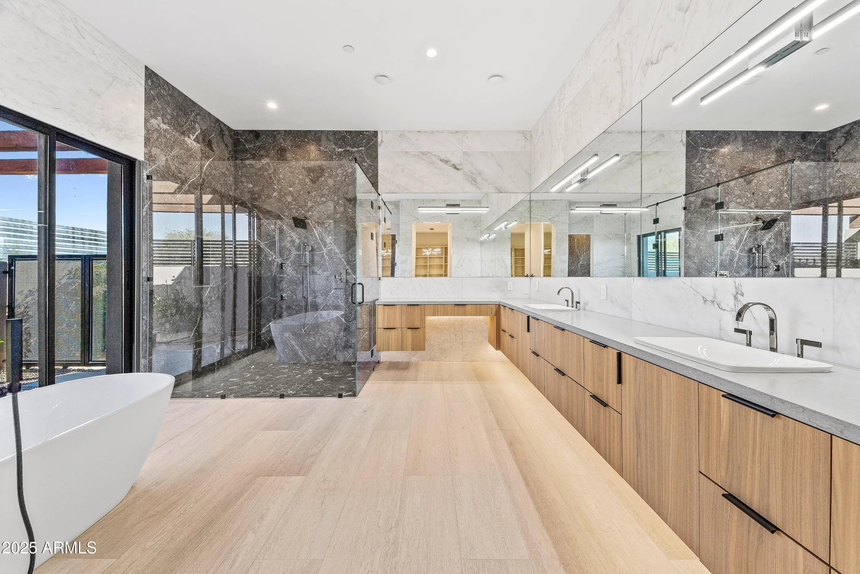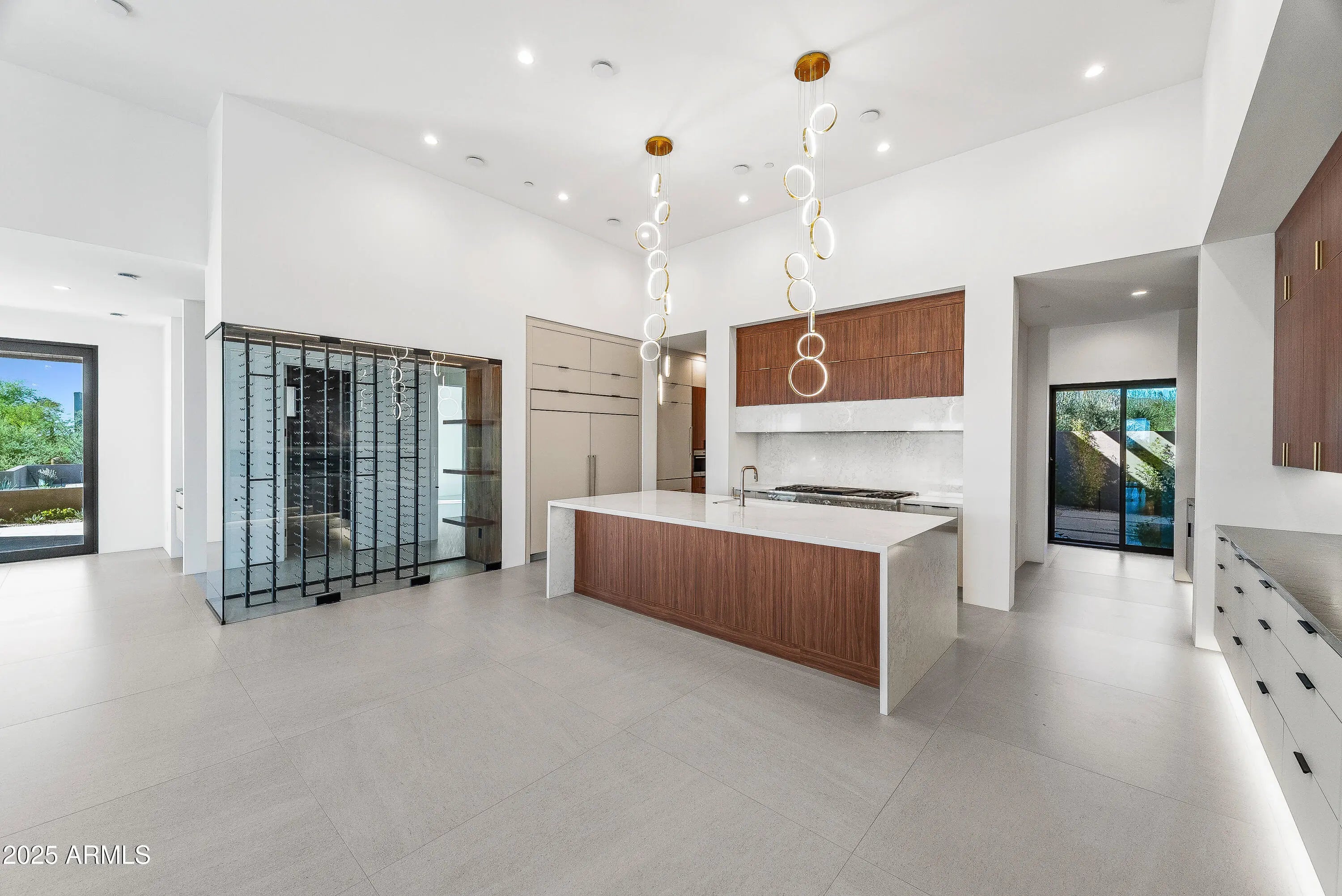Newly completed, this 4 bedroom, 4.5 bath residence in Desert Mountain, Scottsdale, AZ embodies the art of modern living, designed for the Sonoran landscape by acclaimed architect Brian Raines. On an exceptionally private lot within one of Scottsdale's premier private golf communities. The beautifully curated landscape surrounds the home creating a stunning approach and incredible curb appeal that sets the tone for the refined experience within. As you enter through the stunning glass pivot door, the home opens into a grand yet welcoming great room, where towering floor-to-ceiling glass walls frame the mountains and the ever-shifting desert sky. The space is expansive and intimate, centered around a modern fireplace and a beautiful custom bar complete with a wine refrigerator, cooling drawer, and ice maker perfect for an elegant evening at home. At the center, a chef's kitchen tailored for the culinary purist. Outfitted with the highest-level appliance suite, it features a six-burner gas range, double ovens, integrated refrigerator and freezer, dishwasher, and a built-in Sub-Zero coffee and espresso maker. The expansive quartz island and custom cabinetry showcase the tailored craftsmanship. A fully equipped back kitchen extends the function of the main. Complete with its own refrigerator, cooling and freezer drawers, microwave, sink, dishwasher, and generous pantry storage, it provides an effortless way to host while maintaining visual serenity throughout the main space. The primary suite is a retreat of rare tranquility. A spa inspired bath features dual vanities, a freestanding soaking tub, and a glass shower. The double doors to the outdoors open to a private outdoor spa and shower, surrounded by native desert flora. The custom dressing room includes tailored storage and a built-in clothes steamer for pure luxury. Three well-appointed guest suites, each with a private ensuite bath, offer comfort for your guests. The front guest suite enjoys its own private entrance, making it an ideal space for a home office, art studio, or executive retreat, a thoughtful design detail that adapts beautifully to modern lifestyles. The laundry room mirrors that same attention to detail, with two full washer and dryer sets, another built-in steamer, and functional cabinetry designed for a clutter free environment. Outdoors, an expansive resort-style patio becomes an extension of the home itself. A large pool with a waterfall, integrated spa, and fire feature. And a covered sitting area with a fireplace, ideal for desert evenings. Every moment here feels intentional, grounded, and distinctly Desert Mountain. Completing the property is a five car garage, offering ample space for car enthusiasts or collectors, and another subtle mark of the home's thoughtful scale and refinement. Positioned within Desert Mountain's exclusive golf and lifestyle club, residents may apply for club membership to enjoy access to seven championship golf courses, private dining venues, spa, tennis courts, fitness center, private hiking, and 24-hour guard-gated security. Desert Mountain is Scottsdale's most Northern elevated community at the base of the Continental Mountains and within reach of Scottsdale's world-class restaurants, galleries, and luxury shopping.