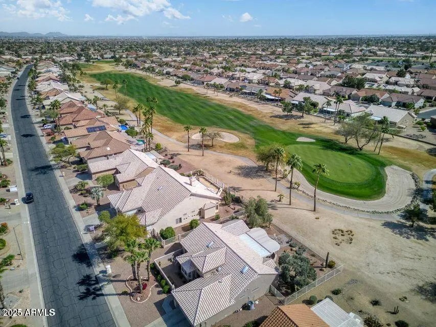 RARE FIND! 3 BR, 3 full BA home w/ office & sparkling pool on Deer Valley Golf Course! Enjoy GORGEOUS PANARAMIC VIEWS of the 15th fairway right from your own backyard! Step thru the grand double door entrance w/soaring ceilings & abundant natural light. The oversized LR has 3 large windows overlooking the yard & lush green golf course! Ideal for gatherings or quiet mornings just taken in the scenery. Spacious kitchen w/Sub Zero fridge, built-in oven, gas cooktop, double pantry & breakfast bar. RENOVATED POOL 2025, NEW ROOF 2024, NEW HVAC 2016. The primary BR suite has 2 sinks, WI shower, tub, WI closet PLUS a custom cedar lined closet! BR 2 has a charming bay window & sep entry from front courtyard. Perfect for guests or multi-gen living. The renovated 3rd BR is an upstairs suite with a full bathroom, a sitting area, 2 walk in closets and a private balcony with some awesome views of the pool and golf course below! It's an exceptional space for guests or it could be an inspirational craft/hobby room for you! Other great features include an office with built in cabinets, an extra large laundry room w/ a sink and storage cabinets, 2 car garage w/ storage cabinets & plantation shutters throughout. This great home is located in beautiful Sun City West, an active 55+ adult community, where endless opportunities for fun and relaxation await! Tee off on one of 7 stunning golf courses, take a refreshing dip in any of the 6 sparkling pools or get active with tennis, pickleball & bowling. Stay fit in state-of-the-art fitness centers, catch captivating performances at the theater or unleash your creativity in the metal, woodworking, and auto shops. Plus, there's an incredible variety of clubs, crafts and activities. There's something exciting for everyone!