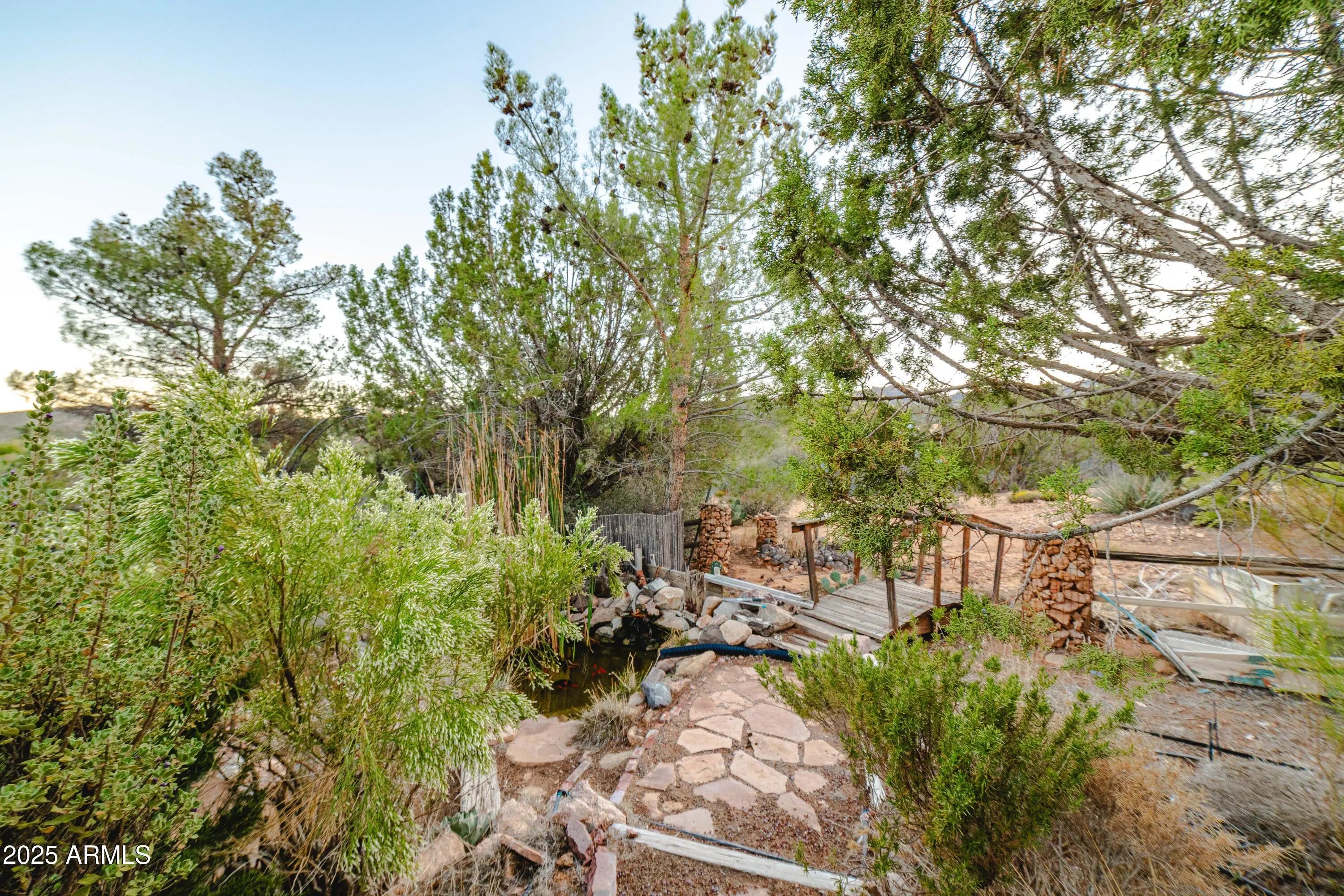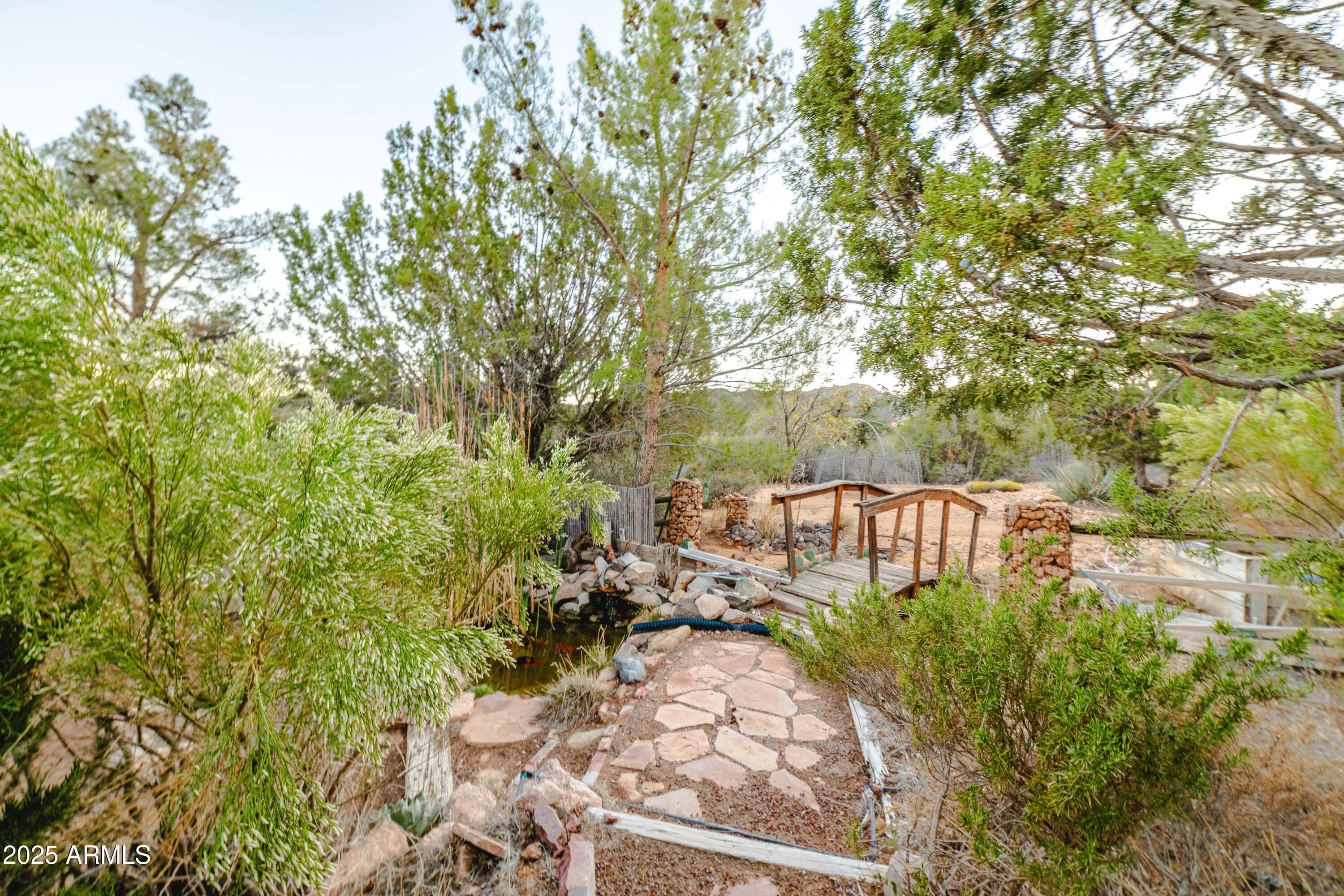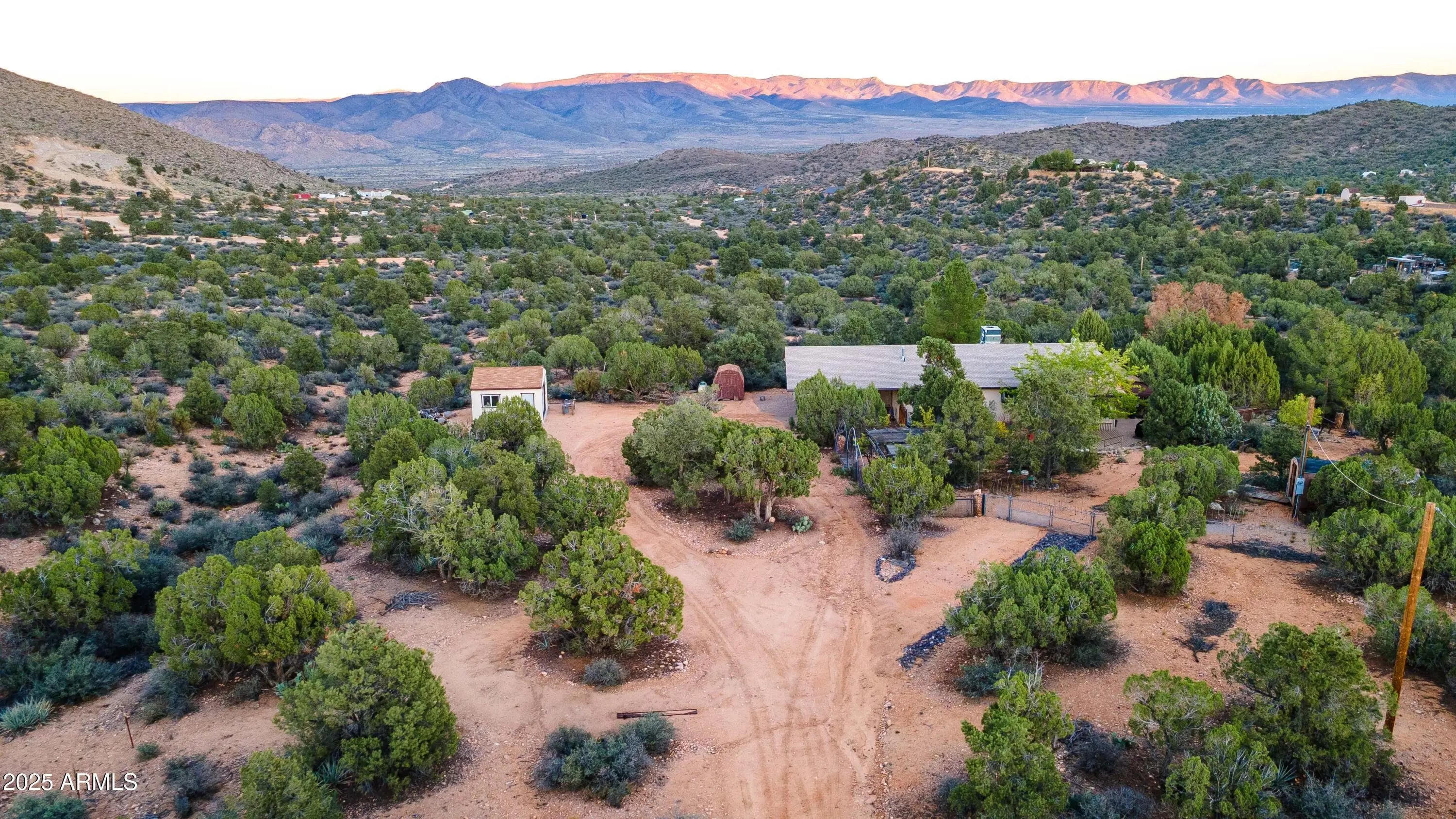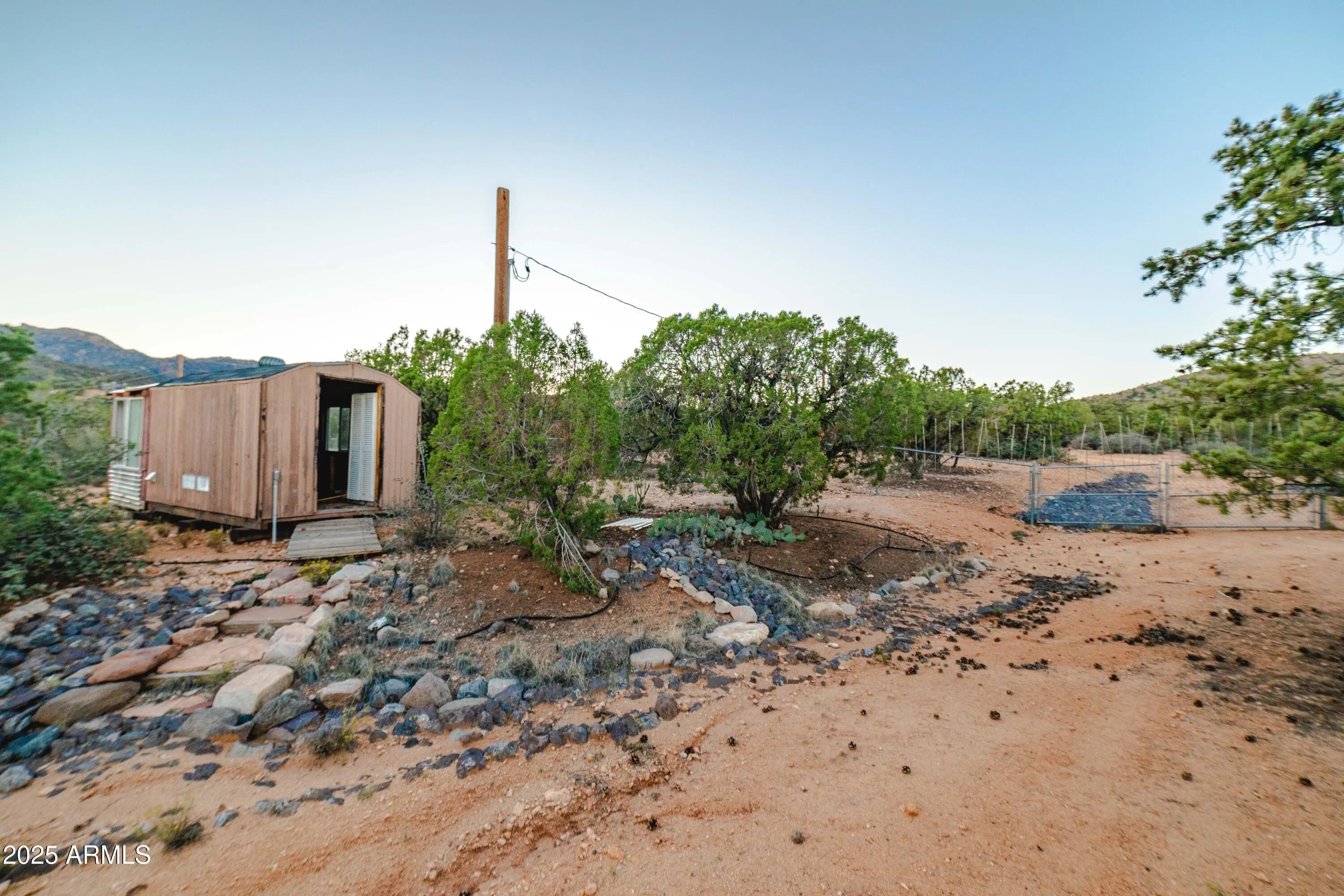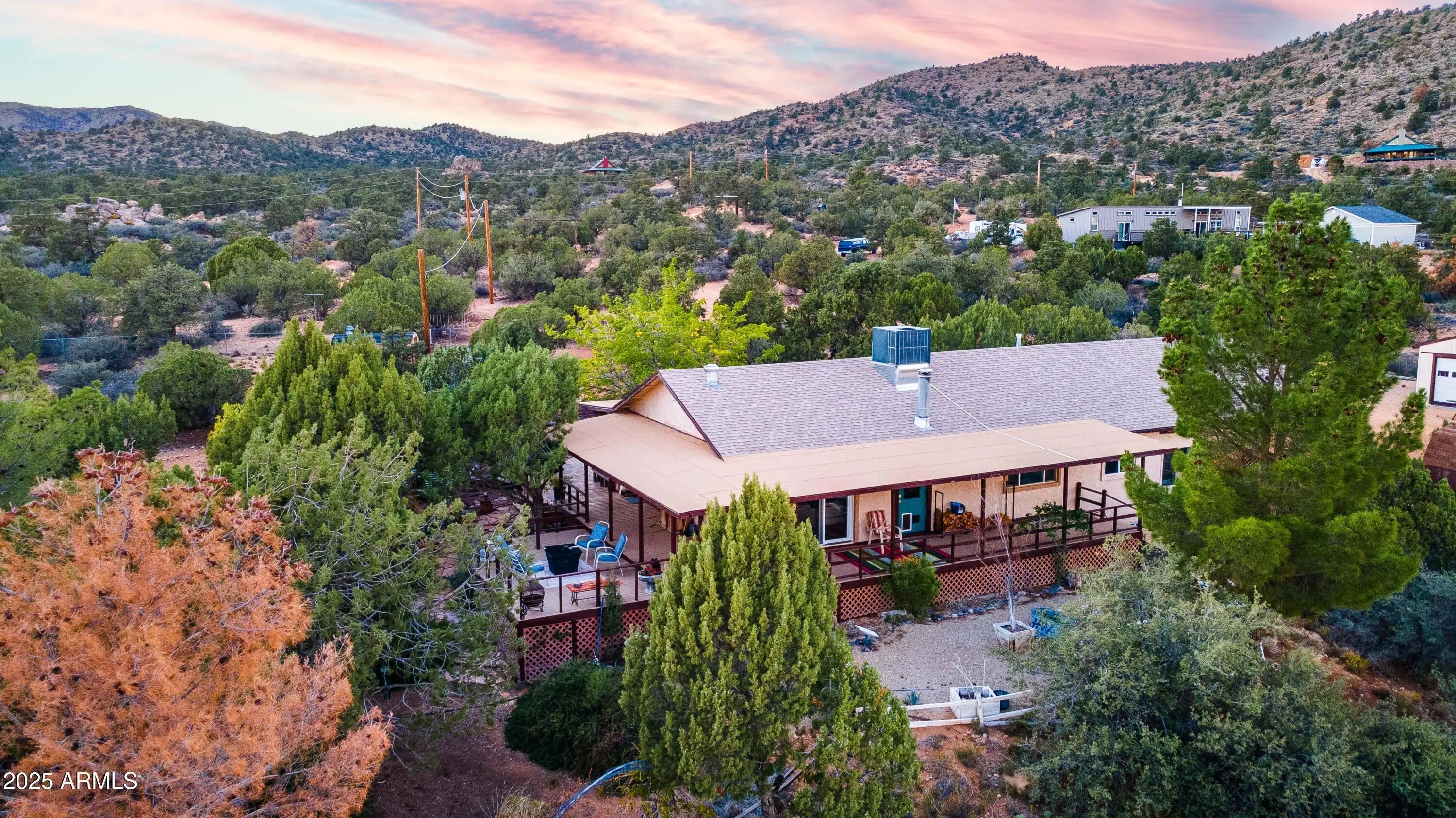 Your mountain-view, fully furnished retreat awaits your company! Nestled on 9 peaceful acres, this turn-key sanctuary blends rustic elegance with modern comfort. Vaulted beam ceilings, rich wood tones & a cozy wood stove set the stage for warmth & relaxation. Step outside to endless skies, fruit trees & tranquil fish pond—perfect for sunrise coffee or starlit nights. Area around home fully fenced for your fur-family, with workshop & storage shed for hobbies & gear. Ample RV parking. Installed internet connection conveys—just add service! Expansive decks open to breathtaking desert vistas where silence, nature & crisp clean air embrace you in perfect harmony. Experience peace, comfort & pure Arizona magic in every moment. Discover the Charm of Hackberry, Arizona! and a touch of Americana? Hackberry offers a rare blend of desert beauty, rich history, and small-town charm. Nestled along historic Route 66, this quiet community is perfect for those seeking a slower pace, stunning sunsets, and wide-open skies. With its vintage vibe, friendly neighbors, and proximity to Kingman and Grand Canyon attractions, Hackberry is more than a place to visitit's a place to call home. Escape the noise and embrace the magic of desert living in Hackberry!