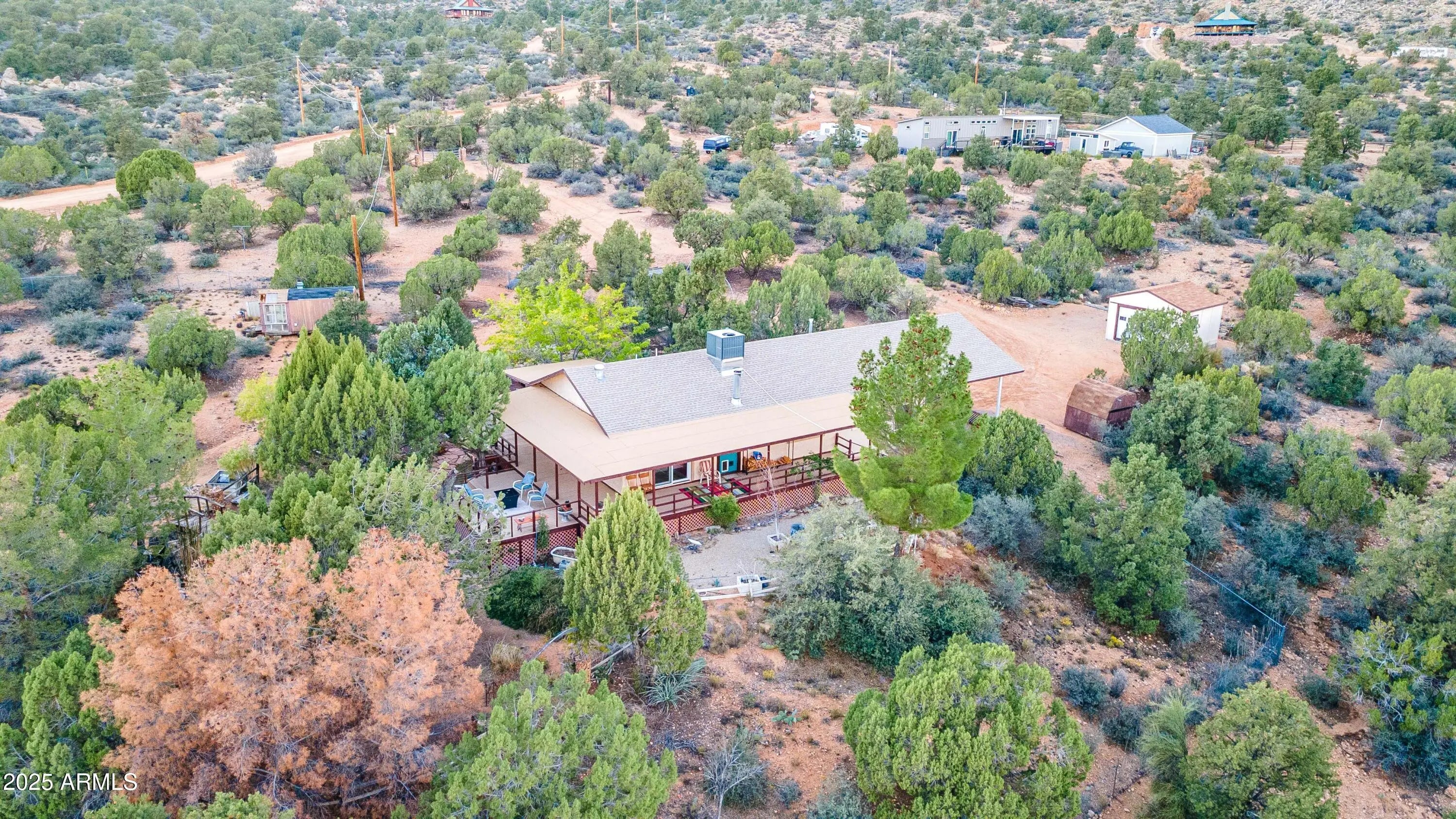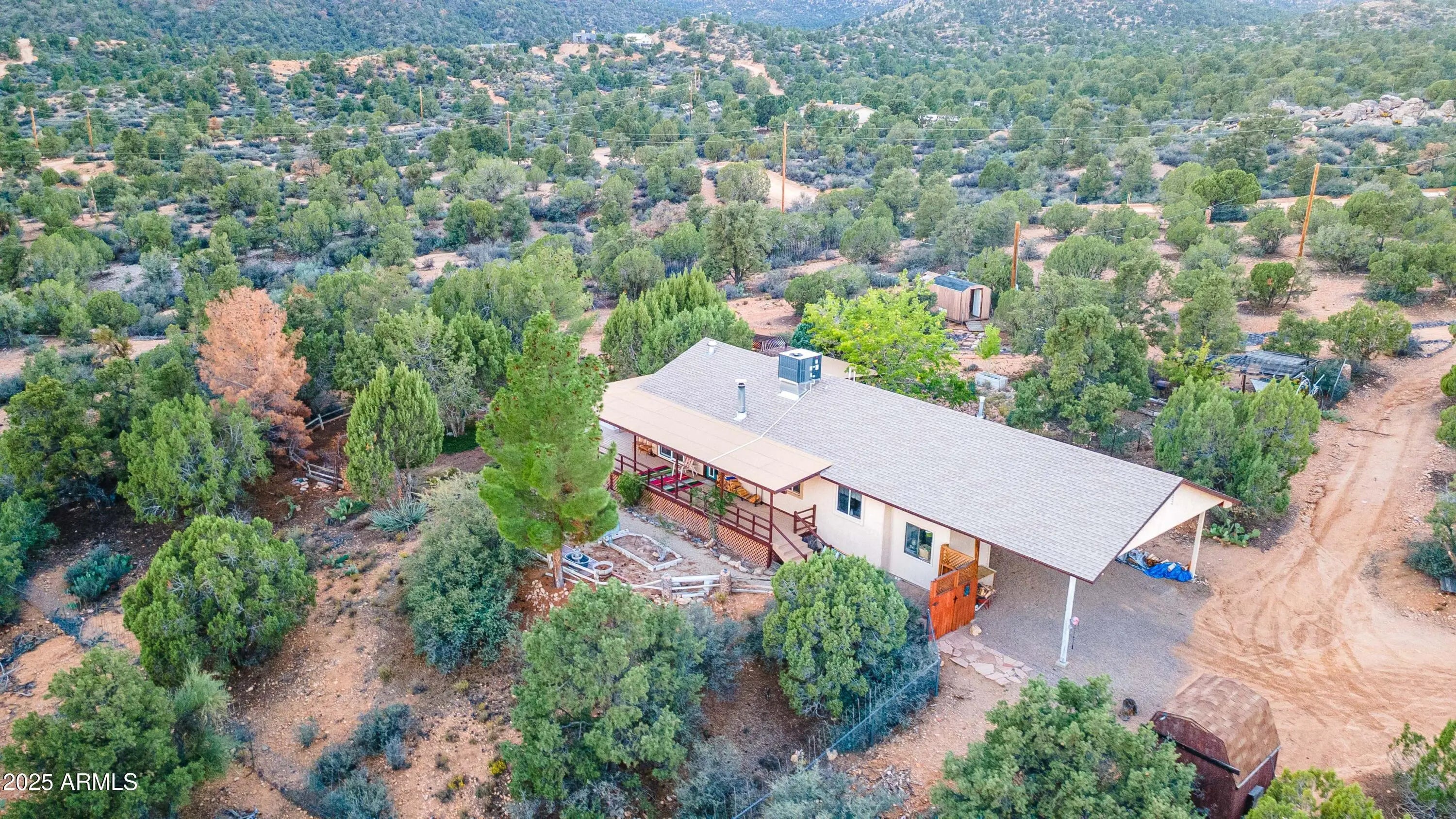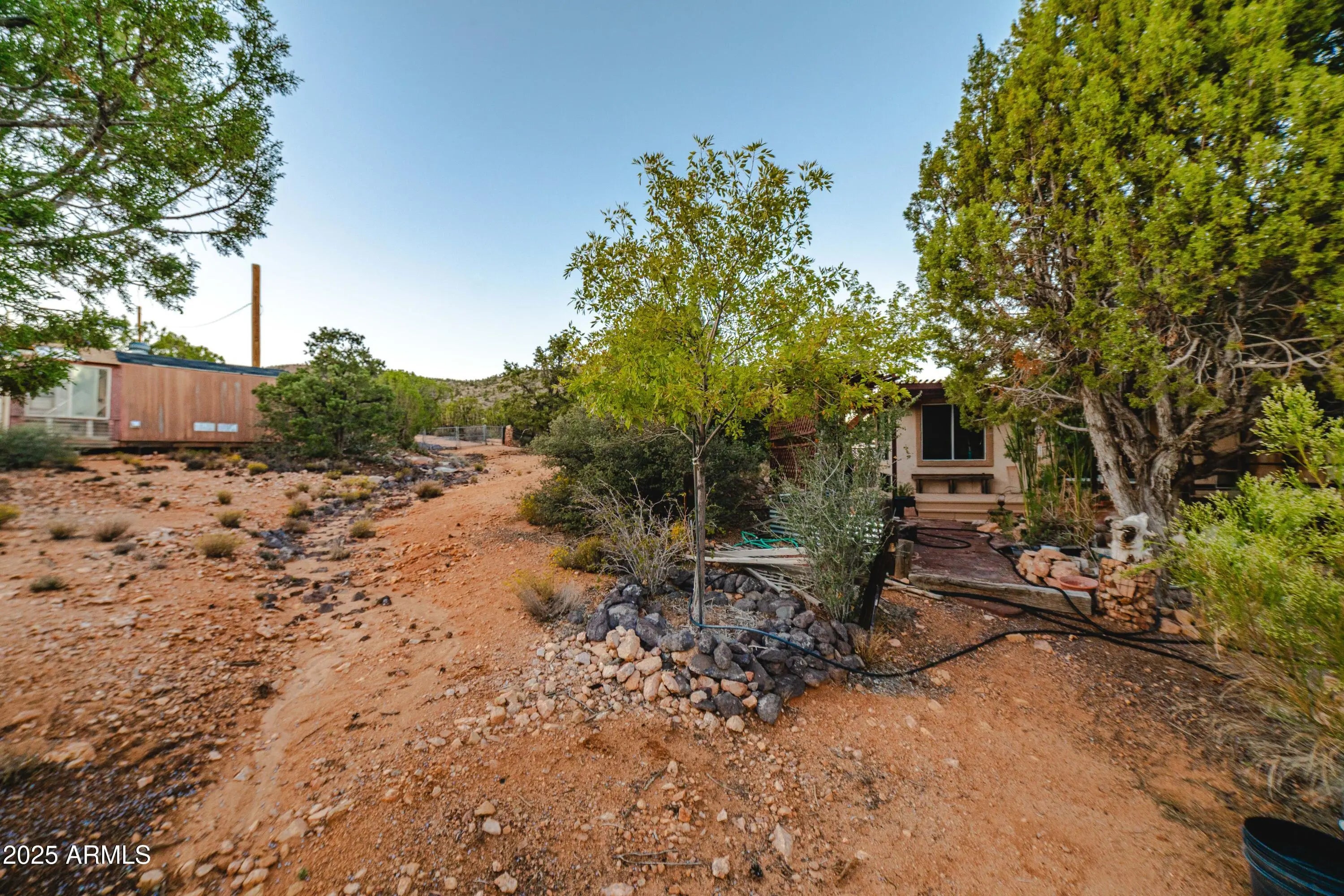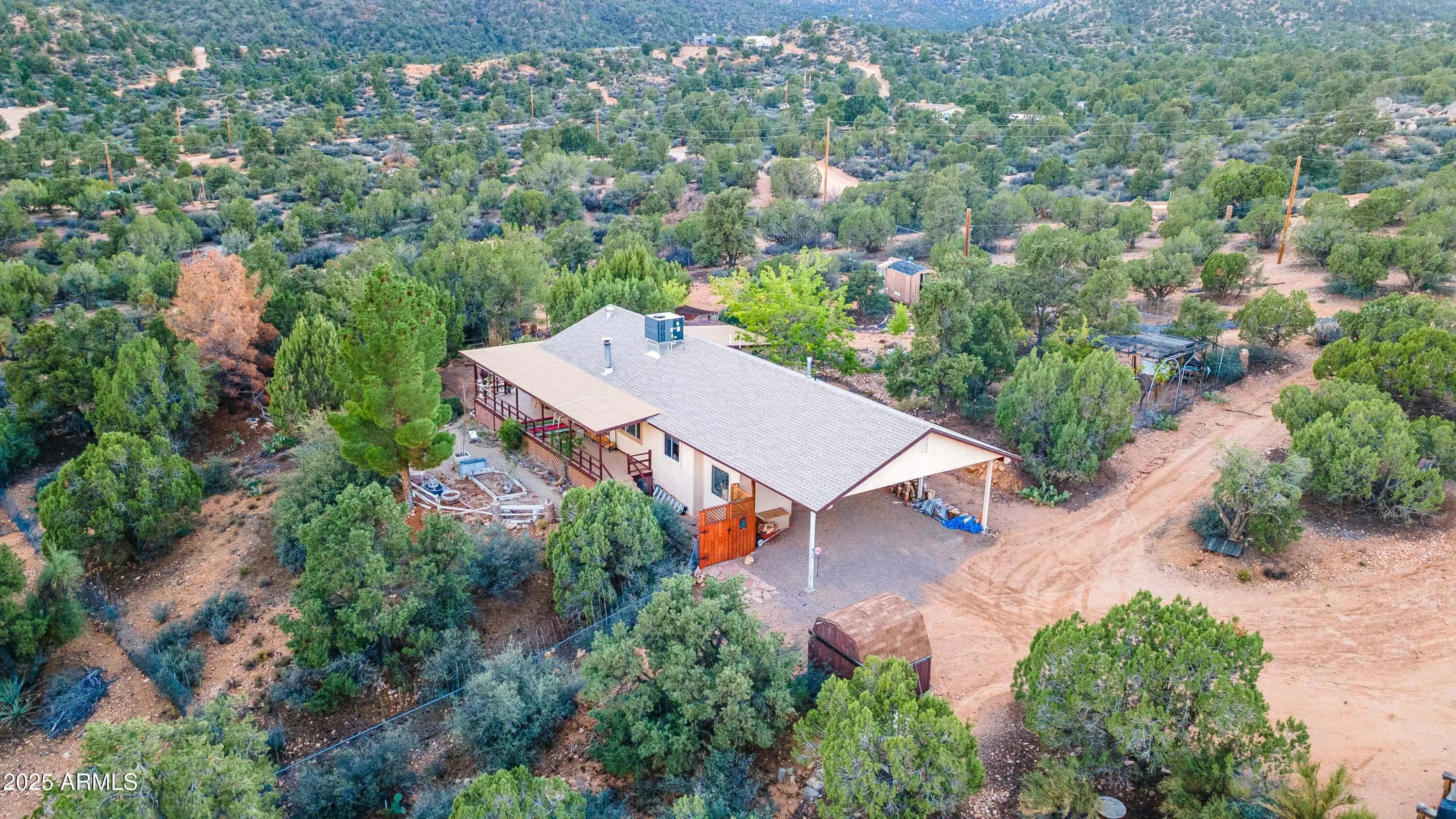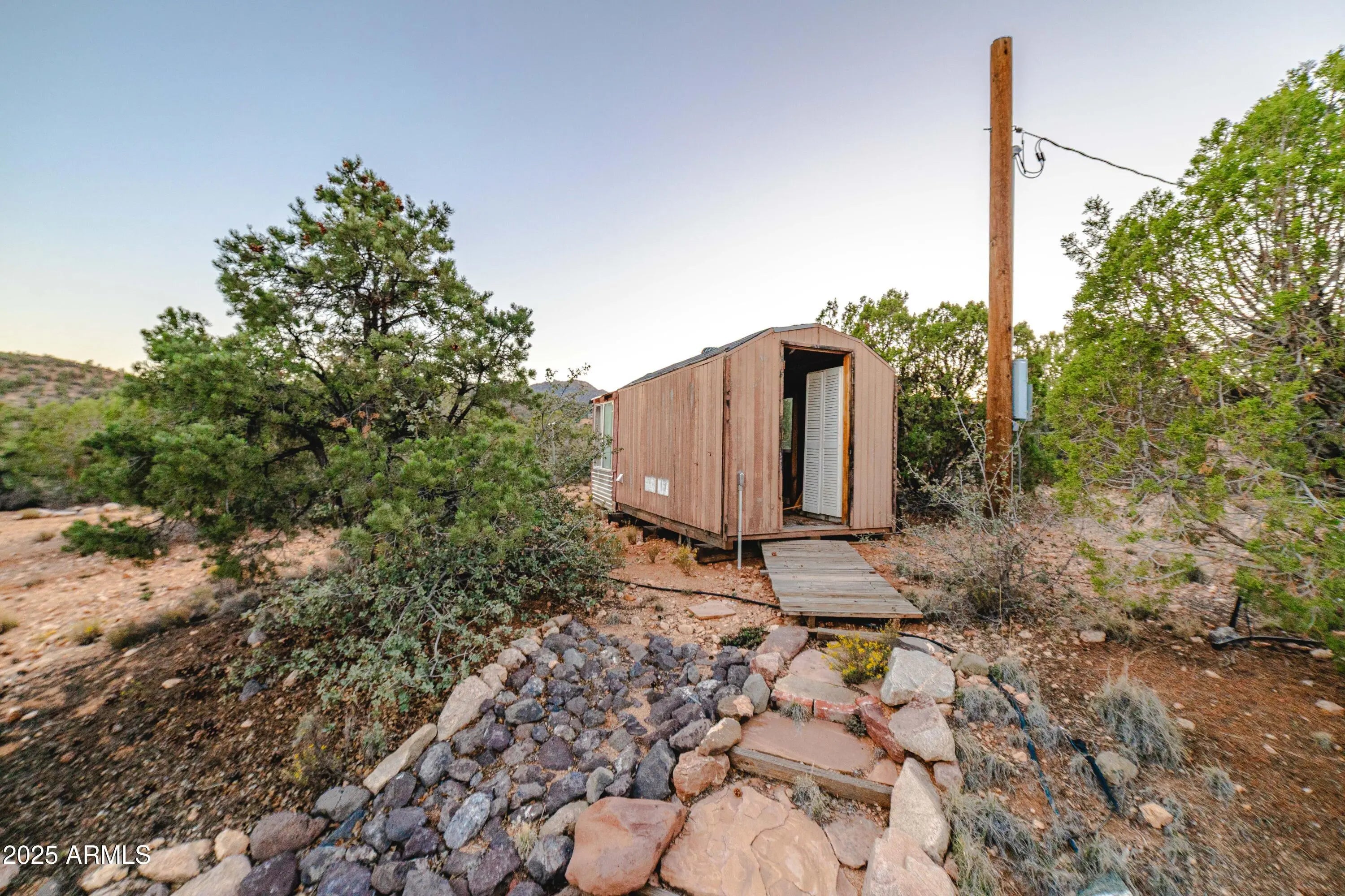 Your mountain-view, fully furnished retreat awaits your company! Nestled on 9 peaceful acres, this turn-key sanctuary blends rustic elegance with modern comfort. Vaulted beam ceilings, rich wood tones & a cozy wood stove set the stage for warmth & relaxation. Step outside to endless skies, fruit trees & tranquil fish pond—perfect for sunrise coffee or starlit nights. Area around home fully fenced for your fur-family, with workshop & storage shed for hobbies & gear. Ample RV parking. Installed internet connection conveys—just add service! Expansive decks open to breathtaking desert vistas where silence, nature & crisp clean air embrace you in perfect harmony. Experience peace, comfort & pure Arizona magic in every moment. Discover the Charm of Hackberry, Arizona! and a touch of Americana? Hackberry offers a rare blend of desert beauty, rich history, and small-town charm. Nestled along historic Route 66, this quiet community is perfect for those seeking a slower pace, stunning sunsets, and wide-open skies. With its vintage vibe, friendly neighbors, and proximity to Kingman and Grand Canyon attractions, Hackberry is more than a place to visitit's a place to call home. Escape the noise and embrace the magic of desert living in Hackberry!