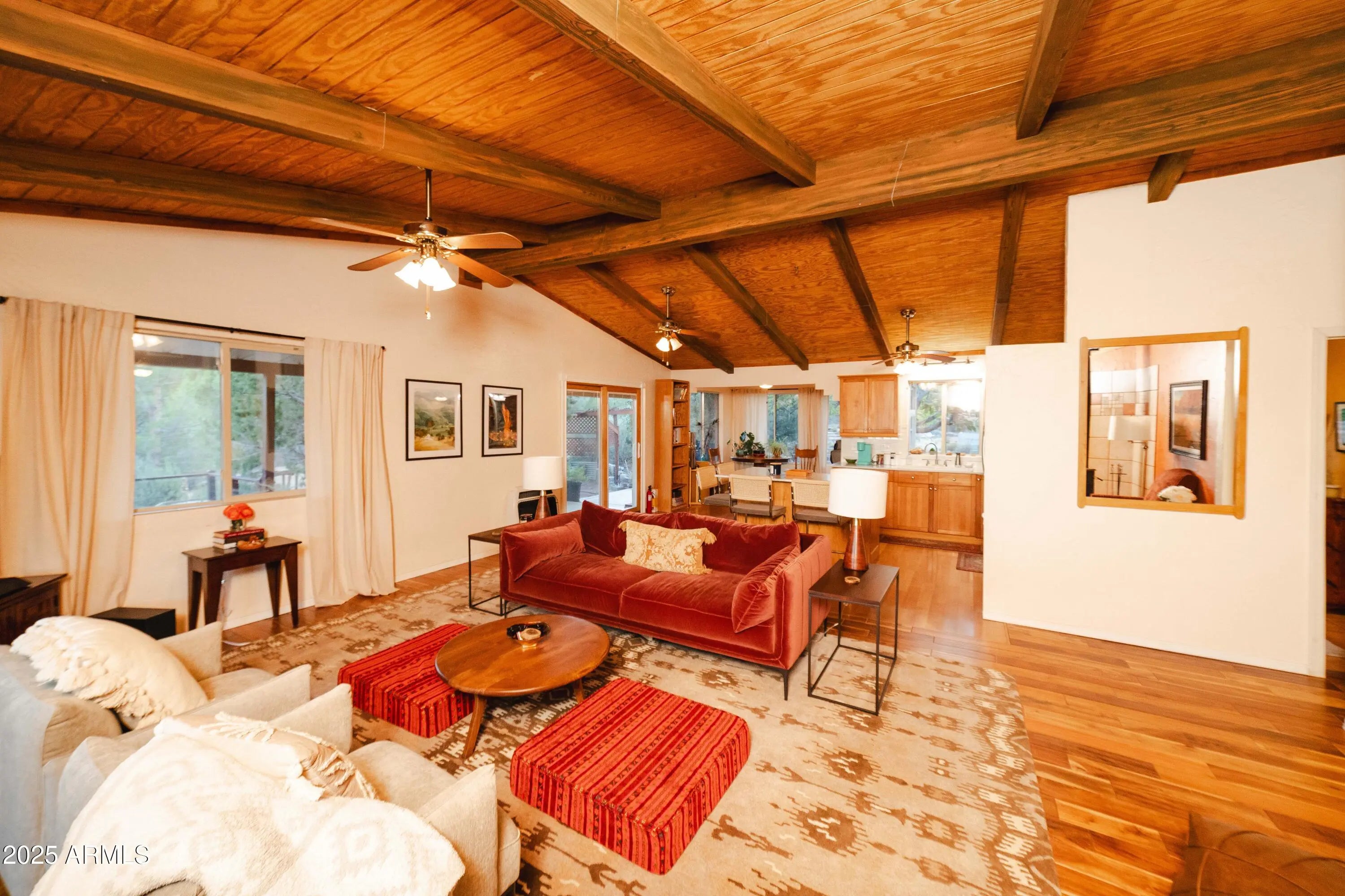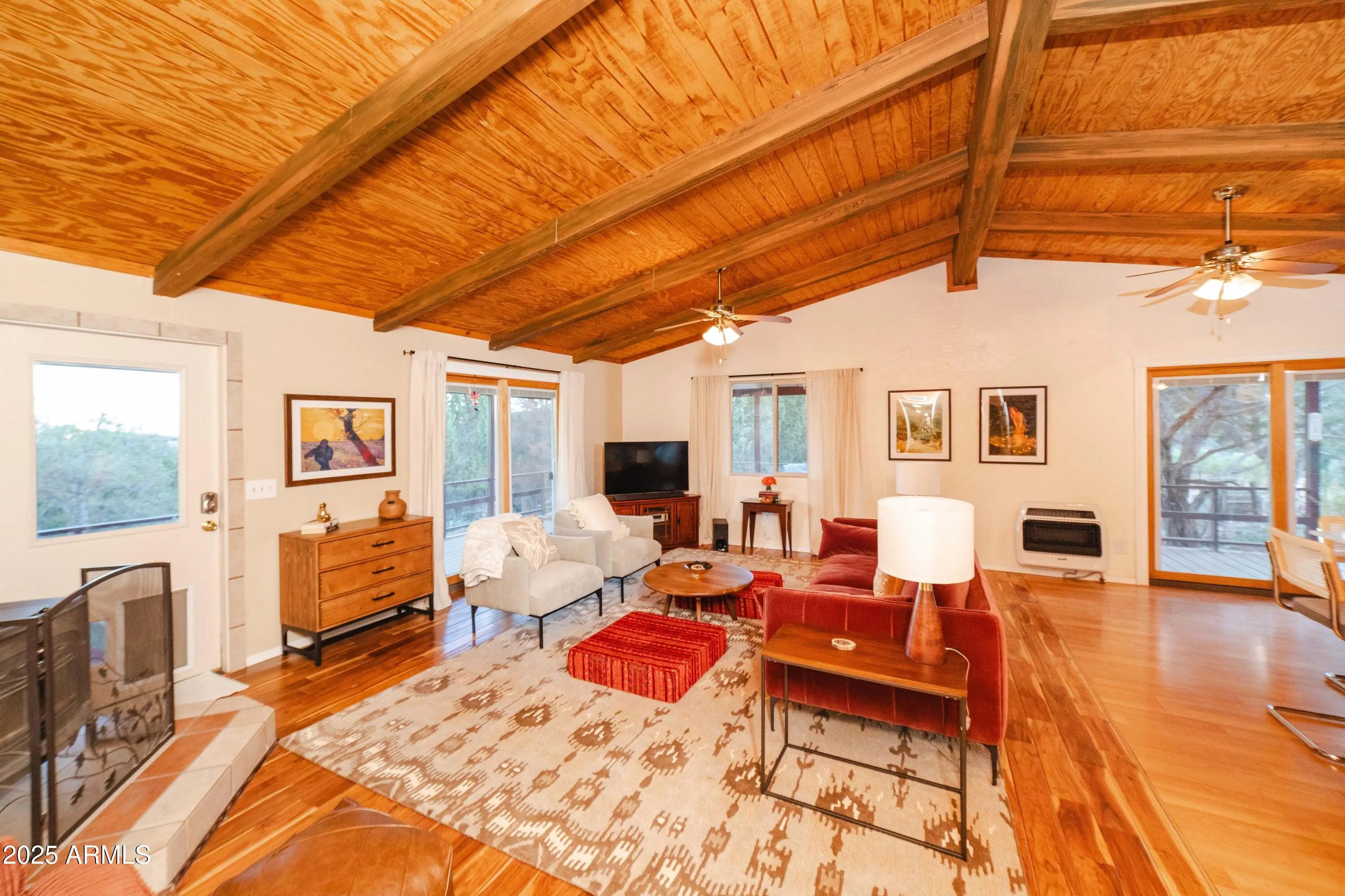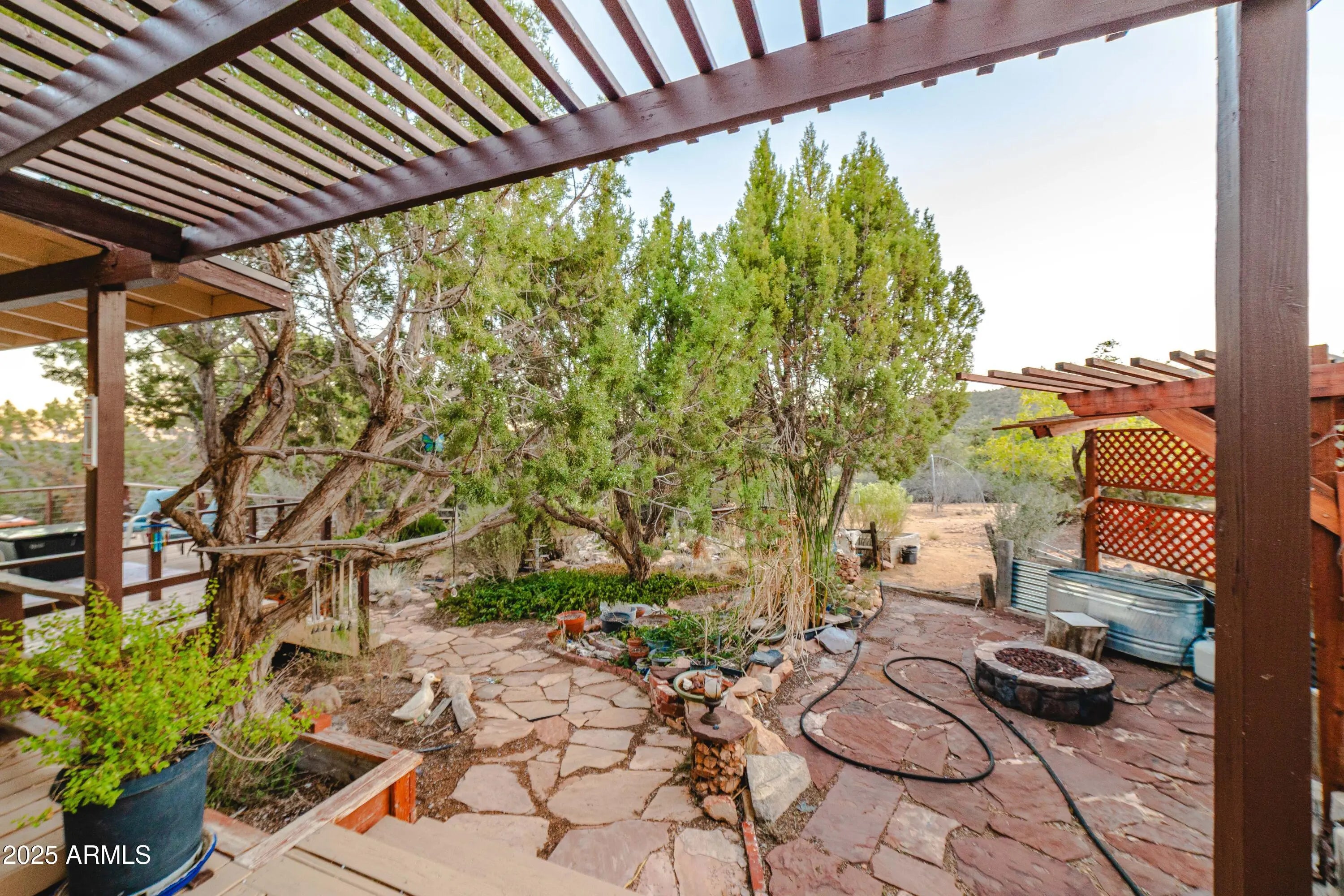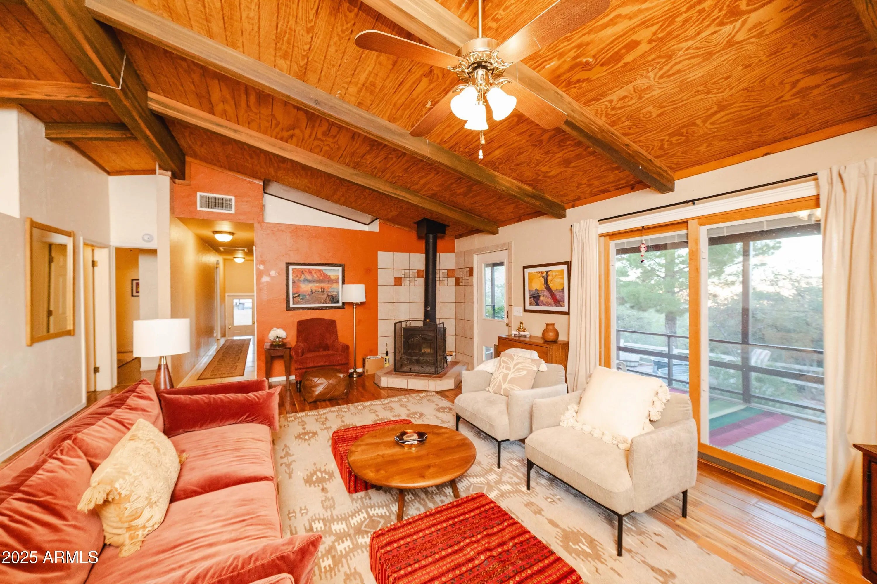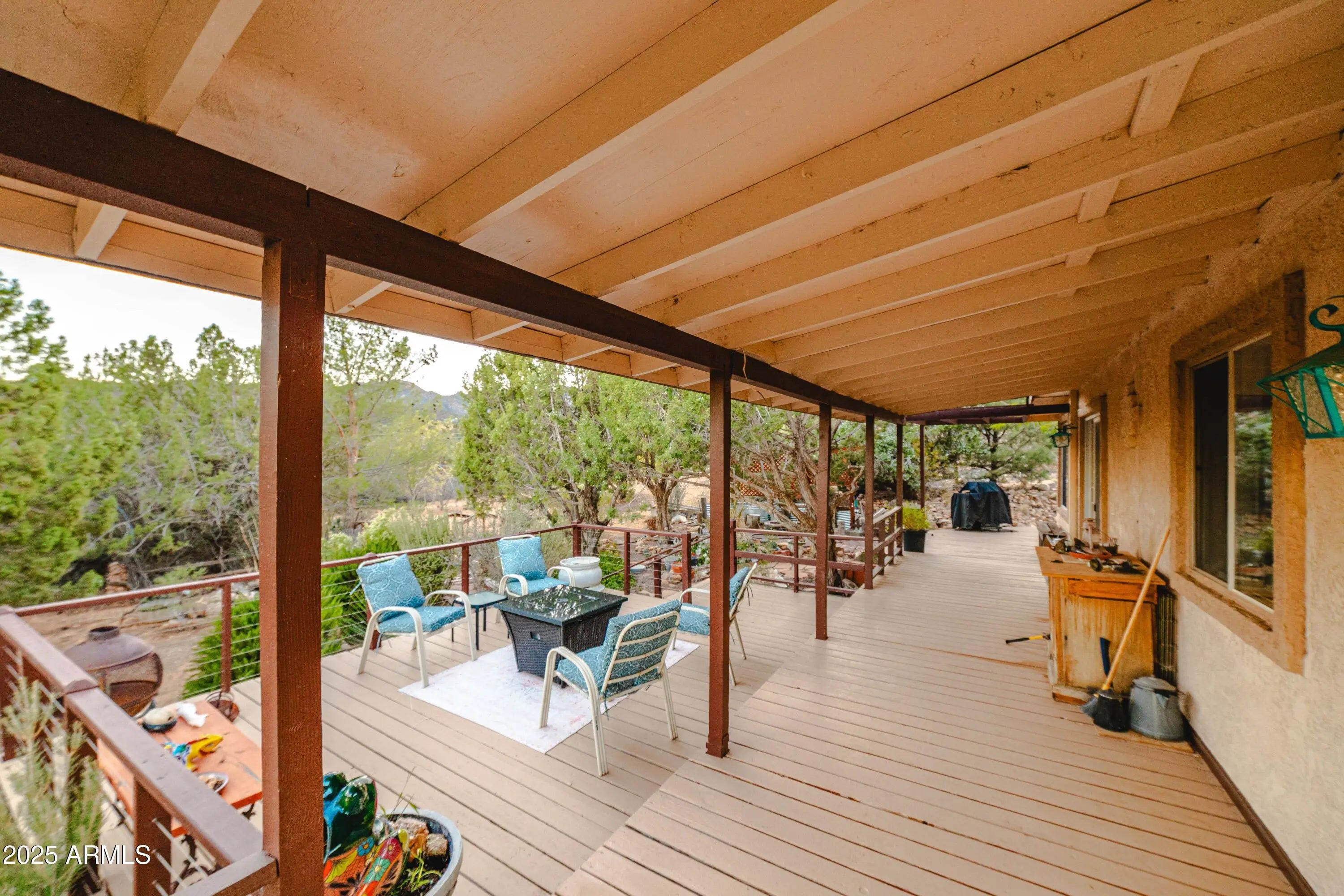 Your mountain-view, fully furnished retreat awaits your company! Nestled on 9 peaceful acres, this turn-key sanctuary blends rustic elegance with modern comfort. Vaulted beam ceilings, rich wood tones & a cozy wood stove set the stage for warmth & relaxation. Step outside to endless skies, fruit trees & tranquil fish pond—perfect for sunrise coffee or starlit nights. Area around home fully fenced for your fur-family, with workshop & storage shed for hobbies & gear. Ample RV parking. Installed internet connection conveys—just add service! Expansive decks open to breathtaking desert vistas where silence, nature & crisp clean air embrace you in perfect harmony. Experience peace, comfort & pure Arizona magic in every moment. Discover the Charm of Hackberry, Arizona! and a touch of Americana? Hackberry offers a rare blend of desert beauty, rich history, and small-town charm. Nestled along historic Route 66, this quiet community is perfect for those seeking a slower pace, stunning sunsets, and wide-open skies. With its vintage vibe, friendly neighbors, and proximity to Kingman and Grand Canyon attractions, Hackberry is more than a place to visitit's a place to call home. Escape the noise and embrace the magic of desert living in Hackberry!