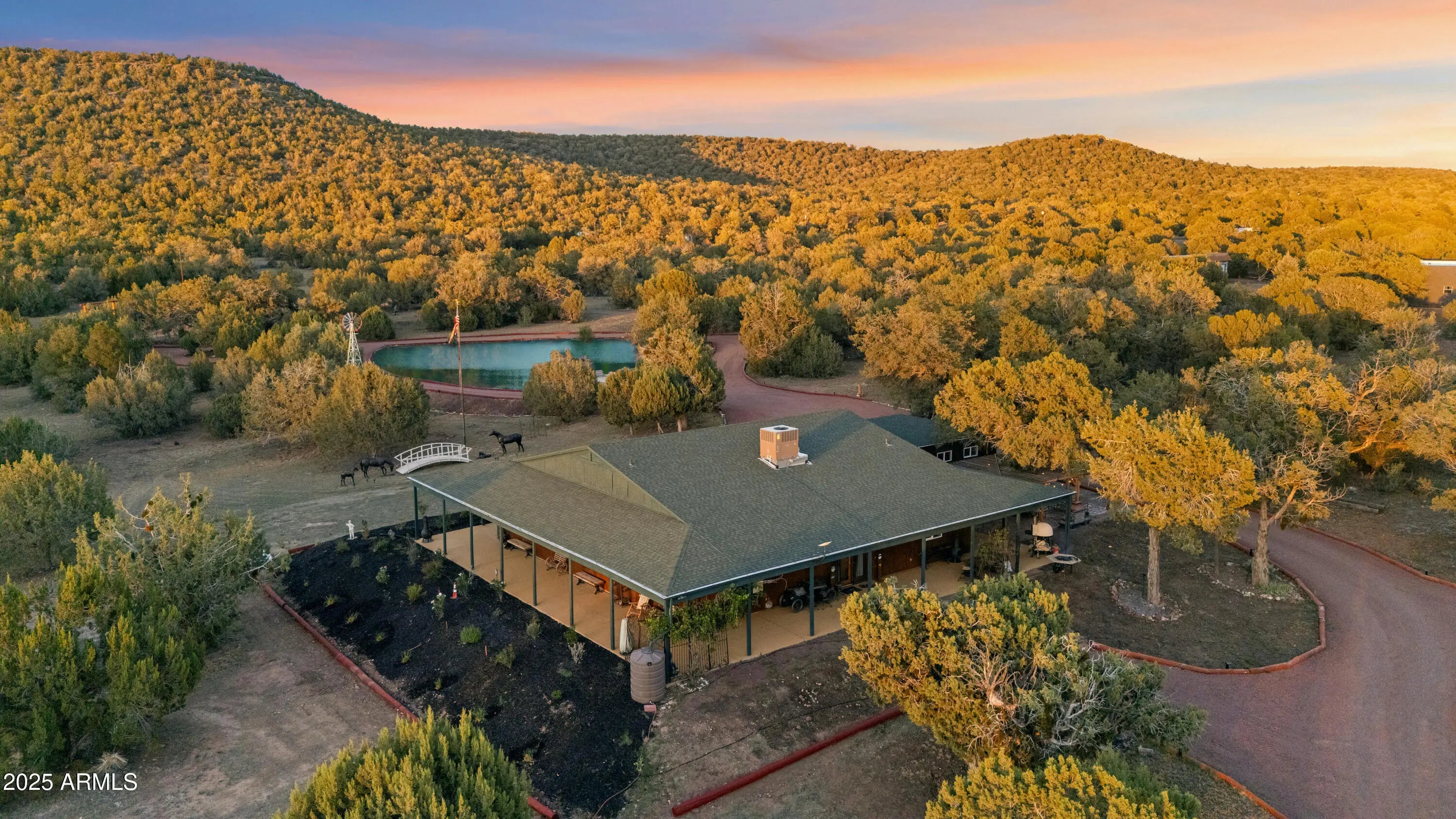 Luxury Ranch in Northern Arizona A Collector's Paradise, A Horseman's Dream, and A Desert Sanctuary of Freedom and Beauty. Elevation: 5,310 ft, No HOA INTRODUCTION: Welcome to one of Northern Arizona's most remarkable luxury ranches, a property that embodies freedom, artistry, and self-sufficiency. Perfectly situated in the picturesque high desert of Seligman, Arizona, this 35.85 ± acre estate blends timeless Western character with resort-style living. Every inch of this property is a masterpiece — fully furnished with first-class, collector, and historic artifacts, curated to reflect Arizona's rugged spirit and refined soul. Enter through a grand gated drive flanked by bronze elk and horse statues, and centered around a dramatic fountain Driveway covered with Red Rebel stone, and red stained logs line the driveways and landscaping, showing the kind of entry that announces prestige, privacy, and pride of ownership. The main residence, constructed with straw-bale architecture for exceptional thermal efficiency, spans approximately 2,916 sq ft. Inside, artistry meets function: a massive marble island anchors the chef's kitchen, finished with copper elk backsplash, custom hood, ZLINE gas range and refrigerator, Wolf countertop oven, espresso machine, and drawer-style microwave. Both bathrooms are transformed into spa sanctuaries, featuring claw-foot tubs, waterfall showers, illuminated mirrors, and Toto bidet toilets. The living room glows with the warmth of a pellet stove, surrounded by fine art, rare pottery, and exotic taxidermy that celebrate life in the American West. An adjacent laundry and utility suite houses a Smart-TV refrigerator, ice-cream freezer, and AED system a thoughtful touch emphasizing safety and modern comfort. Step outside to an entertainer's paradise: a triple pergola custom built from cedar around a 100-year old twin-trunk juniper, illuminated by string lights over flagstone flooring, featuring a commercial BBQ, wood-fired pizza oven, a rotisserie big enough for a 100-lb pig, outdoor fireplace, and teak dining sets. Complementing the main home is a 3,840 ± sq ft fully furnished bunkhouse a two-story guest lodge offering 3 bedrooms, 2 baths, a covered front porch, and a balcony off the primary suite crowned by a copper-lit cupola that glows at night. Below, a breezeway tack room and storage area open to 12 stalls, a garage, and ample space for animal care, feed, and equipment. Nearby stands the 1,780 sq ft medical and breeding facility, complete with head-gate chute, squeeze system, and dedicated areas for veterinary care, branding, and animal birthing. All structures have been meticulously remodeled with new roofing, paint, lighting, and windows, preserving the ranch's integrity while infusing modern sophistication. RANCH FEATURES Fully Fenced 35.85 ± Acres with industrial oil-pipe fencing Grand Entry & Fountain - gate with lighting, statues, and stonework Private Pond with 30-ft pier, windmill, and Green Egg BBQ for lakeside entertaining Hay Barn: 802 × 202 × 202 high - with automatic watering for horses and livestock Outdoor Roping Arena, Round Pen, Hot Walker, and 12 rodeo lights for nighttime riding. 4 Elevated Shooting Platforms (10 ft high) with stargazing deck and enclosed outhouse Underground Water Piping to all troughs and pastures Two 20-ft Convex Storage Containers with sweeping roof between the two plus one 40-ft Convex Storage containers, additional garages, tools, generators, off-road Segway, and two electric mountain bikes, on side of garage there is a whole home Generex generator ANIMAL & LIVESTOCK HIGHLIGHTS This property is a living, breathing ranch operation: Buffalo herd: male, female, and new calf Asian Water Buffalo pair Four Watusi cattle with signature sweeping horns Five Red Cows from the renowned Louis Vuitton Ranch in Texas Five Scottish Highlanders various colors. Ten horses, 1 mini- pony, 1 mini- donkey, twenty head of cattle, and one mini Zebu. Automatic watering stations, shaded shelters, and irrigated grazing pastures ensure animal well being. VEHICLES & EQUIPMENT INCLUDED A complete, turn-key package: LMTV 6×6 Water Truck with water cannon - private fire response unit Military Humvee with self-contained command center (bunker system) Race Corvette & Trailer (accommodates Ferrari, Lamborghini or other low-profile cars) Harley Davidson Fatboy 26' Hydraulic Dovetail Trailer & 18' Flatbed Trailer 4-seat, covered ATV, Tractor with Implements, Horse Trailer, Welding Cart, Ariens Zero-Turn Mower LOCATION & LIFESTYLE Nestled near historic Route 66, this dream ranch sits in Seligman, one of Arizona's most beloved small towns where wild beauty meets warm hospitality. Residents enjoy four mild seasons, crisp mountain air, and endless sunshine. The ranch is conveniently located: 1 hr to Prescott 1.5 hr to Flagstaff 2.5 hrs to Las Vegas or Phoenix Within reach are Prescott's Whiskey Row, Sedona's red rocks, Grand Canyon National Park, and Snowbowl Ski Resort proving that Arizona offers not just breathtaking scenery, but a lifestyle that's vibrant, active, and endlessly inspiring. Seligman's friendly community is rich in Western culture known for its farms, rodeos, and Route 66 heritage. Locals gather for ranch rodeos, horse clinics, and outdoor concerts, creating a small-town camaraderie that newcomers instantly love. RECREATION Northern Arizona is a paradise for outdoor enthusiasts and equestrian competitors alike: Wildlife: elk, antelope, mule deer, black bear, and migratory songbirds (blue pinon jays, warblers, hummingbirds) Rodeos & Events: Prescott Frontier Days (World's Oldest Rodeo), Mohave County Fair & Rodeo, and numerous cutting, reining, and dressage events statewide Equestrian Associations: Arizona Cutting Horse Association Arabian Horse Club of Arizona National Barrel Horse Racing Association Arizona Paint Horse Club Arizona Hunter Jumper Association 4-H Mohave County Arizona Dressage Society For those who love adventure, Ariz