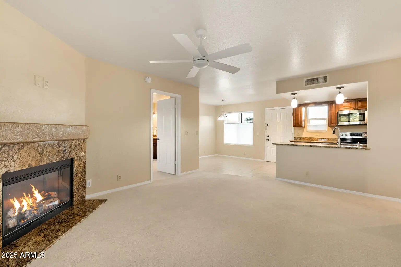 Live the resort lifestyle in this upscale community! Walk across the street to restaurants, shopping and the 64-acre Park. This 2 BD/2 BA condo is updated and includes over 260 S.F. of a scenic outdoor balcony living space! The unit has a split bedroom floor plan with a cozy fireplace. Updated kitchen with soft close cabinets, stone counters and SS appliances. It has newer dual pane windows and heating/cooling. It's close (but not too close) to the pool and spa. Lots of golfing, restaurants, and shopping nearby. Enjoy a walk around the 29-acre lake. Explore the vast outdoor oasis which includes a nearby national forest. The Town holds events year-round including major holiday festivals, car shows, and so much more! Close to the Mayo Clinic, Spring Training, Phoenix Open, etc. The oversized balcony has covered and uncovered areas with mountain and fountain views. Fountain Hills is a designated "DARK SKY" community so enjoy the stars! Watch the summer storms move in and the lightening shows during the Monsoon season. Winter brings snow on the surrounding mountain tops in the distance. Look for the Bald Eagles who fish in the lake. The Tonto National Forest nearby offers vast outdoor enjoyment. Lakeside Resort Casitas Condominiums is a no pets community.