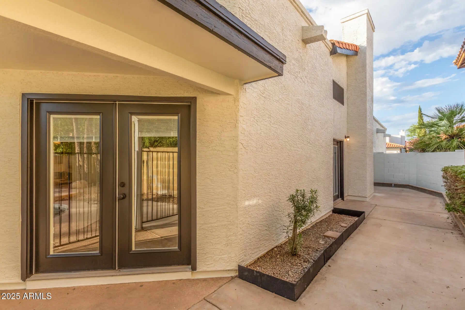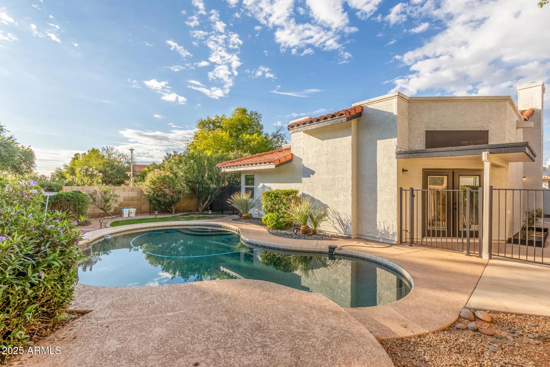 Attention! NO HOA! This home is absolutely adorable—freshly painted inside and out, sparkling clean, and move-in ready! The flat roof has just been re-coated, adding even more value and peace of mind for the next owner. Numerous skylights fill the home with natural light, enhancing the warm, open feel created by soaring ceilings and thoughtful design. Four sets of French doors also add light, charm, and convenience, with direct access from both the primary suite and second bedroom to the backyard. Inside, you'll find no carpeting anywhere—simply large 20-inch ceramic tile throughout the entire home. Additional features include custom tile in the baths, a cozy fireplace, and a separate laundry room with washer and dryer included. The kitchen shines with granite counters, stainless steel appliances, and loads of cherrywood cabinets for storage. Step outside to your own private retreat, where a fenced Pebble Tec pool offers both fun and peace of mind. The incredibly private backyard is ideal for relaxation or entertaining, and being on a corner lot means no neighbor to the westjust extra space, light, and privacy. Mature citrus trees provide fresh fruit and added shade, while low-maintenance landscaping completes the perfect outdoor setting. The 2-car garage is both practical and efficient, featuring retractable ceiling-mounted storage racks that maximize space and keep everything organized. And the location? It's hard to beat. Just minutes from Horizon High School, Desert Ridge Marketplace, and with quick access to the Loop 101 and SR-51 freeways, you'll enjoy seamless connections to shopping, dining, and the entire Valley. This sweet Scottsdale home combines charm, light, privacy, and convenience an adorable package waiting for its next owner!