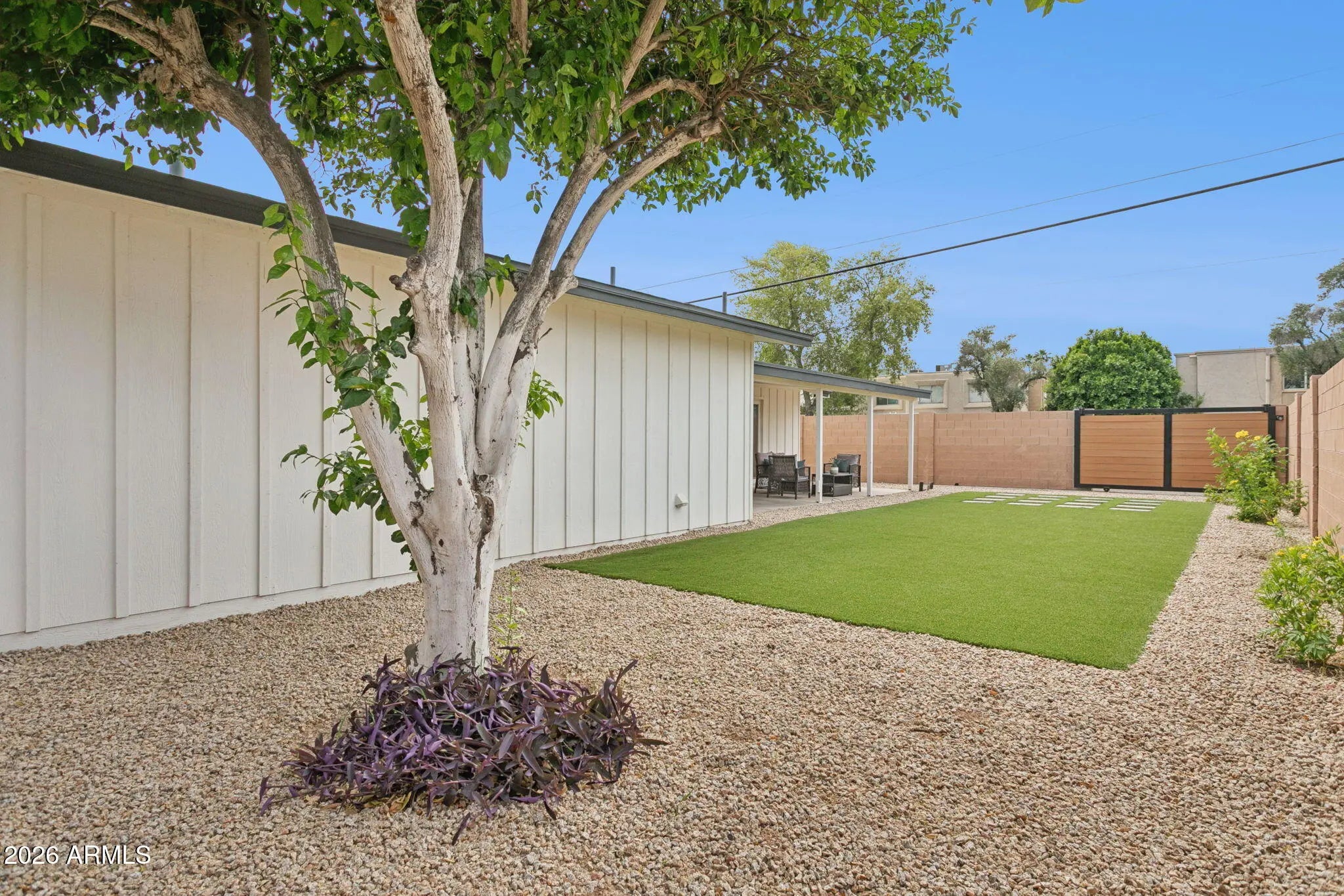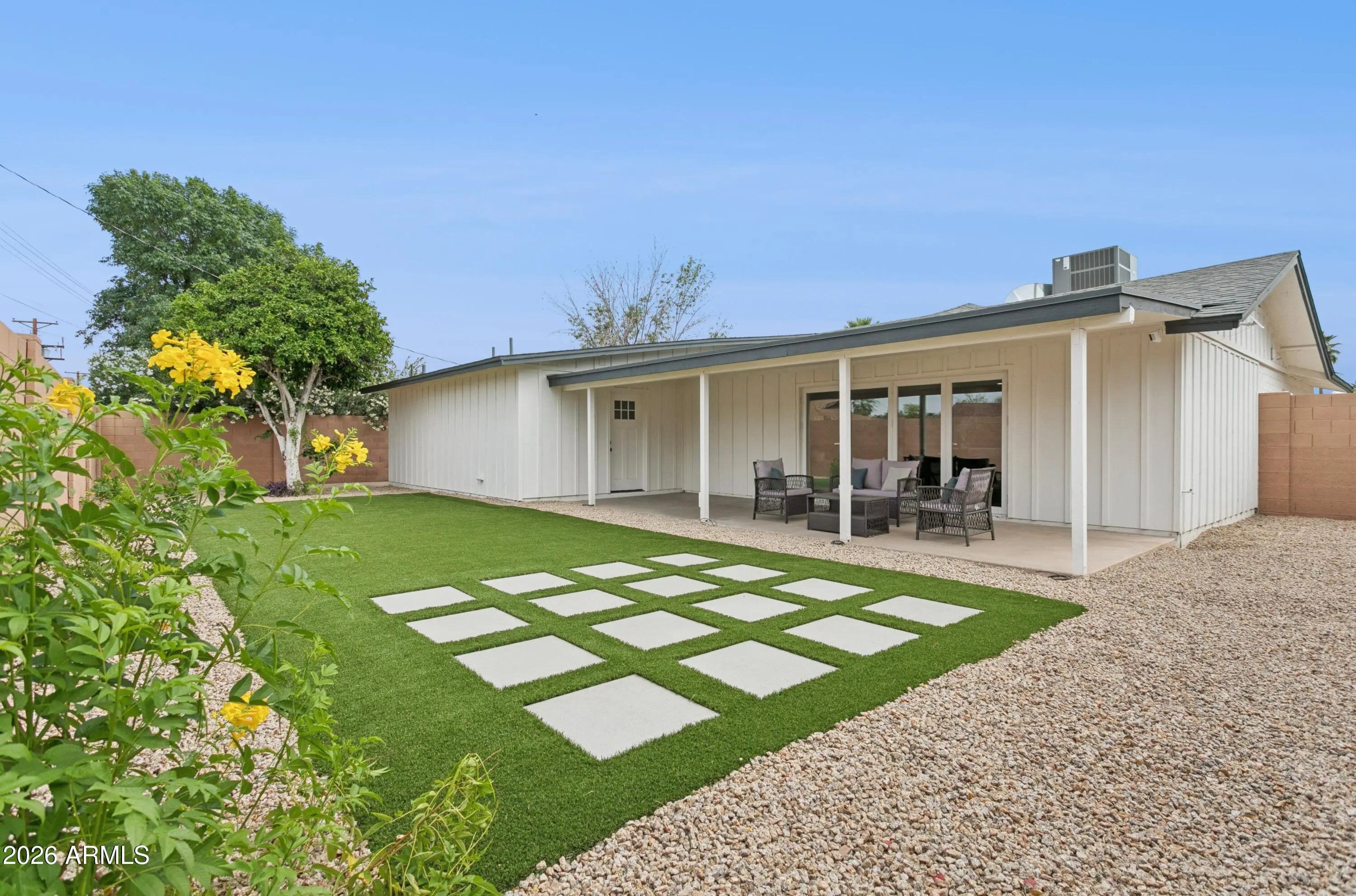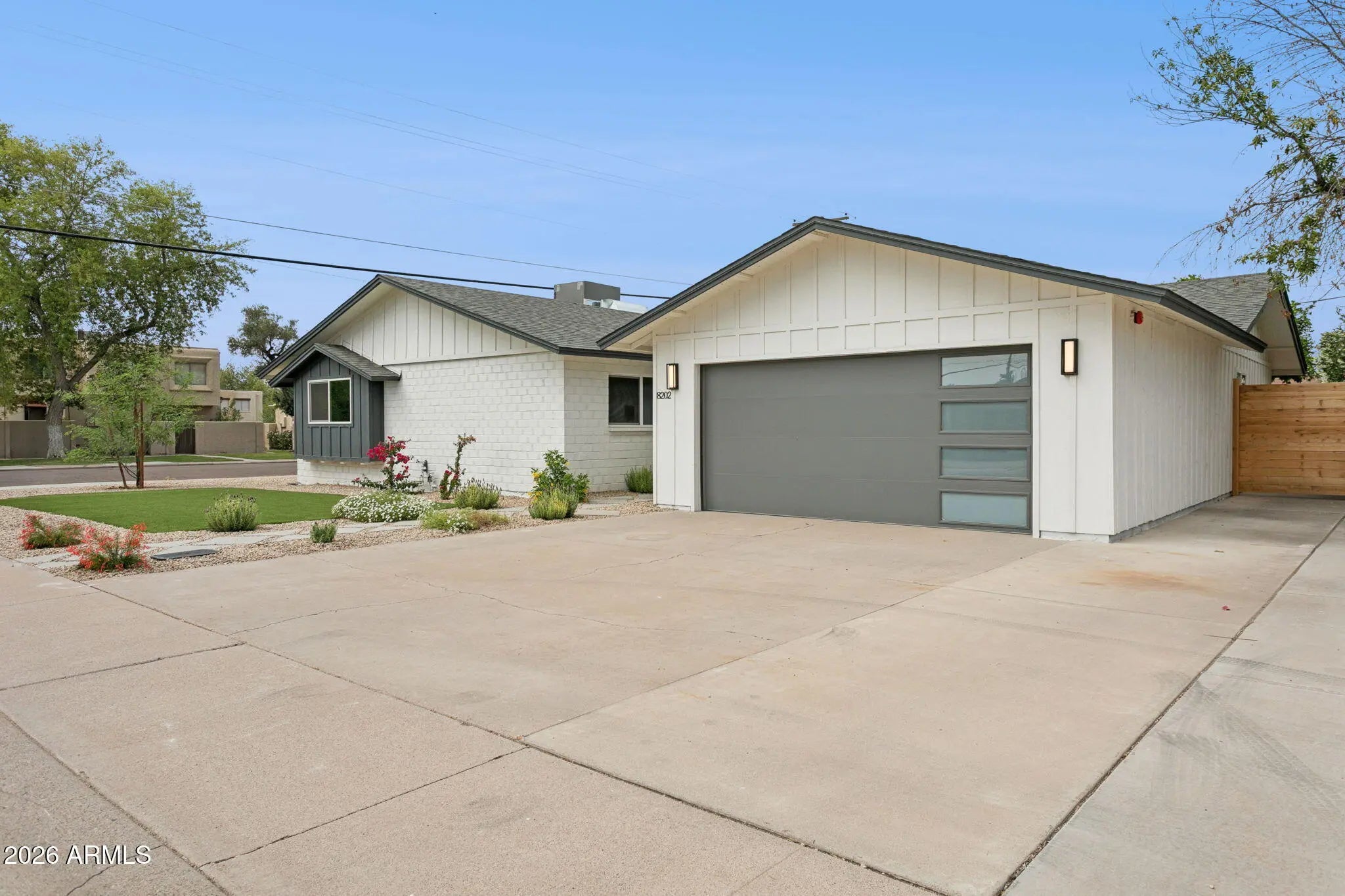 One mile from Old Town Scottsdale. Walking distance to Chaparral Park. No HOA. This is the location and the home delivers. A permitted 800 sqft addition, added vaulted ceilings, and an open concept great room anchored by a stunning 12-foot glass patio door that floods the space with light. The spa style bathroom features a freestanding tub and walk-in wet room with luxury finishes. New 2 car garage, New Primary suite, New roof, new HVAC, new plumbing, new electrical & tankless WH-- all permitted. Dedicated EV charging circuit in the garage. RV gate on the corner. Everything has been replaced, everything is permitted, and nothing is waiting to go wrong.