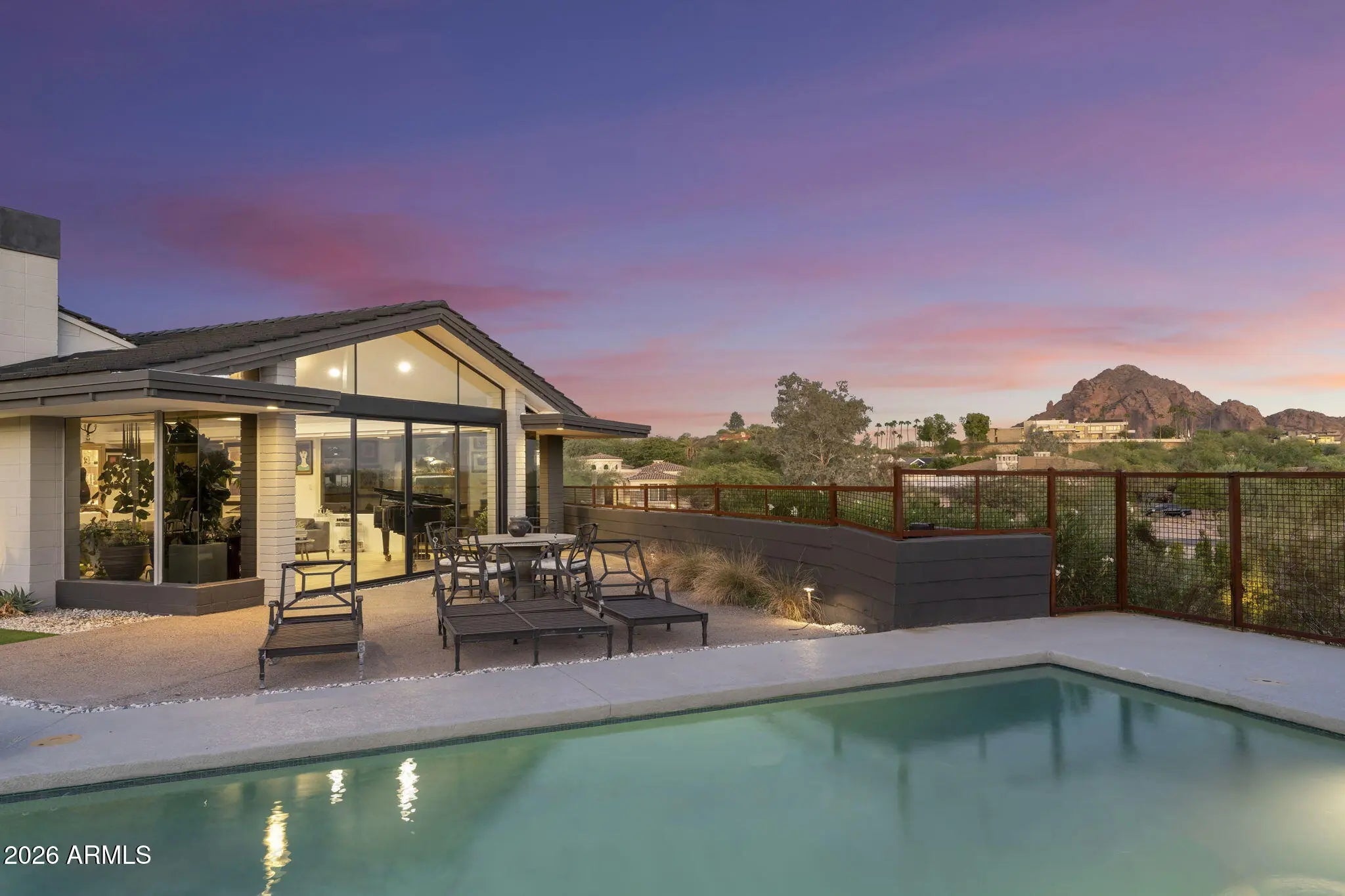 This architecturally significant trophy residence was designed by Frank Llyod Wright protégée Paul Christian Yaeger and meticulously restored and modernized in 2019. The result is a rare fusion of iconic mid-century principles with today's most coveted amenities, living like a new home while preserving its architectural soul. Soaring ceilings & walls of glass flood the interiors with natural light that frame spectacular 360-degree views, creating an effortless connection between the natural world & your home. Designed for both gracious everyday living and exceptional entertaining, the expansive floor plan flows seamlessly to multiple outdoor spaces with exceptional views of Camelback Mountain, Papago, the Phoenix Mountains & sparkling city lights. This is an architectural statement home. soothing city lights creating a sparkling backdrop as day turns to night. The thoughtfully designed low-maintenance desert landscape perfectly complements the home's clean architectural lines while celebrating the natural beauty of the Sonoran Desert. The expansive setting serves as a private oasis, equally suited for hosting sophisticated gatherings or enjoying peaceful moments in the Arizona sun. Despite the serene, secluded setting, you're mere minutes from world-class shopping and dining destinations that have made Paradise Valley the most sought-after address in Arizona. Properties of this caliber, combining architectural pedigree, designer finishes, and such a prime location, seldom become available. This is truly a rare opportunity to own a piece of mid-century modern history.