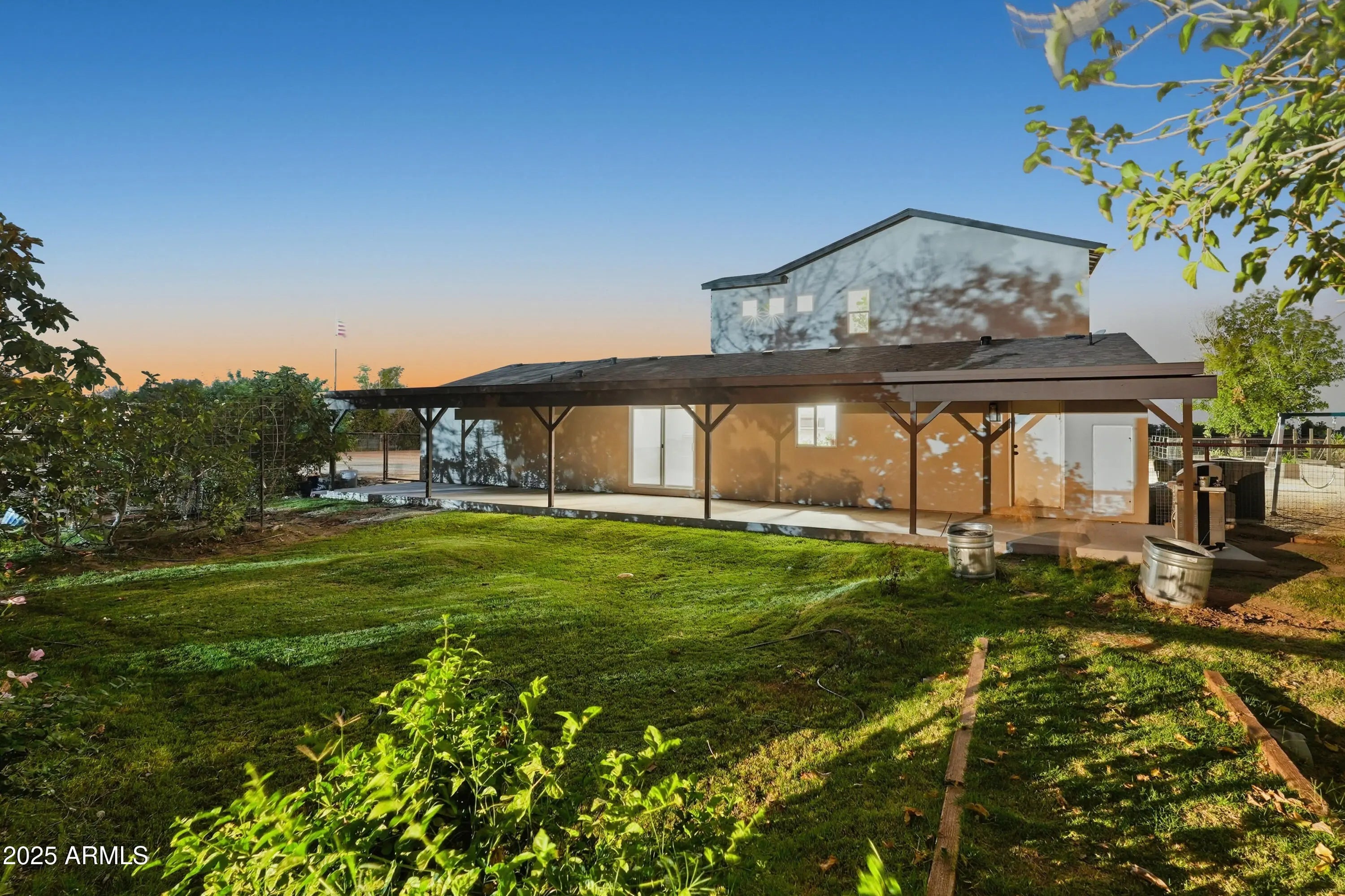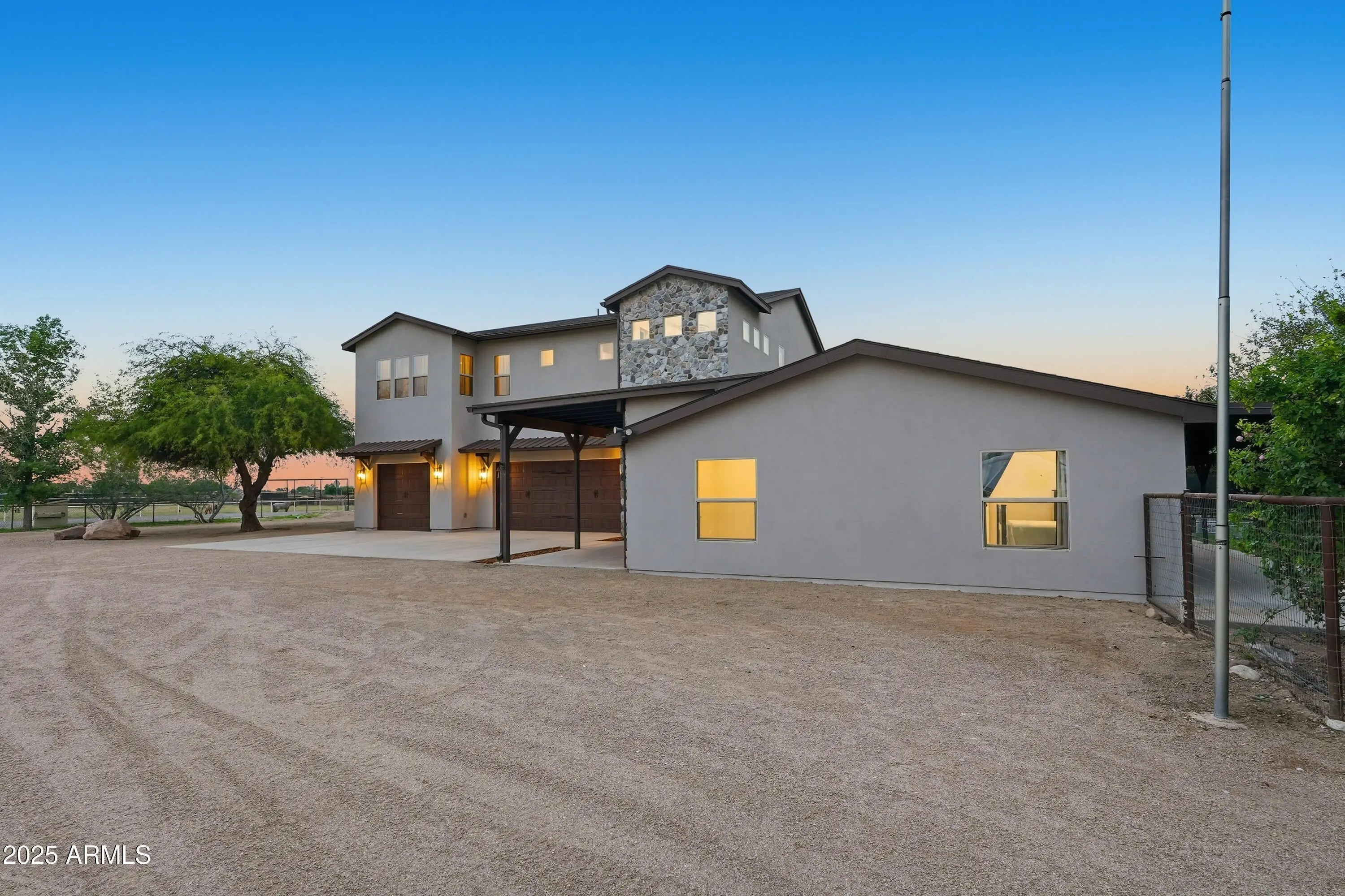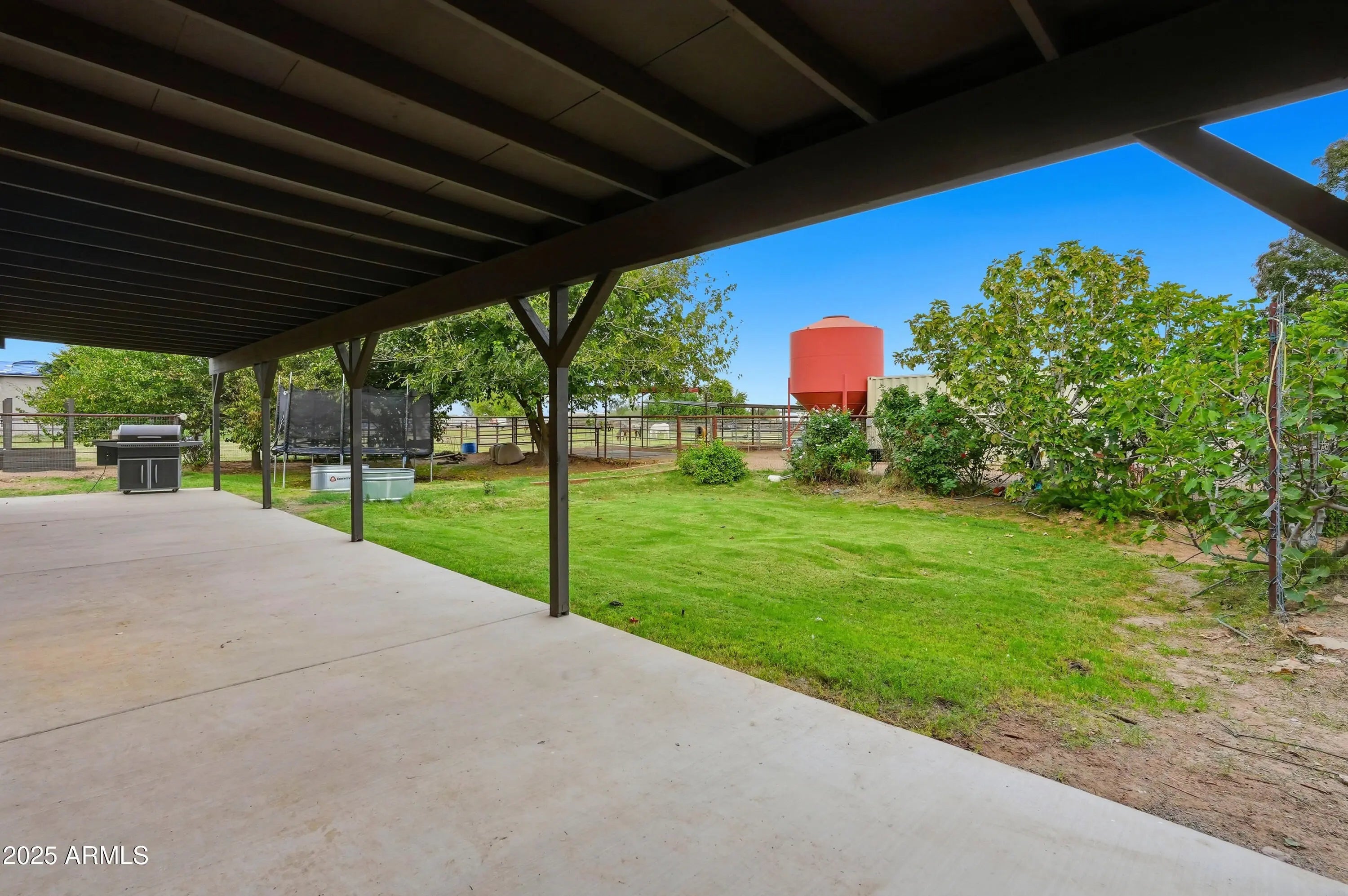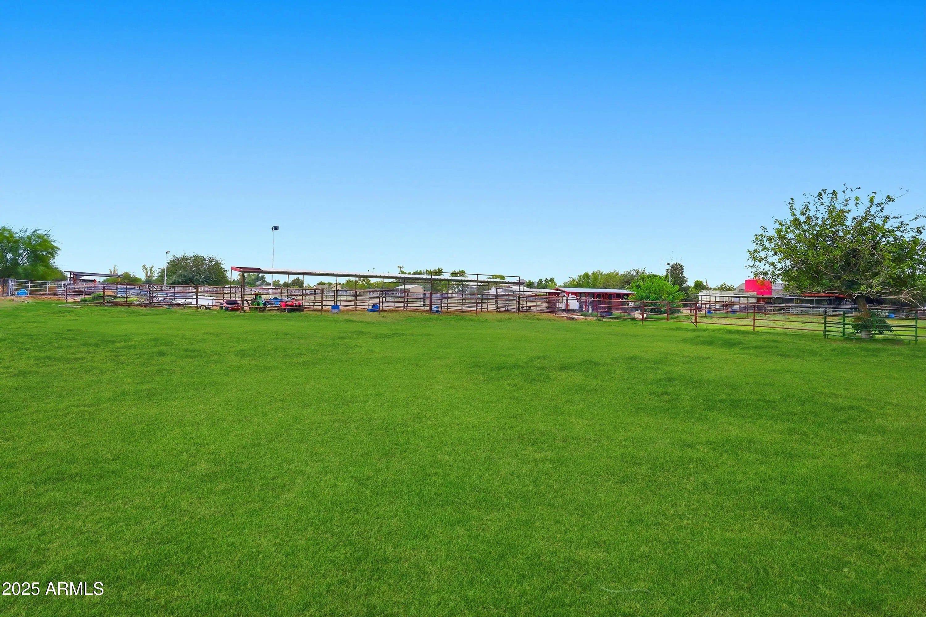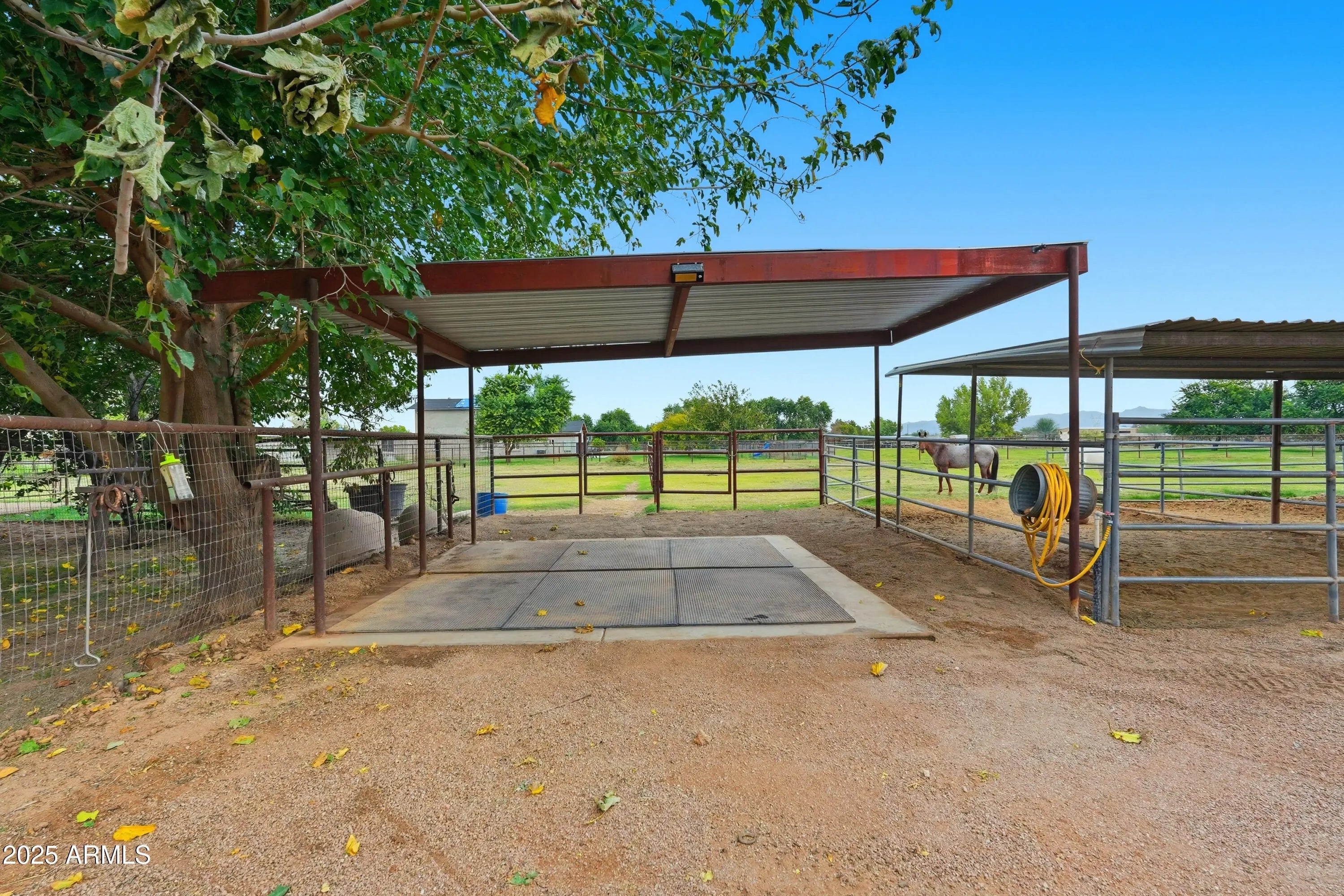 The perfect blend of fine living and true country charm on this exceptional 3.33-acre horse property. Thoughtfully designed and impeccably maintained, this property offers over an acre of flood-irrigated, cross-fenced pastures—ideal for horses or livestock—plus a beautifully updated 5-bedroom home with two full master suites and four well-appointed baths. Step inside to a gorgeous recently remodeled kitchen featuring a 36'' gas range with convection oven, oversized sink, modern finishes, and plenty of workspace. The split floor plan provides privacy and multigenerational living options, while the relaxing primary suite includes dual sinks and two spacious custom his-and-hers closets. The home also features a safe/gun room, two laundry rooms, and an oversized 1,280 sq. ft. three car garage with a full chip epoxy floor and built-in cabinets. The property includes 10 stalls with direct pasture access, a 150' × 250' LED-lit roping arena, separate tack and feed sheds, automatic waterers, a 15-ton steel feed silo, wash rack, cattle and livestock pens, and even a 320sf chicken coop with fenced run. The garden area features a charming finished she-shed/artist studio, and extensive irrigated raised garden bedsperfect for gardening enthusiasts. Mature fruit trees are planted throughout the property. An RV pad with full hookups adds convenience to the avid traveler, or guests. Enjoy the peaceful rural setting that is still just minutes from schools, shopping, and dining.