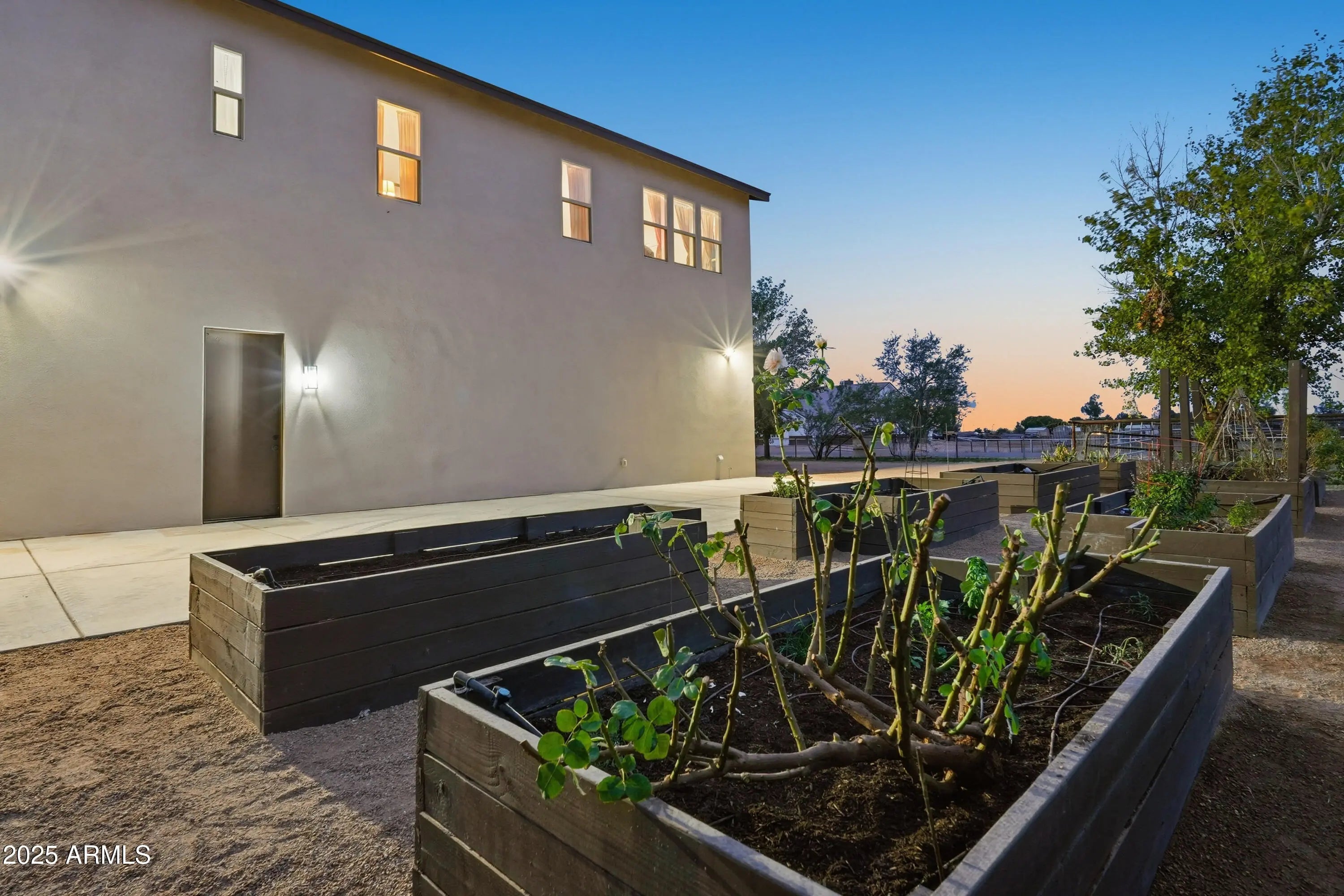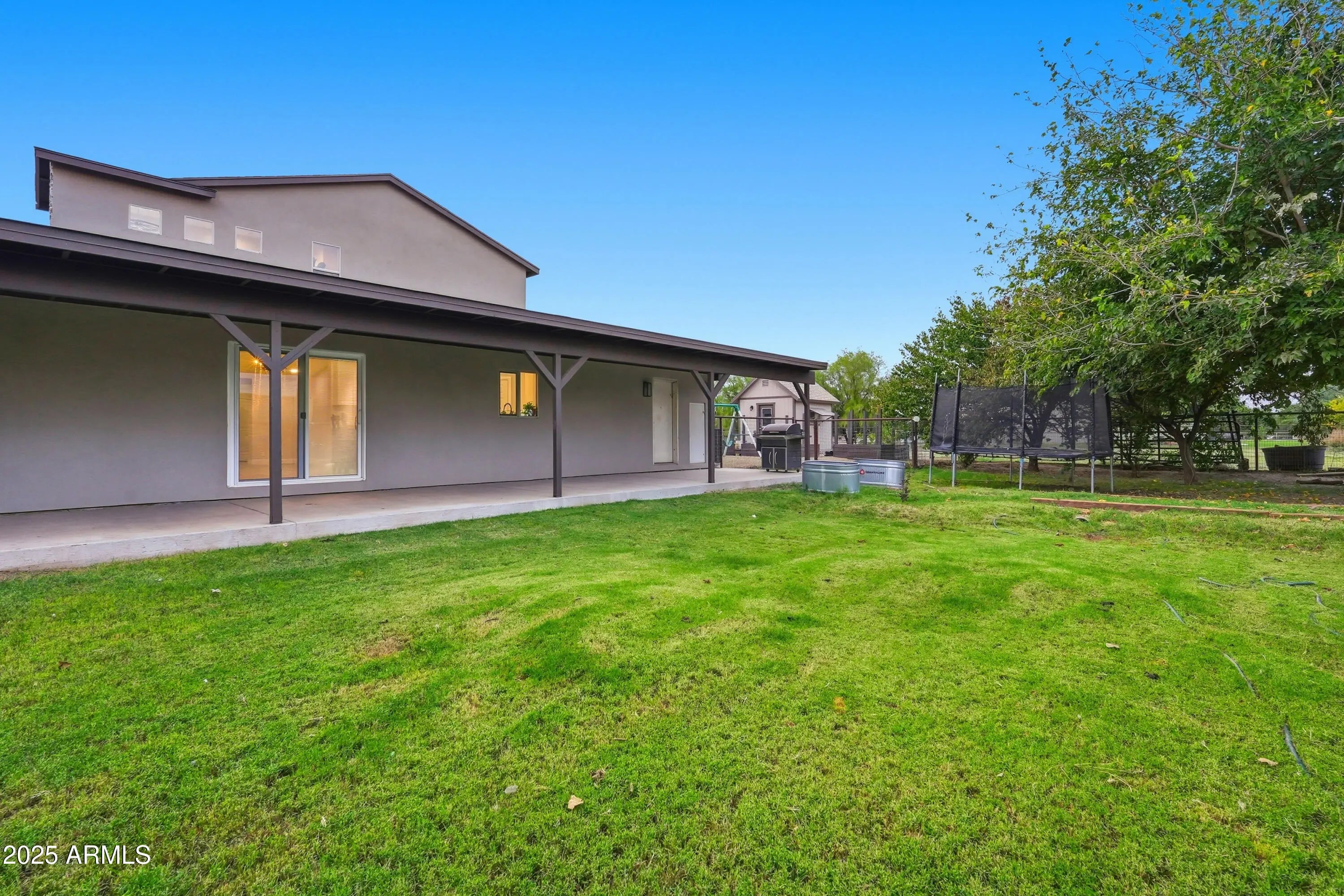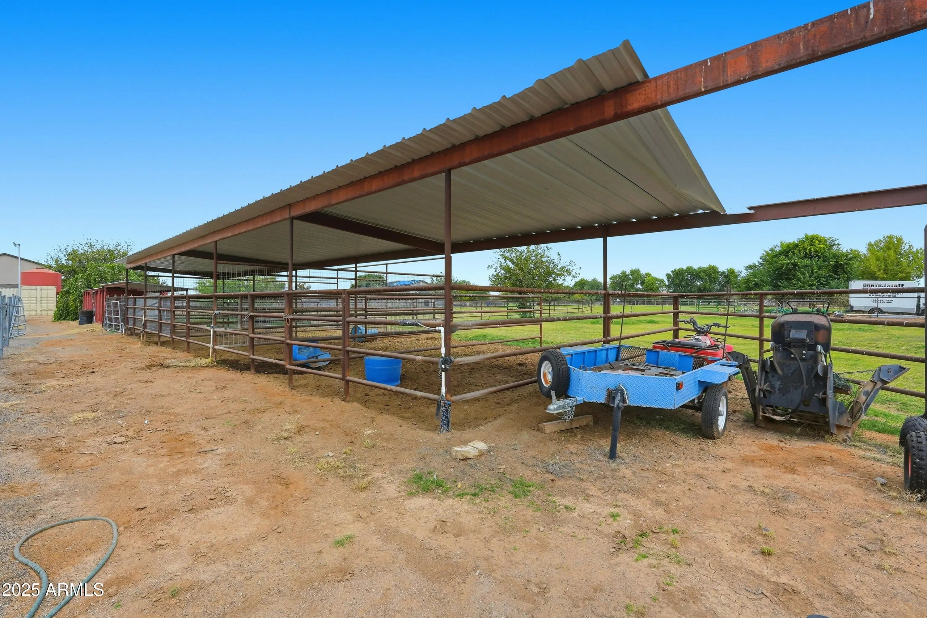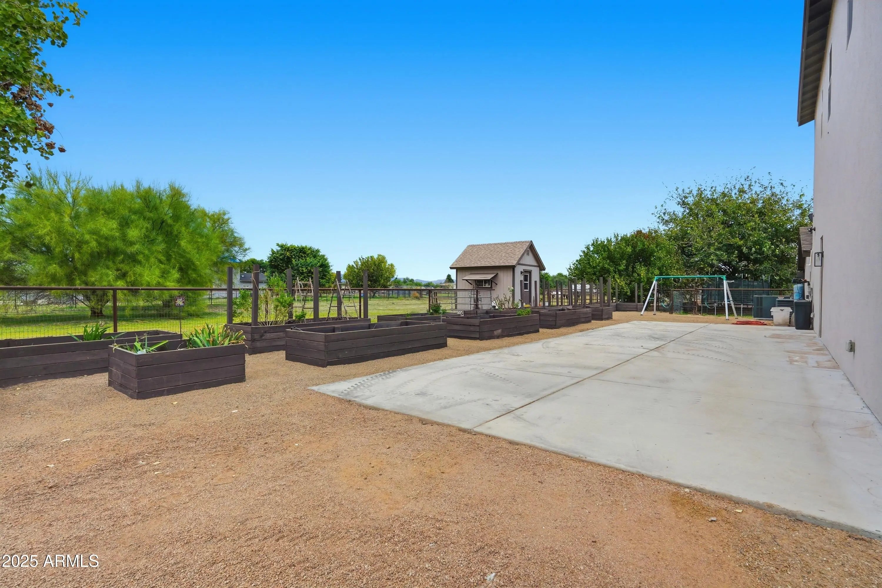 The perfect blend of fine living and true country charm on this exceptional 3.33-acre horse property. Thoughtfully designed and impeccably maintained, this property offers over an acre of flood-irrigated, cross-fenced pastures—ideal for horses or livestock—plus a beautifully updated 5-bedroom home with two full master suites and four well-appointed baths. Step inside to a gorgeous recently remodeled kitchen featuring a 36'' gas range with convection oven, oversized sink, modern finishes, and plenty of workspace. The split floor plan provides privacy and multigenerational living options, while the relaxing primary suite includes dual sinks and two spacious custom his-and-hers closets. The home also features a safe/gun room, two laundry rooms, and an oversized 1,280 sq. ft. three car garage with a full chip epoxy floor and built-in cabinets. The property includes 10 stalls with direct pasture access, a 150' × 250' LED-lit roping arena, separate tack and feed sheds, automatic waterers, a 15-ton steel feed silo, wash rack, cattle and livestock pens, and even a 320sf chicken coop with fenced run. The garden area features a charming finished she-shed/artist studio, and extensive irrigated raised garden bedsperfect for gardening enthusiasts. Mature fruit trees are planted throughout the property. An RV pad with full hookups adds convenience to the avid traveler, or guests. Enjoy the peaceful rural setting that is still just minutes from schools, shopping, and dining.