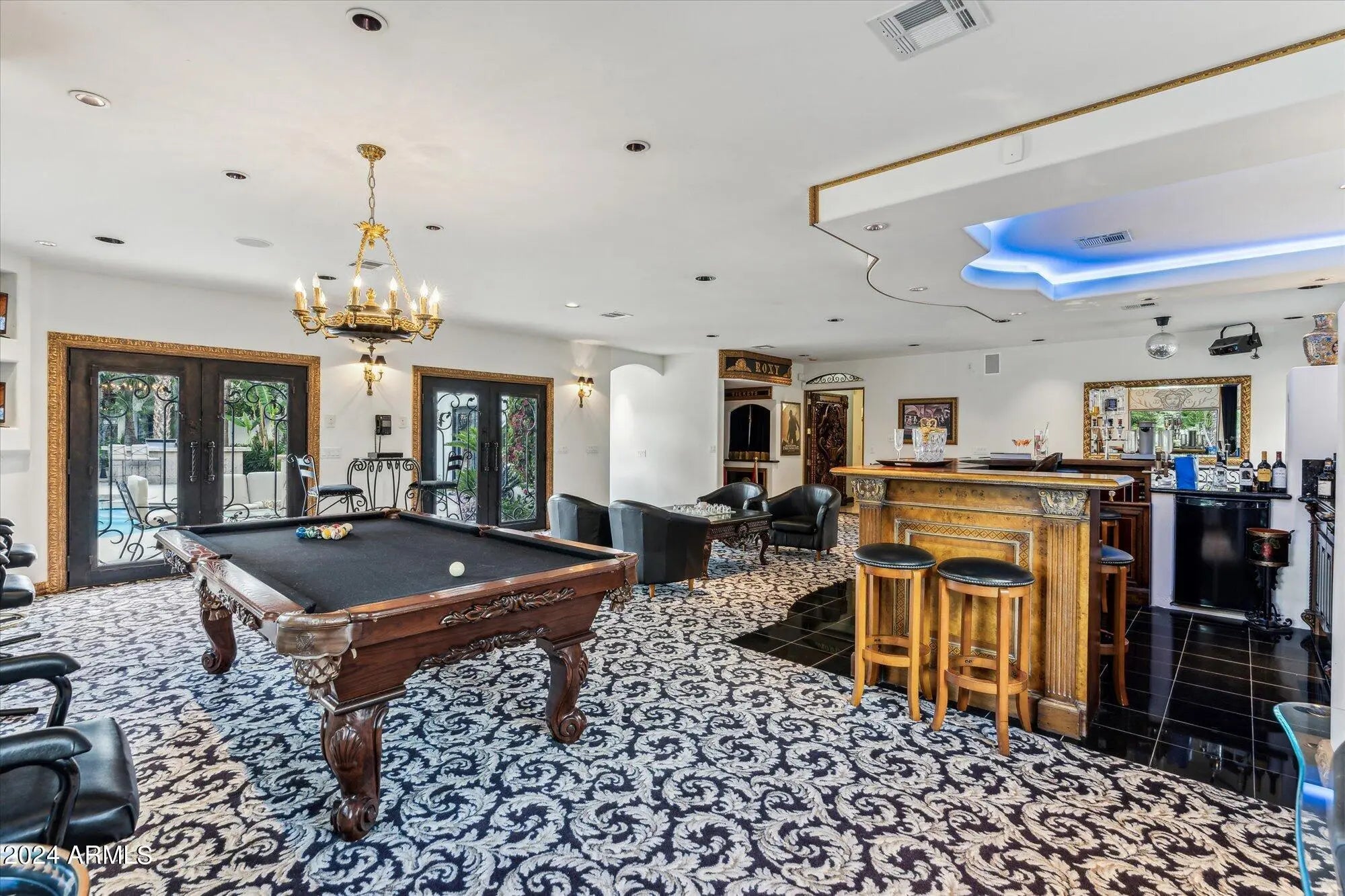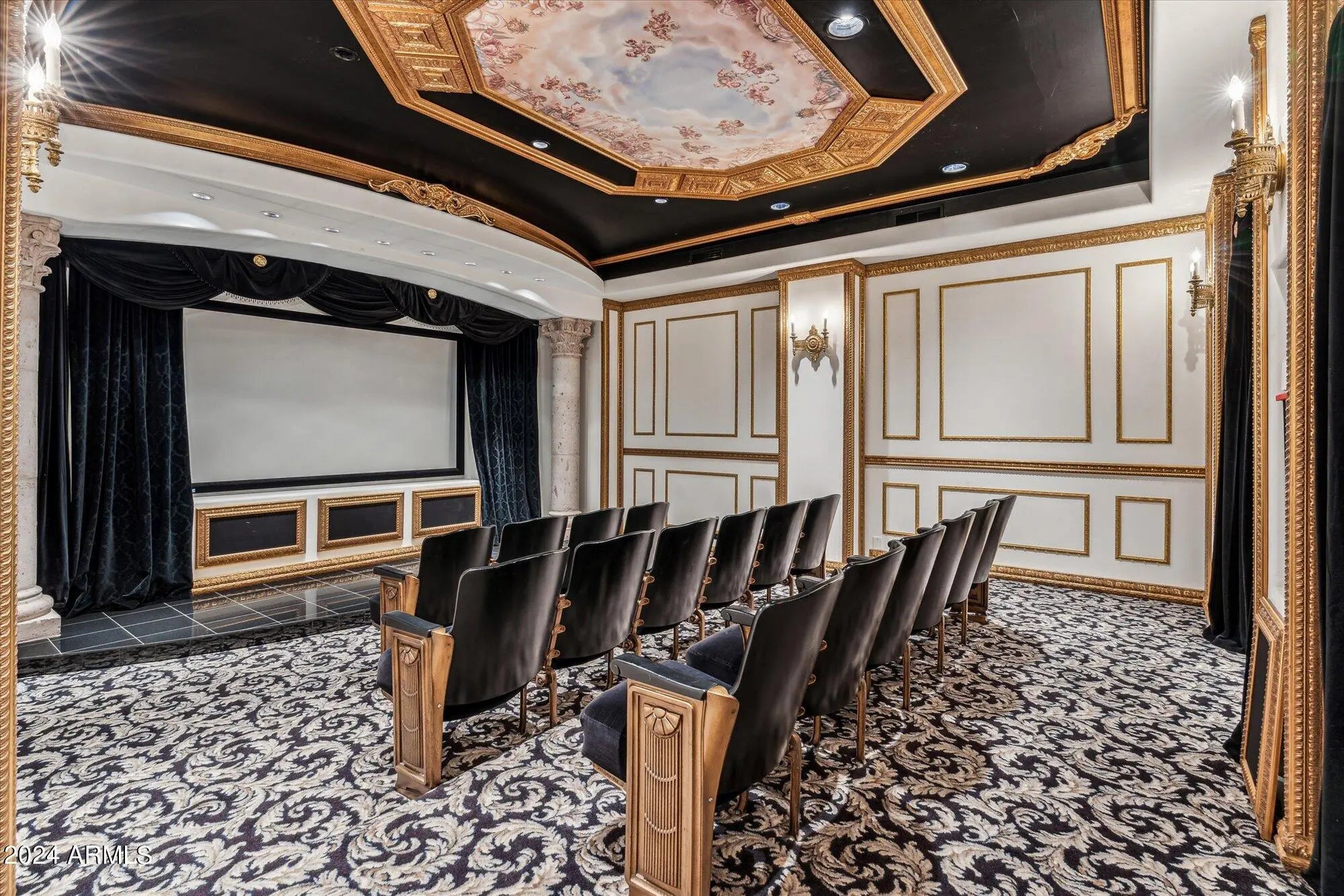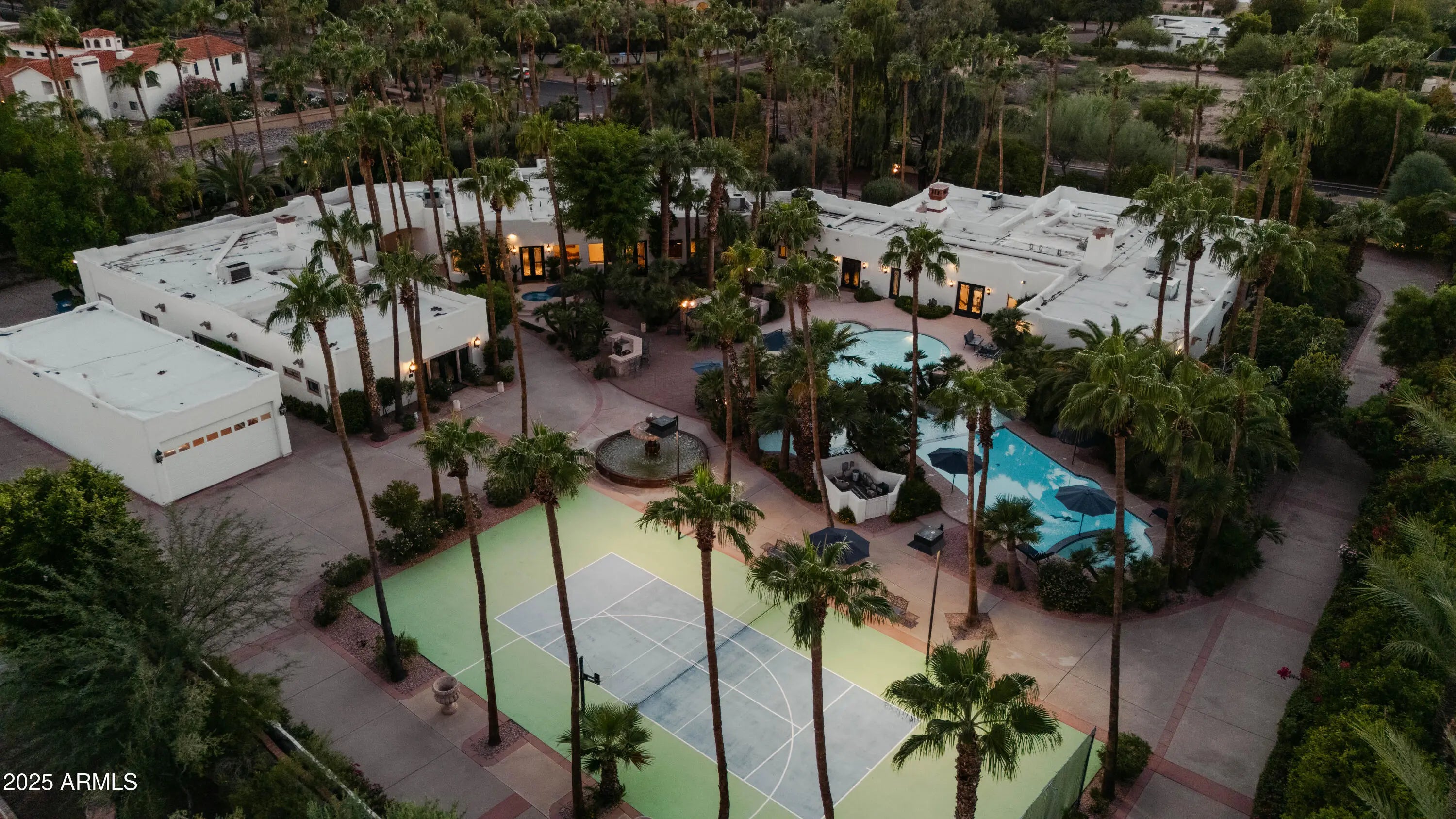 Resort-style, privately gated Paradise Valley estate on fully enclosed 1.74-acre lot. A 1/10-mile drive encircles 3 separate structures: main home, guest home & additional 6-car garage with RV drive-through. Designed for luxury, family living & large-scale entertaining - has flexibility for multigenerational living, guests/staff or studio space. The 4bd/6ba main home (9,100SqFt) features split primary wing, 3 ensuite bedrooms, office, theatre, 4-car attached garage, game room; enhanced by hand-carved doors, slab marble floors & chef's kitchen. The 5bd/5ba guest house w/ full kitchen & laundry room (3,100SqFt) expands living options. Resort amenities include 3 pools, spa, sauna, putting green, sport court, BBQ &10 fireplaces. This rare private compound is near Scottsdale dining & shopping.