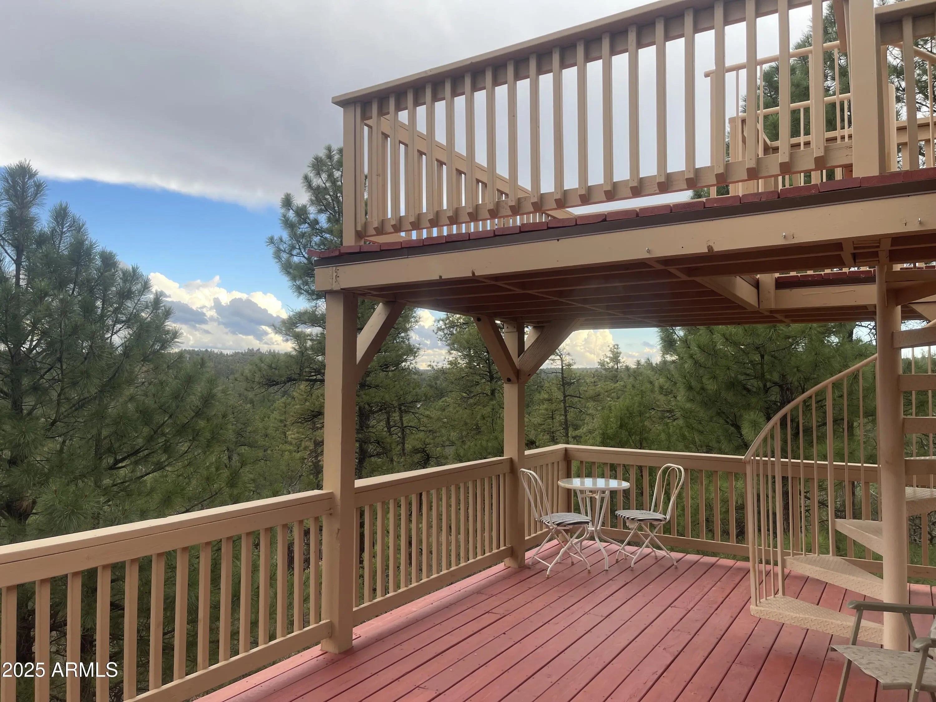 You're at the Top of the World in this Pine Oaks Stunner. Enjoy a Birds Eye View of The White Mountains from the Two Full Length Decks or Even Better, climb up to the Crows Nest and Have Your Head in the Clouds...Located on a Tall Pine Covered .55 of an acre, in the Fire Safe, Gated, Pine Oaks Community, this 5 bed 4 bath Home could Easily be used as TWO SEPARATE HOMES. The 2,573 sf First Floor, has 3 Large Bedrooms, 2.5 Baths, Great Room, Formal Dining, Office & Laundry...head Downstairs to the 1,757 sf Guest Quarters with a 30'x27' Great Room, 2 More Bedrooms & a Lovely 3/4 Bath. Both Levels Enjoy Full Length, Expansive Patio & Decks with Two 200 Gal Water Storage Tanks fed by the Gutter System. The Triple Garage also has an 800 Gal Water Tank & Space Originally Designed for an Elevator