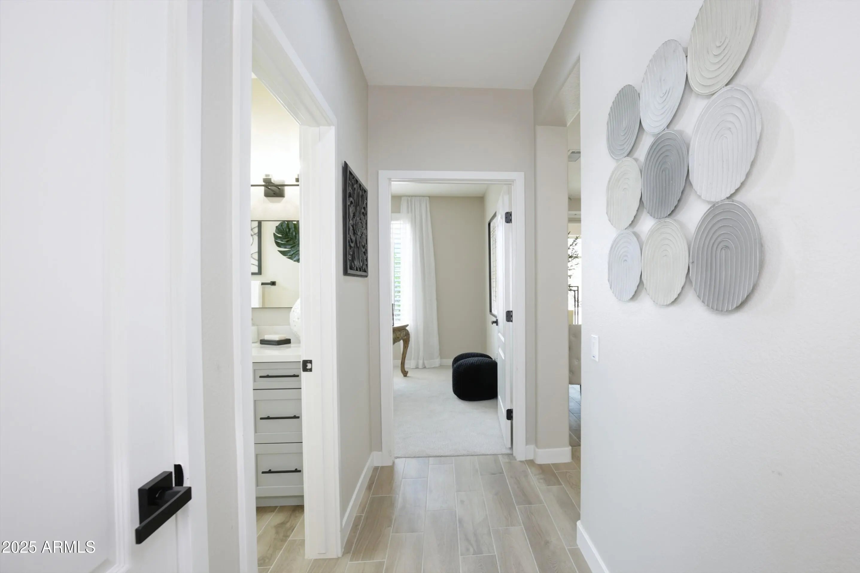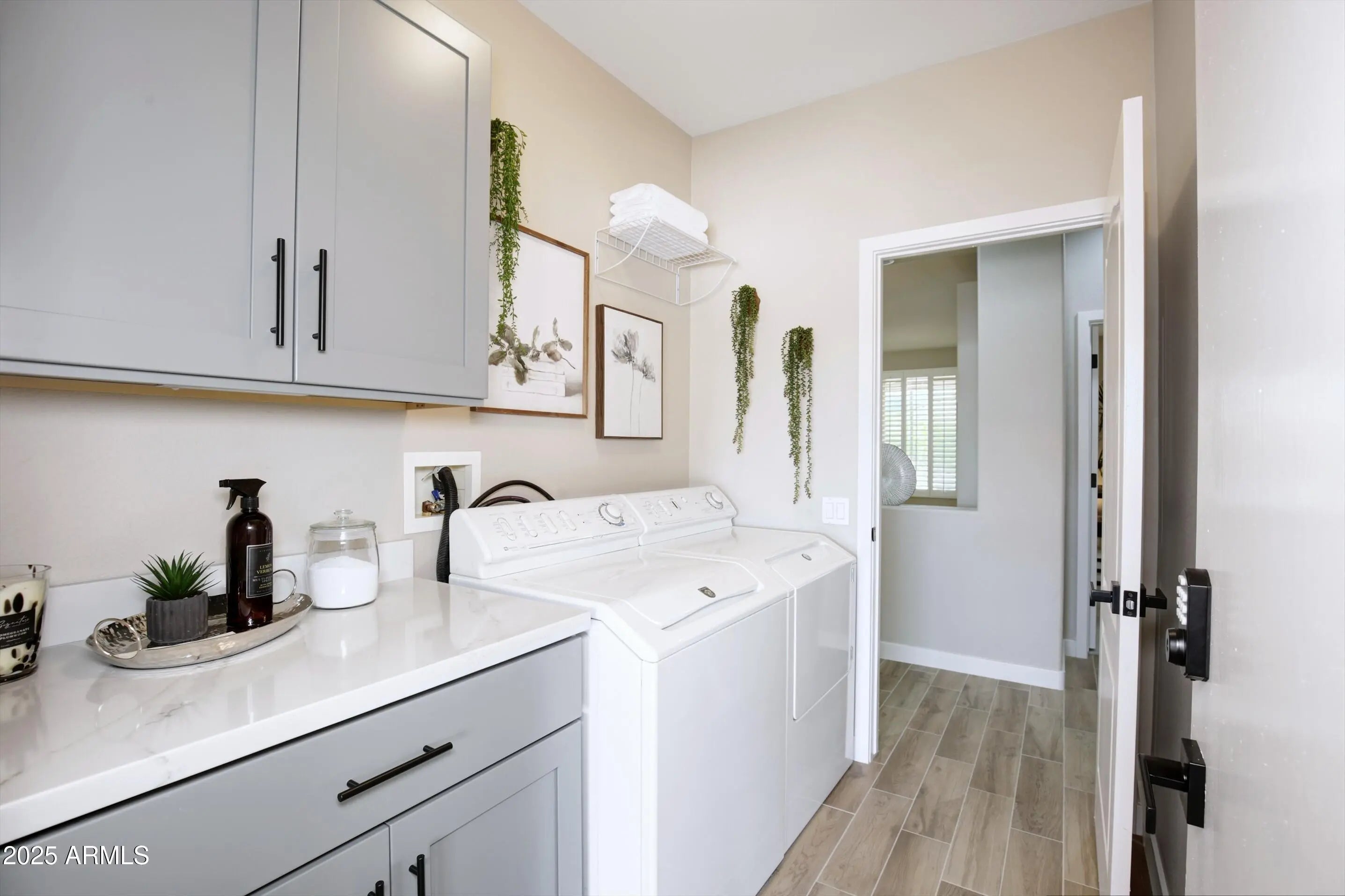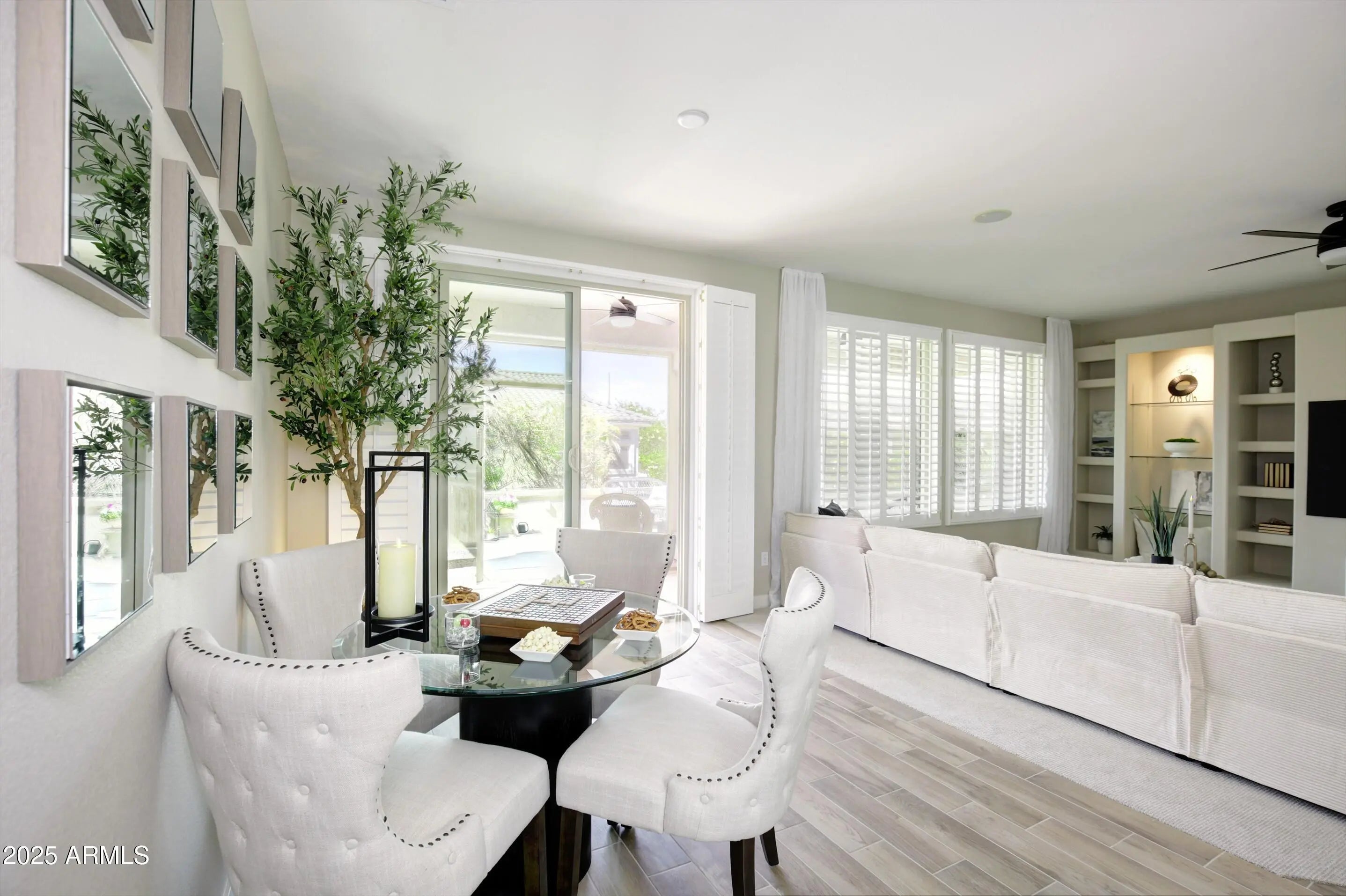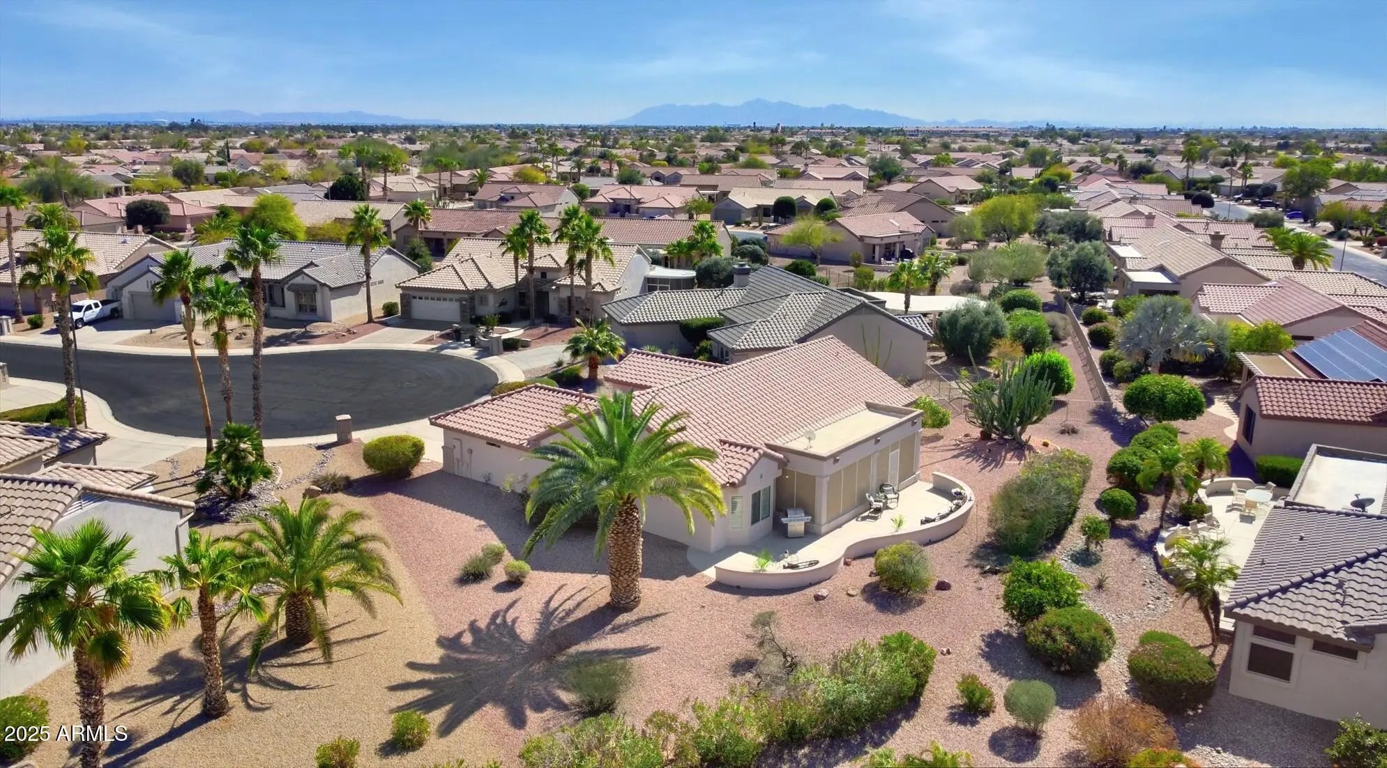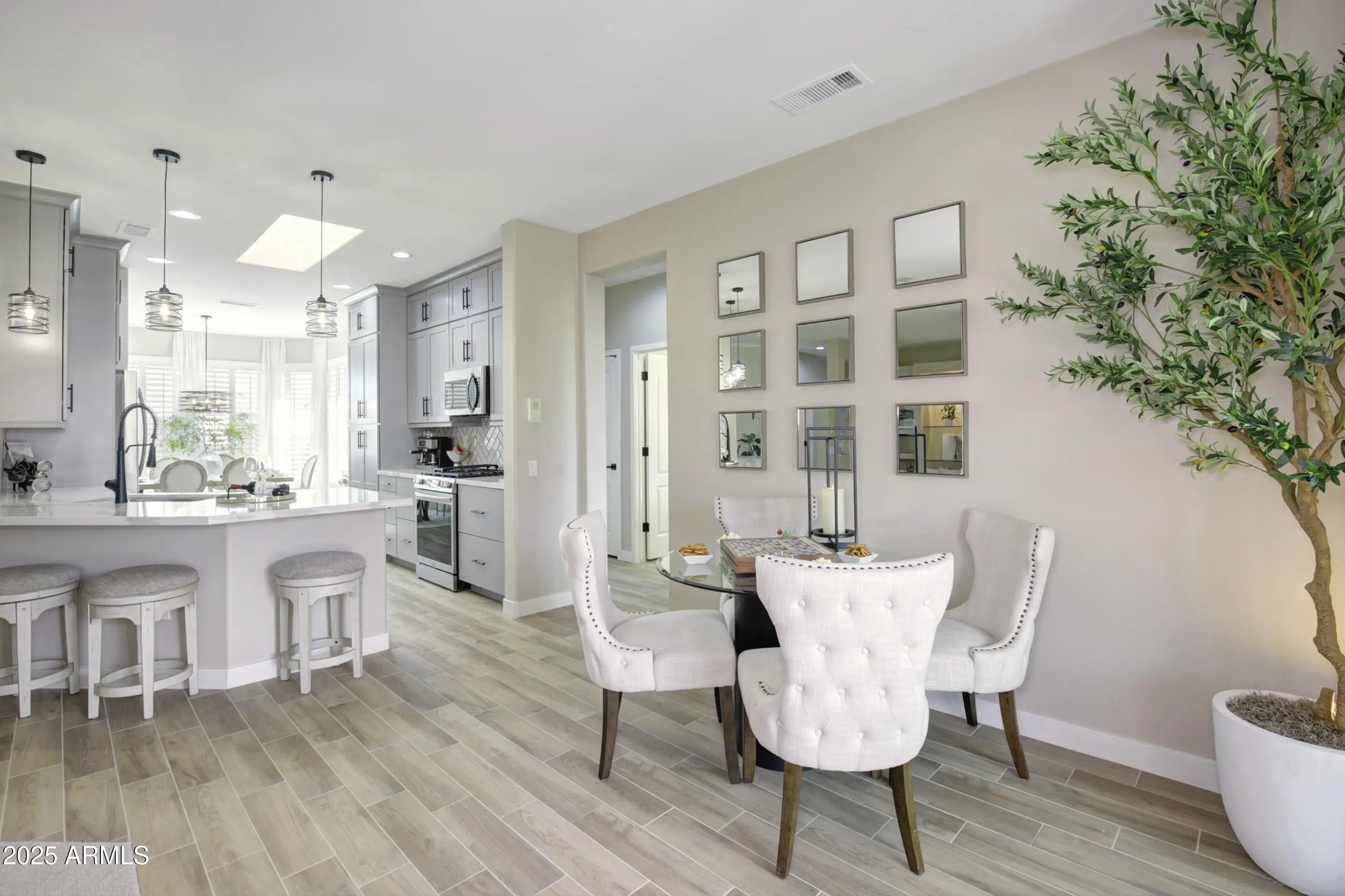 Winner of Best Home on Tour! Modern luxury meets resort living in this beautifully redesigned home in The Grand. It sits on a quiet cul-de-sac in this desirable 55+ community and offers 2 bdrms, 2 baths, plus a versatile den ideal as an additional guest room or office. Updates include luxury flooring, fresh interior paint, designer lighting, and a screened Arizona room for year-round enjoyment. The chef's kitchen (2024) features quartz countertops, custom cabinetry, brand-new stainless steel appliances, and gas cooking. Spa-inspired baths (2024), new windows (2024), plantation shutters (2024), and a concrete tile roof (2020) complete this exceptional home. Close to championship golf, shopping, dining, clubs and resort-style amenities just minutes from your door. This beautifully redesigned residence reflects a thoughtful approach to modern luxury, with extensive upgrades completed in 2024 that elevate both comfort and design. Located on a quiet cul-de-sac within The Grand, the home offers privacy, quality craftsmanship, and effortless resort-style living. A concrete tile roof installed in 2020, complete with a transferable warranty, provides long-term durability and peace of mind. Inside, new vinyl windows (2024) enhance energy efficiency while filling the home with natural light. Bay windows in the primary suite and dining area add architectural character and create bright, inviting spaces. The kitchen has been fully reimagined in 2024 as a chef's kitchen, thoughtfully designed for both performance and style. Quartz countertops, custom cabinetry, a gas range, and brand new, never-used stainless steel appliances create a refined space ideal for cooking, entertaining, and everyday living. Skylight, clean lines, quality materials, and intentional design choices make this kitchen a true centerpiece of the home. Both bathrooms were completely remodeled in 2024 with modern finishes and thoughtful design. The primary ensuite offers a spa-inspired retreat, featuring dual vanities, skylights, and a gorgeous walk-in shower with four shower heads for a true luxury experience. Throughout the home, new tile and new carpet (2024), plantation shutters, and designer lighting create a cohesive, polished aesthetic. Smart-home features including a smart lock, video doorbell, and smart thermostat add convenience and modern functionality. The screened patio extends the living space, offering shaded areas ideal for outdoor dining, relaxing evenings, or enjoying Arizona's beautiful weather. The two-car garage includes built-in storage cabinets, providing both practicality and organization. Beyond the home, The Grand delivers an exceptional lifestyle. Residents enjoy four championship golf courses designed by Billy Casper and Greg Nash, a driving range, and a wide range of recreational amenities. The community features two full fitness centers, indoor and outdoor lap pools, dance and fitness classes, craft studios, pickleball, tennis, and an extensive variety of clubs and social activities. Whether enjoying a morning round of golf, an afternoon class, or an evening social event, The Grand isn't just a community it's a lifestyle.