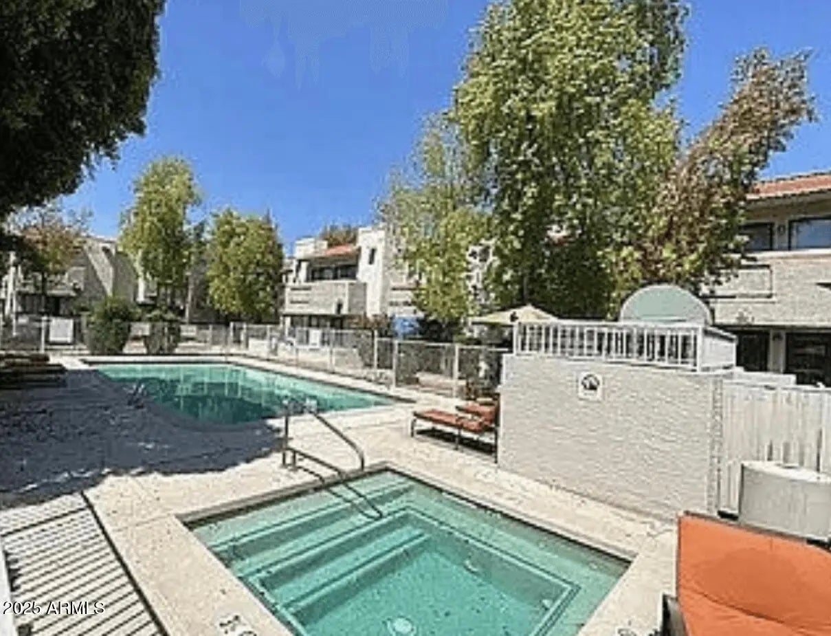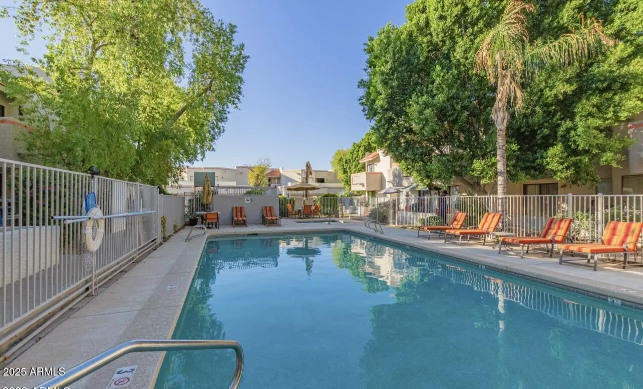 Impeccably upgraded and professionally decorated. Available turnkey — just bring your suitcase! Scottsdale gem with backyard paradise + rare 1 car garage! Professionally curated finishes and design elements elevate every space, blending style & comfort effortlessly. Inside enjoy 2 spacious bedrooms, 2.5 stylish bathrooms and an inviting living area. The primary suite has been thoughtfully customized with unique designer touches making it unforgettable. NEW A/C, Hot Water Heater, refrigerator , dishwasher, garage door opener w/security camera and more. Amenities include a pool, spa, and walking paths, offering the perfect blend of comfort and convenience.