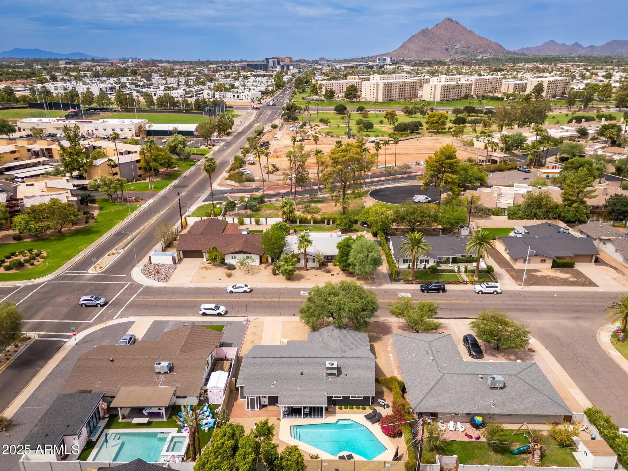 Charming Old Town Scottsdale Home in a Highly Desirable Location! Light and bright 3 bdrm/2 ba floor plan with upgrades including plantation shutters, updated flooring, fixtures, neutral two-tone paint, and a new A/C + ducting (2021). Gourmet kitchen features abundant custom cabinetry, quartz counters, stainless appliances, breakfast bar & backsplash, with inside laundry & built-in cabinets nearby. Backyard oasis offers an 8-ft diving pool, covered patio with exterior lighting & sun shades—perfect for relaxing or entertaining. Primary suite includes an upgraded en-suite bath. No HOA and eligible for short-term rental use such as Airbnb or VRBO! Prime location near Camelback Park, Chaparral Lake, and Old Town Scottsdale's shops & dining! See upgrade list in documents.