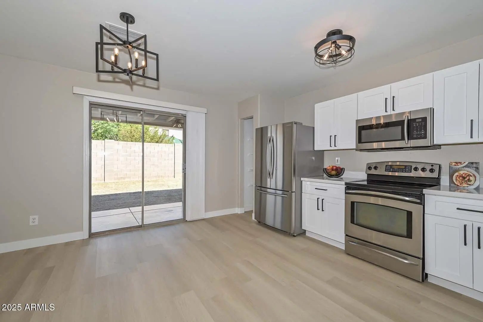 Fantastic remodeled home with 3 bedrooms and a den (easily converted into a bedroom by adding doors and a closet). All NEW KITCHEN AND BATHROOMS!!! White shaker style cabinets and white quartz countertops. All new stainless steel appliances. Open GREAT ROOM floor plan. FRESH COAT OF I NTERIOR PAINT. Luxury light oak Vinyl flooring throughout. Ceiling fans in all living spaces. Generous size laundry room. Water softener. Large covered patio. This home sparkles and is super clean. Easy to show. Don't wait too long to see it, because homes like this one don't last long on the market.