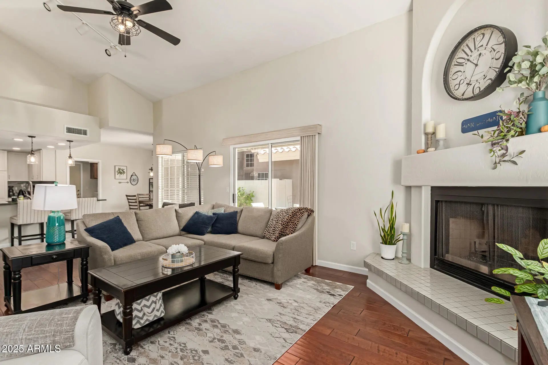 Beautifully maintained, NEW ROOF, newly painted, move-in ready home in the desirable Lakewood community of Ahwatukee! Enjoy access to a private fishable lake, nearby hiking, biking, and two golf courses. The open floorplan features vaulted ceilings, an updated kitchen with granite counters and newer appliances, plus a Great Room with hand-hewn wood floors and a cozy fireplace. Split primary suite for privacy, spacious den, and low-maintenance yard with turf and covered patio. Front yard care included with HOA. Come see this Lakewood gem today!