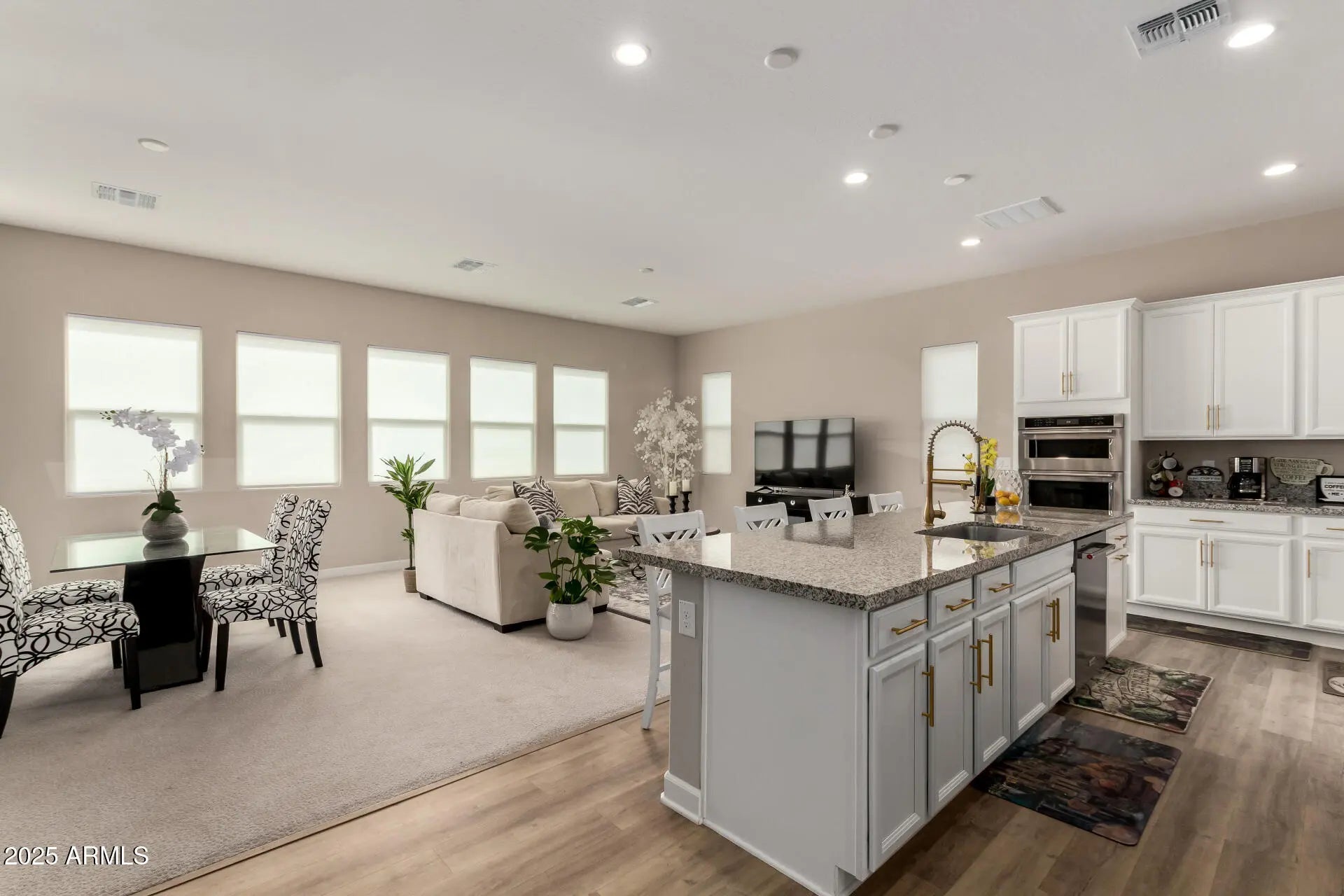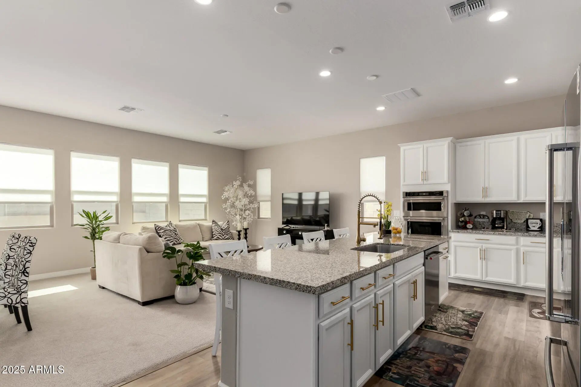 A STUNNING, AWARD-WINNING TOLL BROTHERS MODEL HOME. THIS RESIDENCE FEATURES 3 SPACIOUS BEDROOMS AND 2.5 BATHS. IT INCLUDES A 3-CAR GARAGE WITH A SEPARATE BAY AND GARAGE OPENER, COMPLETE WITH EPOXY FLOORING: RING DOORBELL, DIGITAL ENTRY LOCK. THE OPEN AND LIGHT-FILLED FLOOR PLAN IS IDEAL FOR ENTERTAINING. THE UPGRADED WHITE 42-INCH CABINETS, ADORNED WITH GOLD HARDWARE, COMPLEMENT THE MATCHING FAUCET IN THE STAINLESS-STEEL SINK. ENJOY EASY MAINTENANCE WITH LUXURY PLANK FLOORING. THE KITCHEN BOASTS GRANITE COUNTERTOPS, SEPARATE TRASH AND RECYCLING BINS, AND CONVENIENT PULL-OUT DRAWERS. ALL UPGRADED KITCHEN AID APPLIANCES AND A KITCHEN AID FRIDGE WITH WOOD GRAIN. THE HOME HAS IMPRESSIVE 10-FOOT CEILINGS AND 8-FOOT-TALL, SIX-PANEL DOORS. THE LAUNDRY AREA HAS AN LG WASHER, DRYER, AND CABINETS