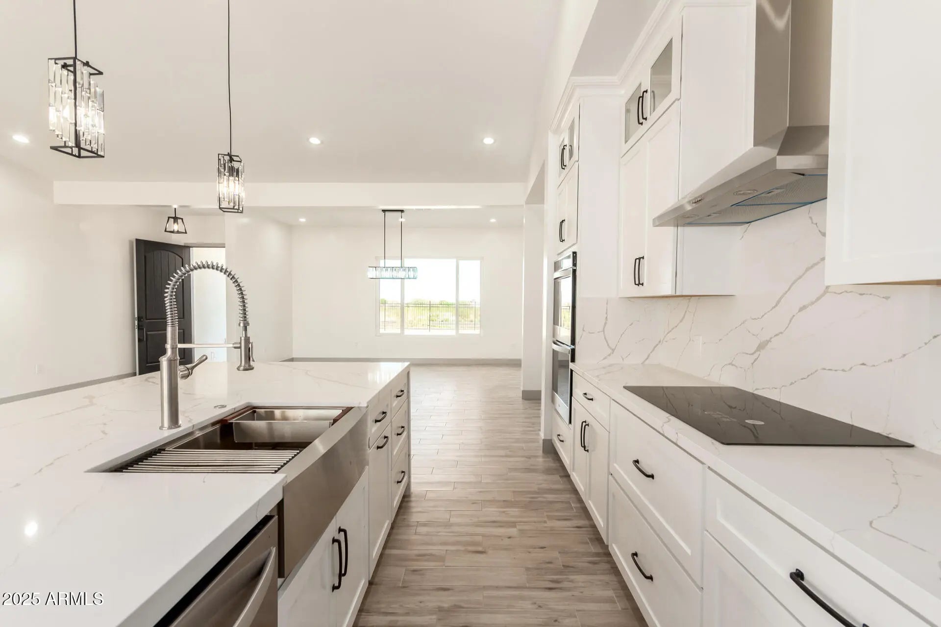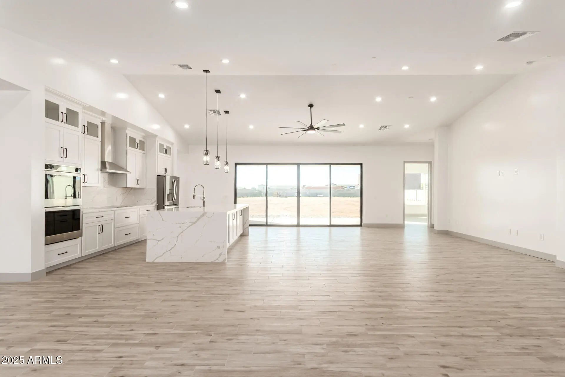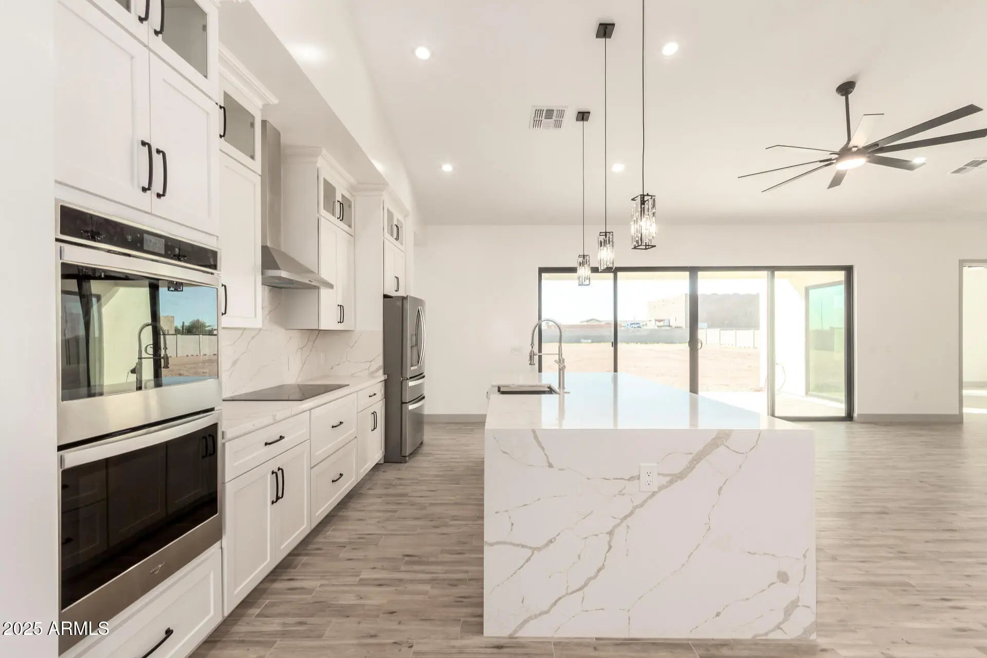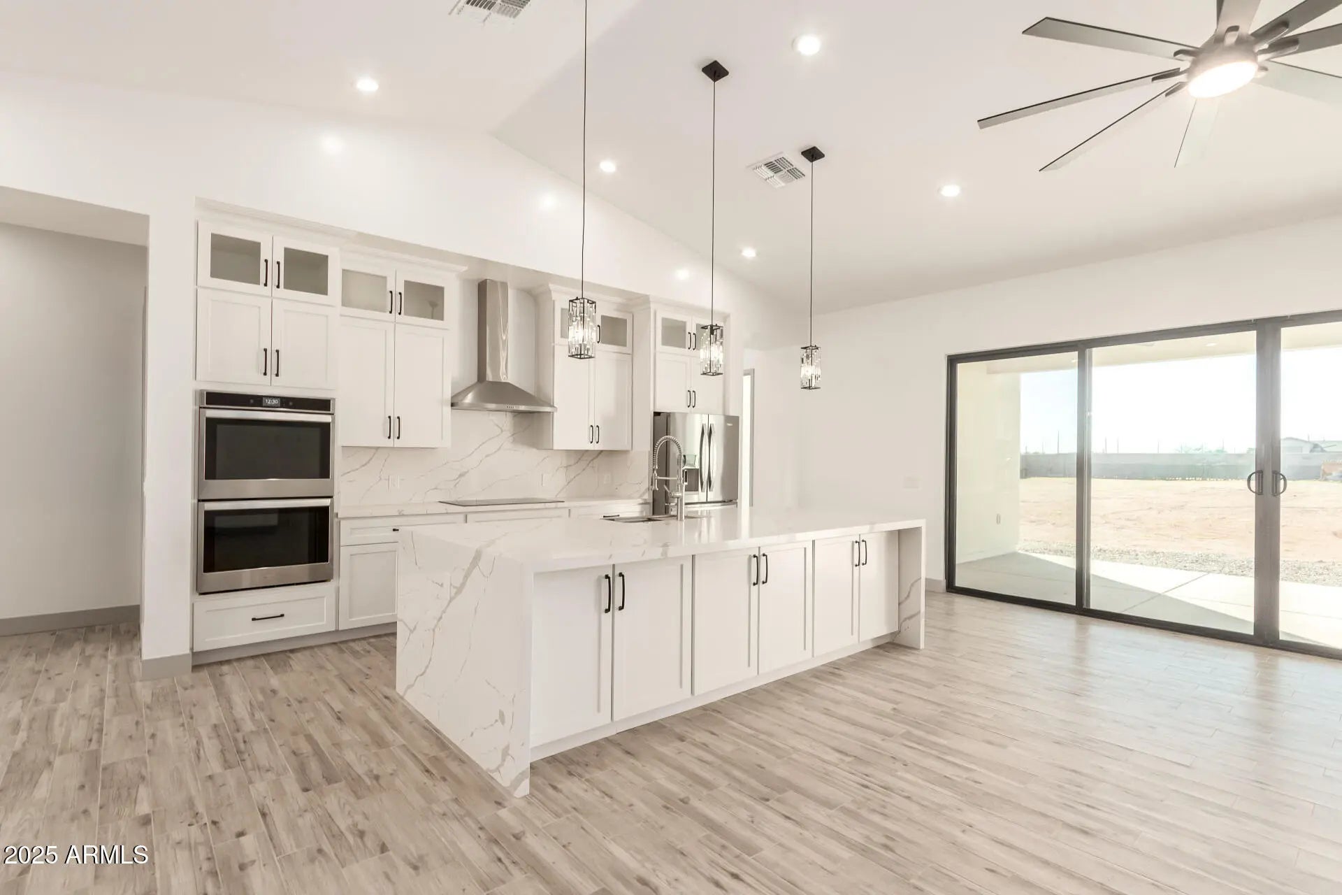 Fantastic opportunity to own this newly constructed home on a sprawling 1-acre lot! This fully-fenced property welcomes you with breathtaking mountain views, a 3-car garage, an 2 RV gates, a low-maintenance yard, and an inviting front patio. Fall in love with the captivating open layout with soaring vaulted ceilings, recessed lighting, a soothing palette, attractive wood-look flooring, and a dry bar for entertaining. The stunning kitchen features quartz counters with a matching backsplash, crisp white cabinetry, chic pendant lighting, stainless steel appliances, and a large island with a breakfast bar for casual dining. The primary bedroom boasts sliding door access to the backyard, an ensuite with double sinks, and a spacious walk-in closet for an organized wardrobe.