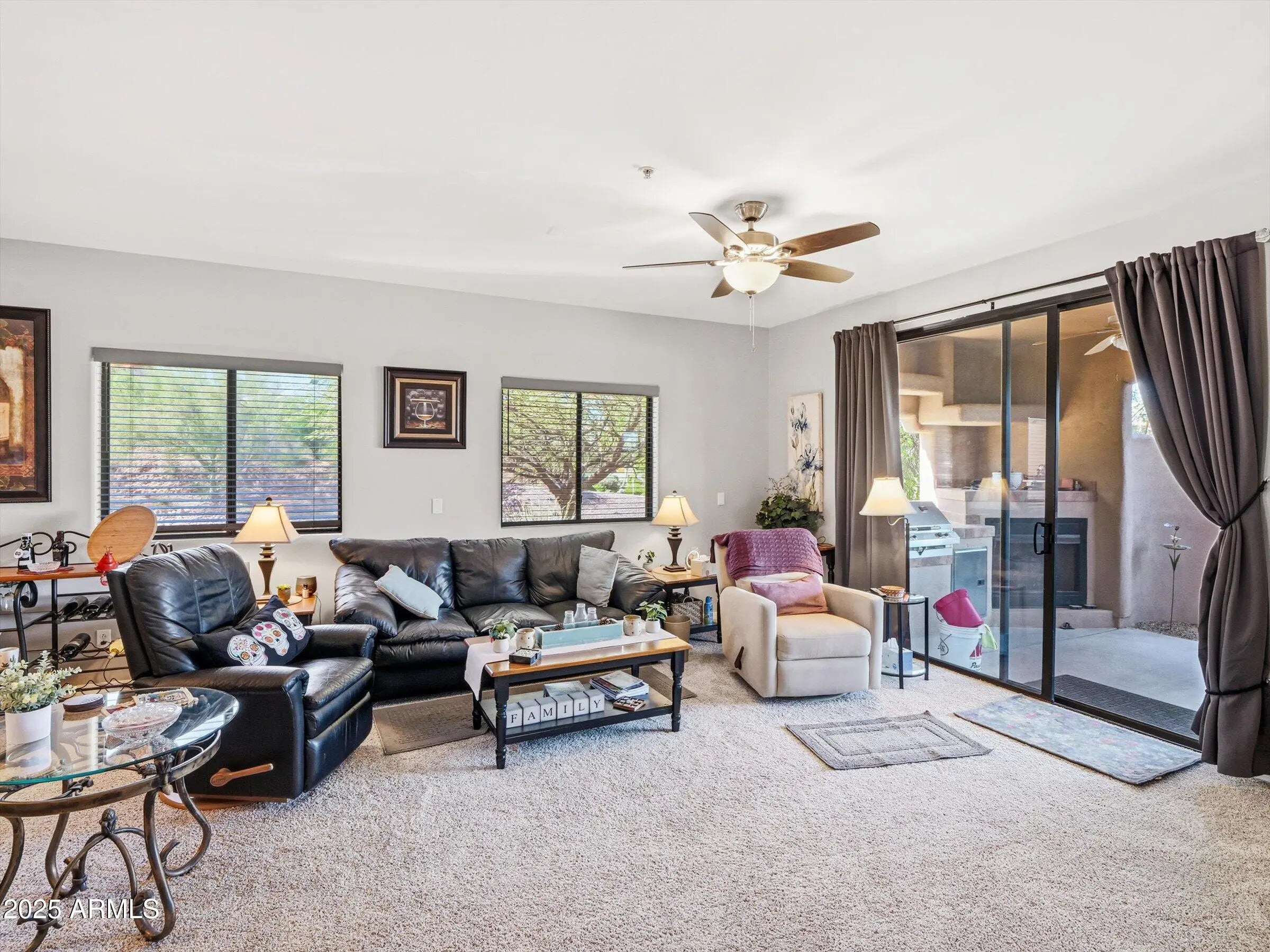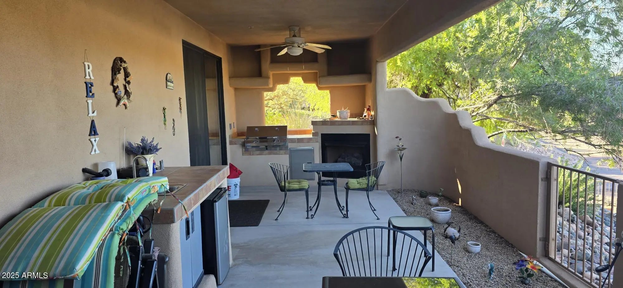 First-Floor Furnished Resort-Style Condo - Move-In Ready! Beautifully maintained, furnished, first-floor condo with close access to all that Fountain Hills has to offer. Enjoy stunning mountain views and resort-style living in this turnkey home. This spacious 1,460 sq. ft. residence features an open floor plan, split master design, and large covered patio perfect for relaxing or entertaining. The eat-in kitchen offers granite countertops, a large pantry, and ample storage. The primary suite provides direct access to the patio with an outdoor fireplace, built-in BBQ and sink. Including a private garage, carpet and tile flooring, and access to a well-maintained resort-style community featuring a heated pool, spa, and gazebo. Ideal for year-round living. Walk to Desert Canyon Golf Course. seasonal visitors, or a vacation retreat. With the exception of a few pieces, the condo comes fully furnished.