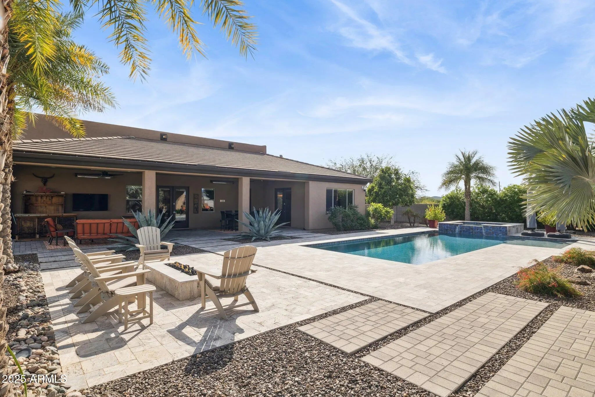 Stunning remodel! Amazing exterior! Sparkling pool and spa! RV Garage with temperature controlled shop/office! 1248 square foot guest house (included in total square footage) with separate bedroom, full bath, kitchen and family room! One acre lot! Over $500,000 in updates and upgrades inside and out of this beautiful home. Totally reimagined kitchen with all new cabinets, breakfast bar and island with beautiful quartzite countertops throughout, and expanded walk in pantry. Top of the line GE Monogram appliances ,including 48''range with double oven, grill, griddle, and 4 large gas burners. Custom wood wrapped range hood. Enormous hand-made farmhouse sink. Separate island with second prep sink. Large eating area with expanded cabinets and additional countertop space. (read more) Kitchen opens to great room/family room with fireplace. New wall of windows leads out to your backyard paradise with resort-like grounds and outdoor features! Custom designed outdoor kitchen with extra storage and built in BBQ, large play pool, spa, putting green with lighted holes, additional turf area, fire pit, and lots of covered patio space. You'll never want to leave! Back inside the home, you will find 4 bedrooms, 3 full baths, an office and a temperature controlled 150 bottle wine room. New luxury vinyl flooring in main home. The primary bath is luxurious and totally redone with large format porcelain tile surround in the shower, quartz countertops, custom wood cabinetry and updated mirrors, lighting and fixtures. The walk in closet has been expanded and closet system installed. On top of all of this, there is the 1248 square foot guest house with large covered patio space. Over $80,000 in landscape design, plantings, pavers, lighting, fans and gutters! Owned solar - main house and pool. A full list of upgrades and updates can be found in the documents section of the listing. Most furniture available under a separate bill of sale. This stunning home is located close to shopping, restaurants, medical and the huge employment corridor at TSMC.