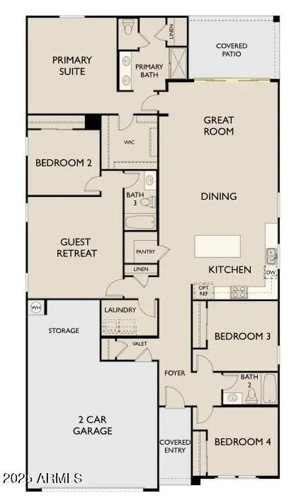 Welcome to Stonebridge Manor - Waddell's Premier New Community Discover the exceptional Lavender floor plan, offering 2,222 sq. ft. of thoughtfully designed single-story living that beautifully balances comfort, style, and functionality. This elegant home features four spacious bedrooms, three full bathrooms, and a guest Retreat providing the perfect layout for families, guests, or entertaining. The charming Farmhouse-style exterior showcases a paver driveway and 2.5-car garage, creating an inviting first impression. Inside, the chef-inspired kitchen is the true centerpiece of the home. Part of our Oxford Collection, it features sleek Espresso 42'' shaker cabinets, a striking 2 x 10 tile backsplash, and elegant Carrara Breeze quartz countertops. Pre-wired pendant lighting above the large island allows for easy customization, while GE stainless steel appliancesincluding a range, microwave, dishwasher, and side-by-side refrigeratoradd both sophistication and practicality. The thoughtful design continues throughout the home, with quartz countertops in all bathrooms, stylish Black Bronze hardware, and plush carpeting in the bedrooms for added comfort. Durable 8" x 36" wood-look plank tile runs through the main living areas, offering both beauty and easy maintenance. With 9-foot ceilings and 8-foot doors, the open layout feels spacious and inviting. A 4-panel center sliding glass door in the great room opens to the backyard, seamlessly blending indoor and outdoor livingperfect for relaxing or entertaining. Additional features include a washer and dryer, garage door opener, and a soft water loop, making this home truly move-in ready. Experience the perfect blend of modern elegance and everyday comfort in the Lavender plan at Retreat at Stonebridge Manor.