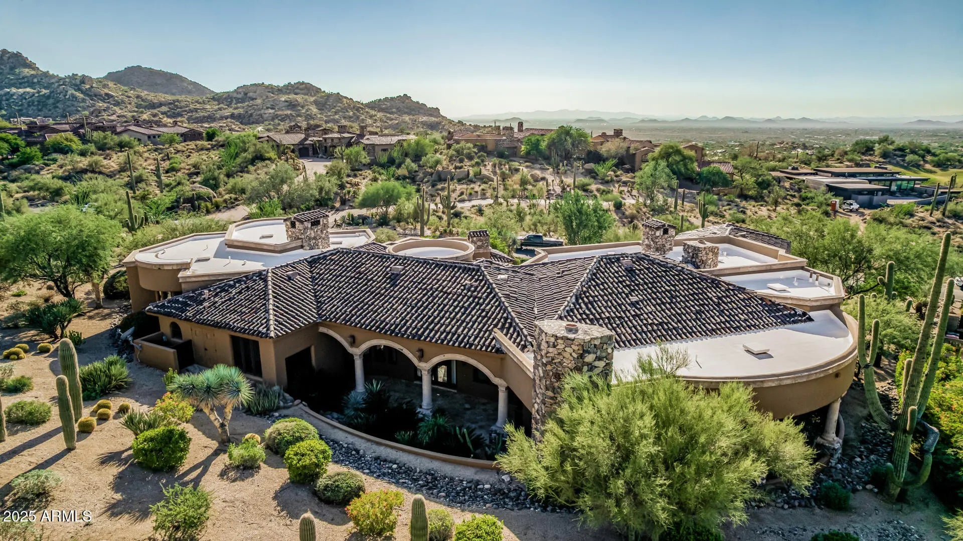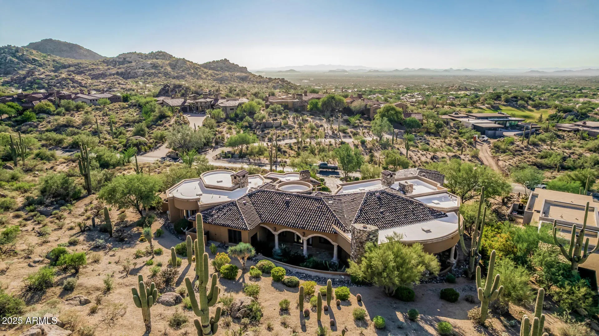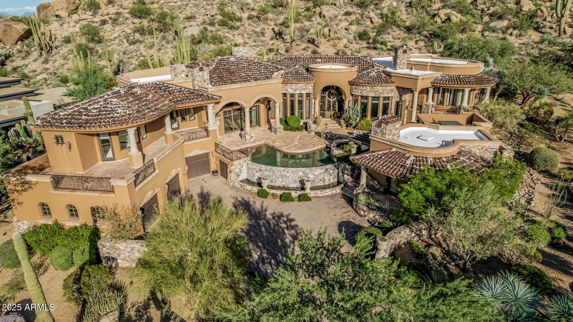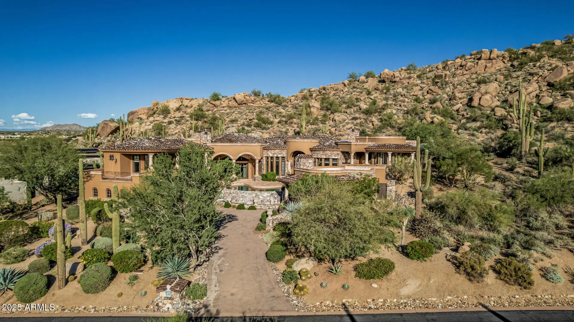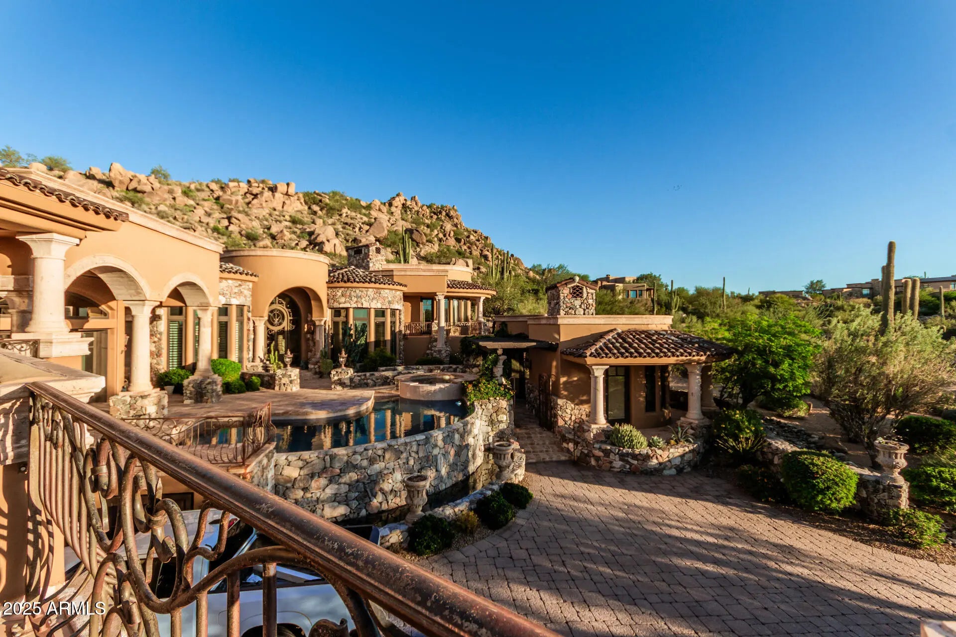 **FULL GOLF MEMBERSHIP available**subject to board approval. A Masterpiece of European Elegance in the Prestigious Guard-Gated Community of Estancia! Surrounded by sweeping panoramic mountain & desert vistas, this residence captures the essence of refined luxury living in Scottsdale's most coveted enclave. Perched majestically on an elevated hillside lot, this custom estate features wood plank & antique terra cotta flooring, mosaic inlay tiles, multiple fireplaces, wine cellar, wood beams, & solid wood doors. Disappearing slider doors lead to a large patio with negative edge pool & spa. The residence features 3 spacious bedrooms, executive office, gourmet kitchen, and separate guest house. Multiple patios surround the home making it perfect for entertaining.
