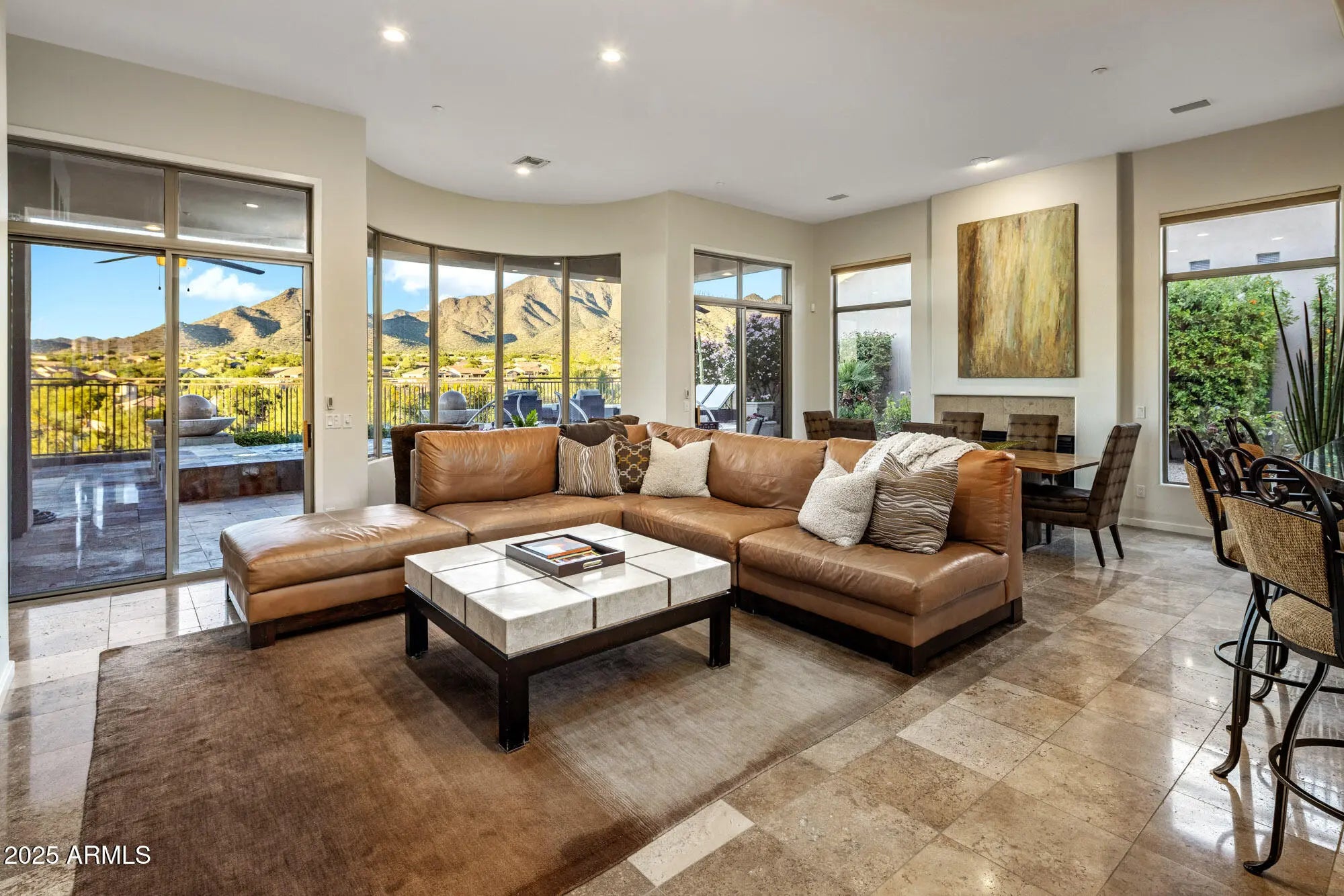Located within prestigious guard gated Cimarron Hills in McDowell Mountain Ranch, this stunning, meticulously maintained home captures breathtaking mountain views from nearly every room. Open, light filled floor plan w/soaring ceilings & seamless indoor/outdoor living. The well designed layout offers 3 spacious bedrooms, 3 full bathrooms, and a bright, inviting kitchen perfect for gathering & entertaining. Multiple sets of doors open to the expansive back patio, where a resort style outdoor oasis awaits. Enjoy an infinity edge pool, cozy fire pit, built-in BBQ, and a covered dining area that flows effortlessly from the kitchen, ideal for both casual evenings and grand entertaining. Perfect as a lock & leave getaway or a year round residence, this home offers the best of Scottsdale.