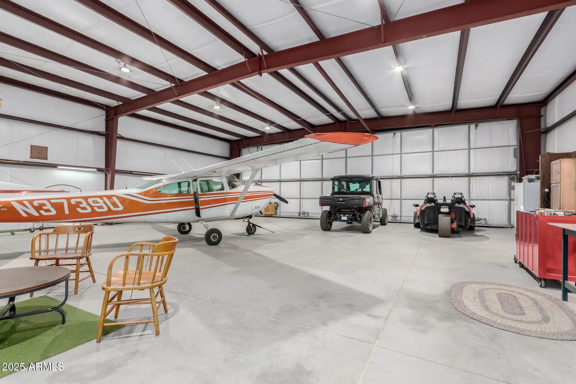 Our Preferred Lender is offering a 1-0 buydown on this property for qualified buyers! Experience true freedom and adventure with this exceptional 5.32-acre horse property in a premier airpark community. Enjoy stunning mountain views, wide-open space, and aviation convenience. The charming 3-bed, 2-bath home features comfortable living areas ideal for relaxation and entertaining. A 2-car garage plus RV garage provides plenty of room for storage and vehicles. Best of all—your own airplane hangar, large enough for two aircraft. One airplane is currently inside, and the owner is open to selling it along with a Can-Am and a Slingshot. A rare lifestyle opportunity you won't want to miss!