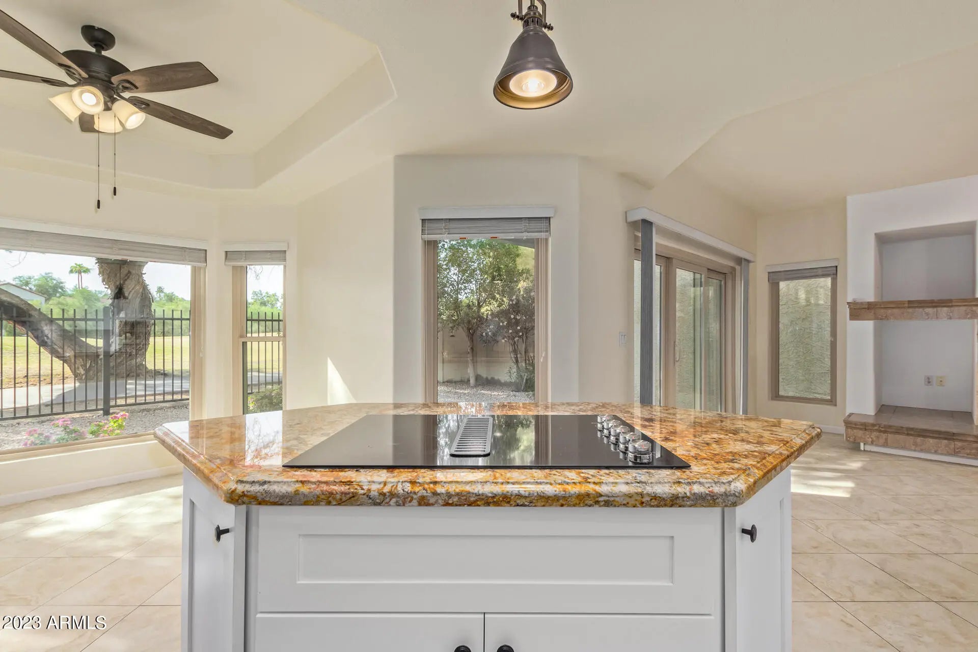 This beautiful home in Phoenix offers 4-bedroom and 3 full bathrooms! The home features a spacious living and dining area with high-vaulted ceilings and a charming fireplace. The eat-in kitchen is updated and features wood cabinetry, stainless steel appliances, and granite countertops. The master bedroom features soft carpet, an ensuite bathroom with dual vanities, a walk-in closet, and private access to the balcony. The other two bedrooms are also spacious and share a full bathroom. The backyard is perfect for relaxing or entertaining with a covered patio and picturesque golf course views. This home is located in a quiet neighborhood and is close to schools, shopping, and restaurants. It is also conveniently located near the I-10 freeway, making it easy to get around the city.