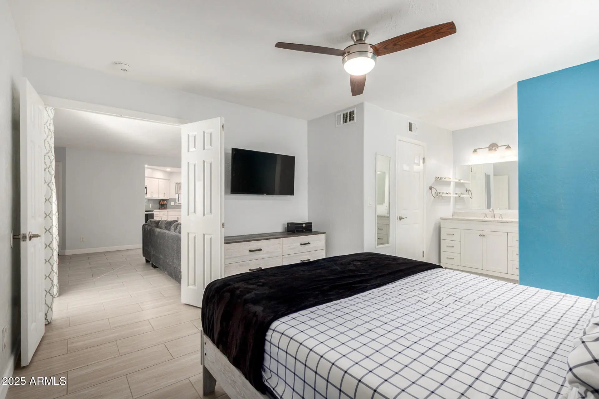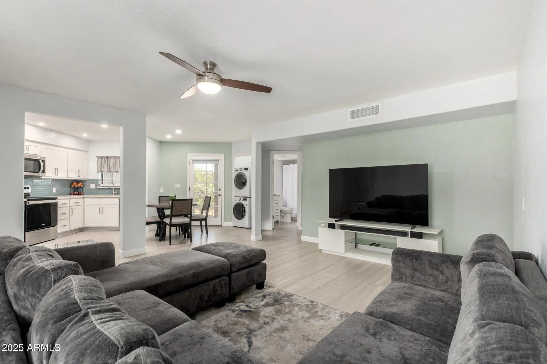 Move-in ready first-floor condo in a quiet, well-maintained community! This bright and open home features wood-look tile flooring throughout, stainless steel appliances, quartz countertops, and a stylish backsplash. The primary bedroom offers an ensuite bath and a spacious walk-in closet. Enjoy easy, single-level living with no stairs and great access to nearby shops, restaurants, and amenities. The complex also includes a refreshing community pool—perfect for relaxing and enjoying Arizona living at its best!
