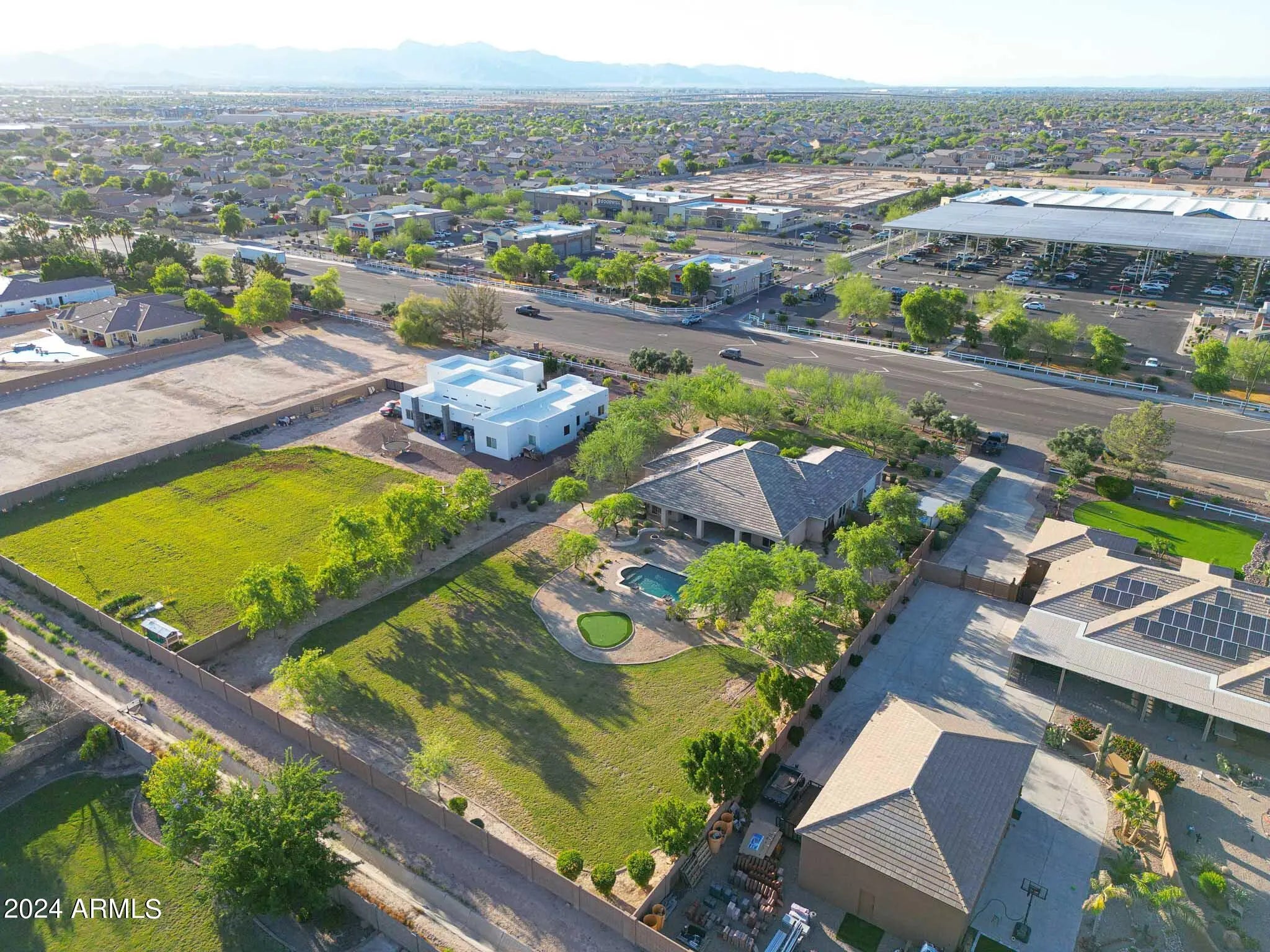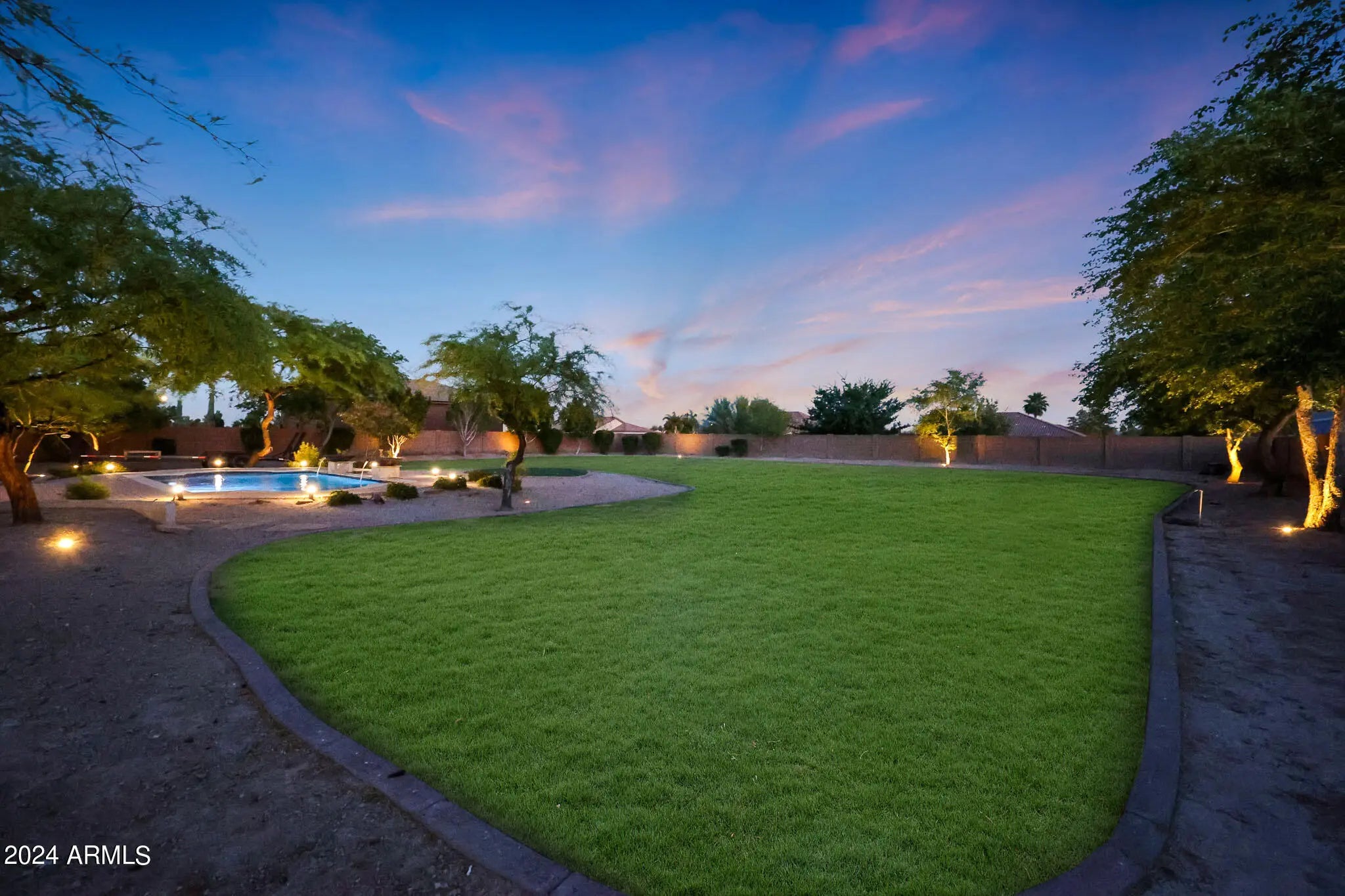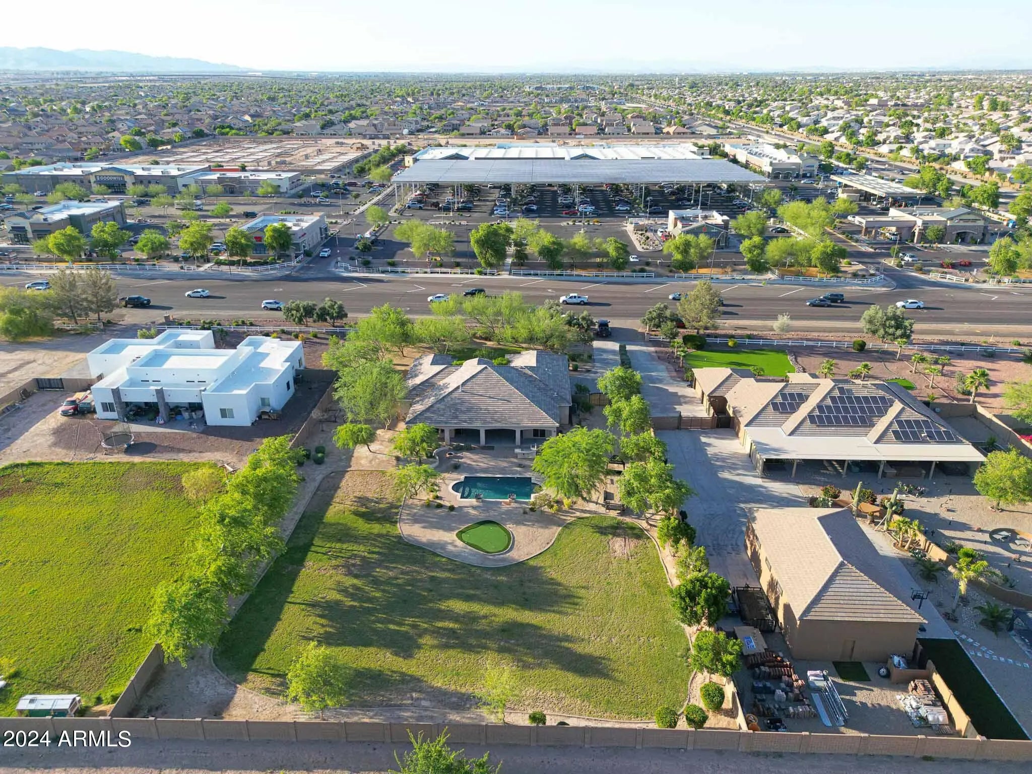 Luxury Redefined: 5 Bedroom Custom Estate with Pristine Features. Located on a sprawling lot of over an acre, this exquisite custom home blends sophistication with practicality, offering the perfect sanctuary for families and entertainers alike. Boasting 5 generous bedrooms and 3.5 lavish bathrooms, including a self-contained casita with its own full bathroom, this residence ensures comfort at every turn. Step inside to discover a grand open-concept kitchen featuring sleek granite countertops, a glass tile backsplash, and top-of-the-line stainless steel appliances. The breakfast bar opens seamlessly into a cozy living room, anchored by a stylish gas fireplace, creating an inviting space for gatherings. The master suite is a true retreat, complete with a sliding glass door leading to the lush backyard, a sunken bathtub with jets for ultimate relaxation, a modern snail shower, dual sinks, and a separate walk-in closet. A Jack and Jill bathroom mirrors this luxury with a sunken tub, surrounded by chic tile and granite countertops. Functionality meets style in the large laundry room, equipped with ample cabinetry, a sink, and granite countertops. Outside, the expansive covered patio is an entertainer's dream, featuring a built-in BBQ, a vast grass area, and a stunning pool, perfect for Arizona's sunny days. Also, the backyard is a coveted irrigated lot. Located conveniently close to shopping and freeway access to both the 303 and I-10, this home offers both privacy and accessibility. Whether it's luxurious living or high-end entertaining, this property promises to deliver an unmatched lifestyle. Make this breathtaking estate yours and indulge in the sophistication and comfort it offers every day.