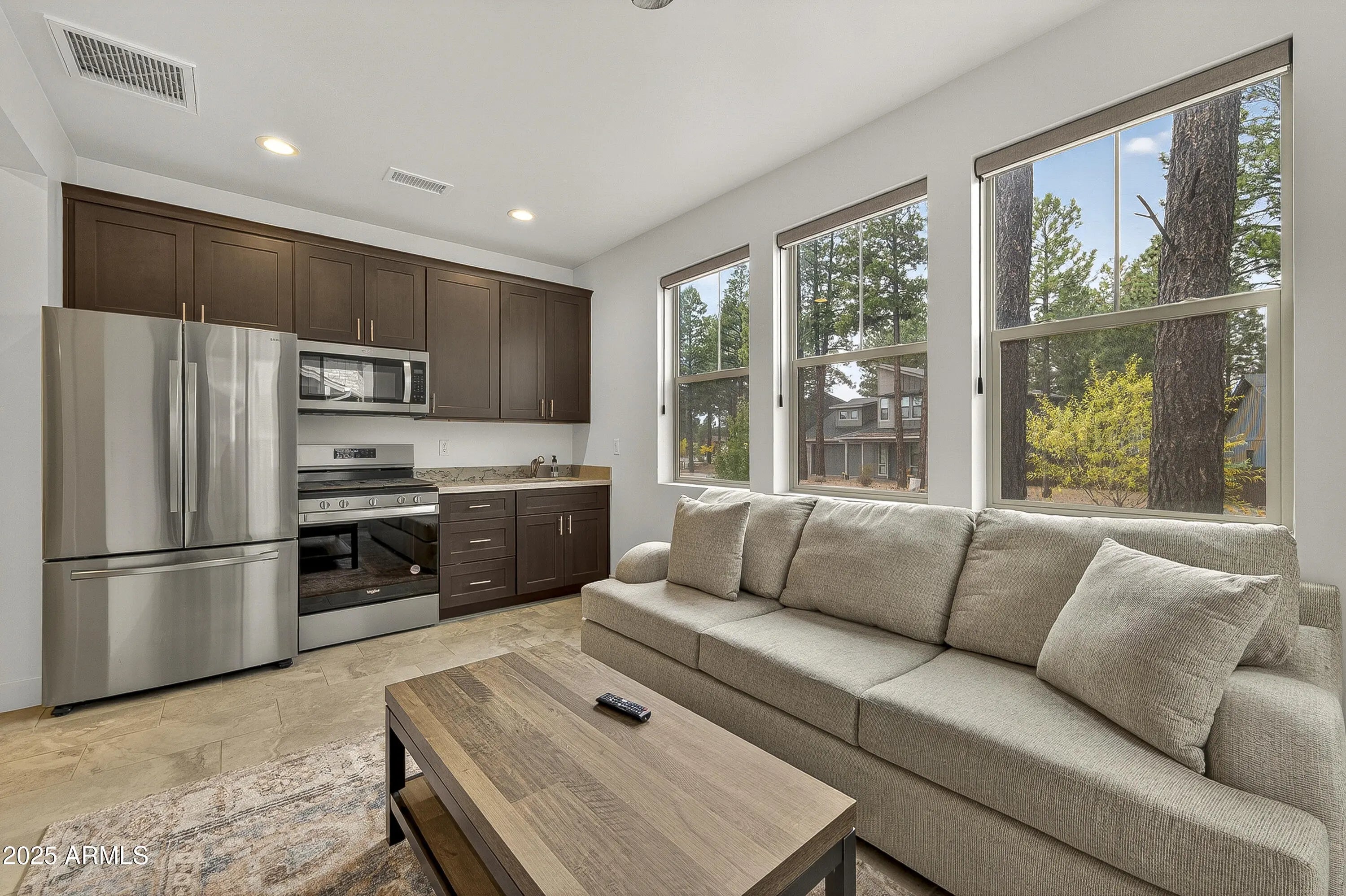 * Motivated Seller * Discover refined single-level living in this 4-bedroom, 3.5-bath residence located in Flagstaff's highly sought-after Timber Sky community. Built in 2022, this thoughtfully designed home blends contemporary style, sustainability, and everyday comfort in one of the city's premier neighborhoods. The open great-room design includes a kitchen overlooking the living area with fireplace, creating a functional and inviting space for guests. The split-bedroom floor plan provides three separate sleeping zones, allowing privacy for multiple parties. A private-entry casita adds strong flexibility and rental appeal. Built as a Zero Energy Ready Home with spray-foam insulation, Low-E dual-pane windows, dual A/C units, tankless water heater, automated roller shades, and a 240V EV-ready garage outlet, delivering lower operating costs and guest comfort. Interior upgrades include custom cabinetry, upgraded countertops, designer flooring, and a seamless single-level layout. The exterior features fully finished front and back yards with artificial turf, pavers, gutters, and an extended paver driveway ideal for low-maintenance ownership. Previously operated as a part-time short-term rental. All furnishings are available under a separate bill of sale, making this property move-in or rental ready. Excellent opportunity for STR, vacation home, or full-time residence in Flagstaff.