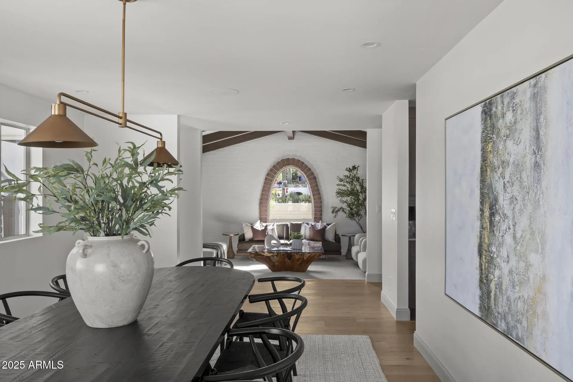 A stunning reimagining of modern Spanish architecture, this 4 bed, 4.5 bath residence is perfectly positioned on a rare, resort-style lot with mountain views front and back, just two streets from Paradise Valley and backing directly to the Phoenix Mountain Preserve trail. Spanning 4,170 sq ft, the home embodies timeless sophistication with rich natural textures, warm finishes, and curated details throughout. Inviting living spaces flow effortlessly to the outdoors, creating an ideal setting for elevated desert living. The owner's suite is a private sanctuary with serene views and refined finishes, while lush landscaping, mature mesquite trees, and a sparkling heated pool complete this one-of-a-kind retreat that captures the essence of modern luxury in the heart of the desert.