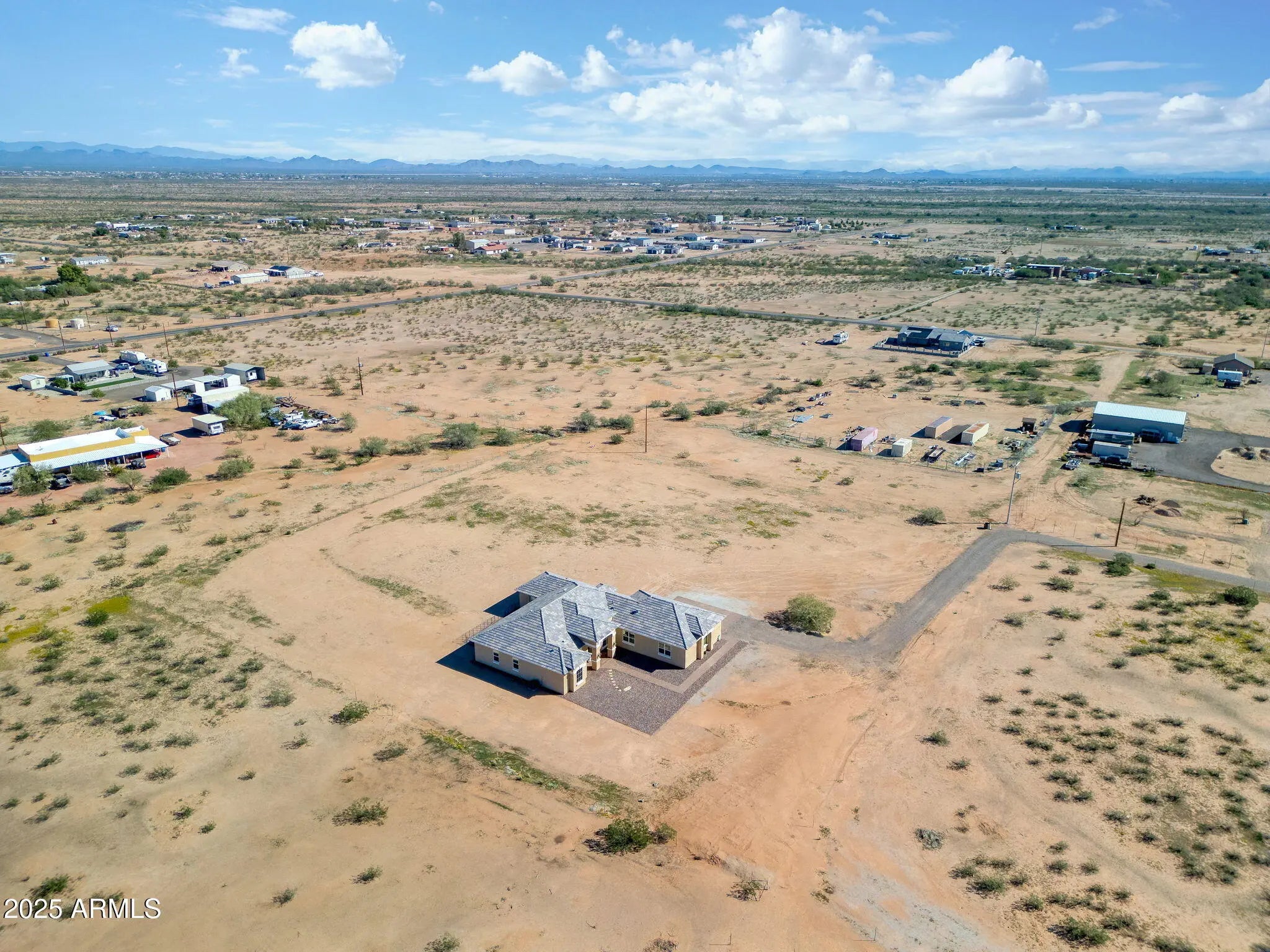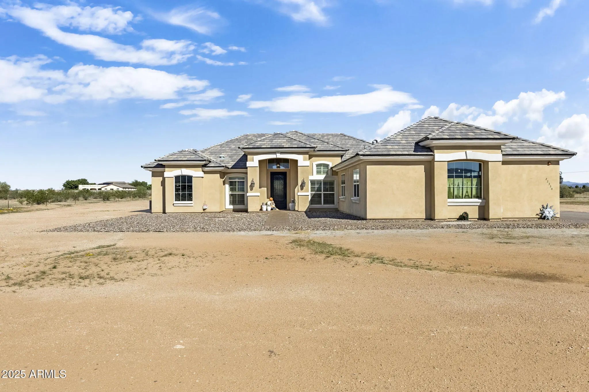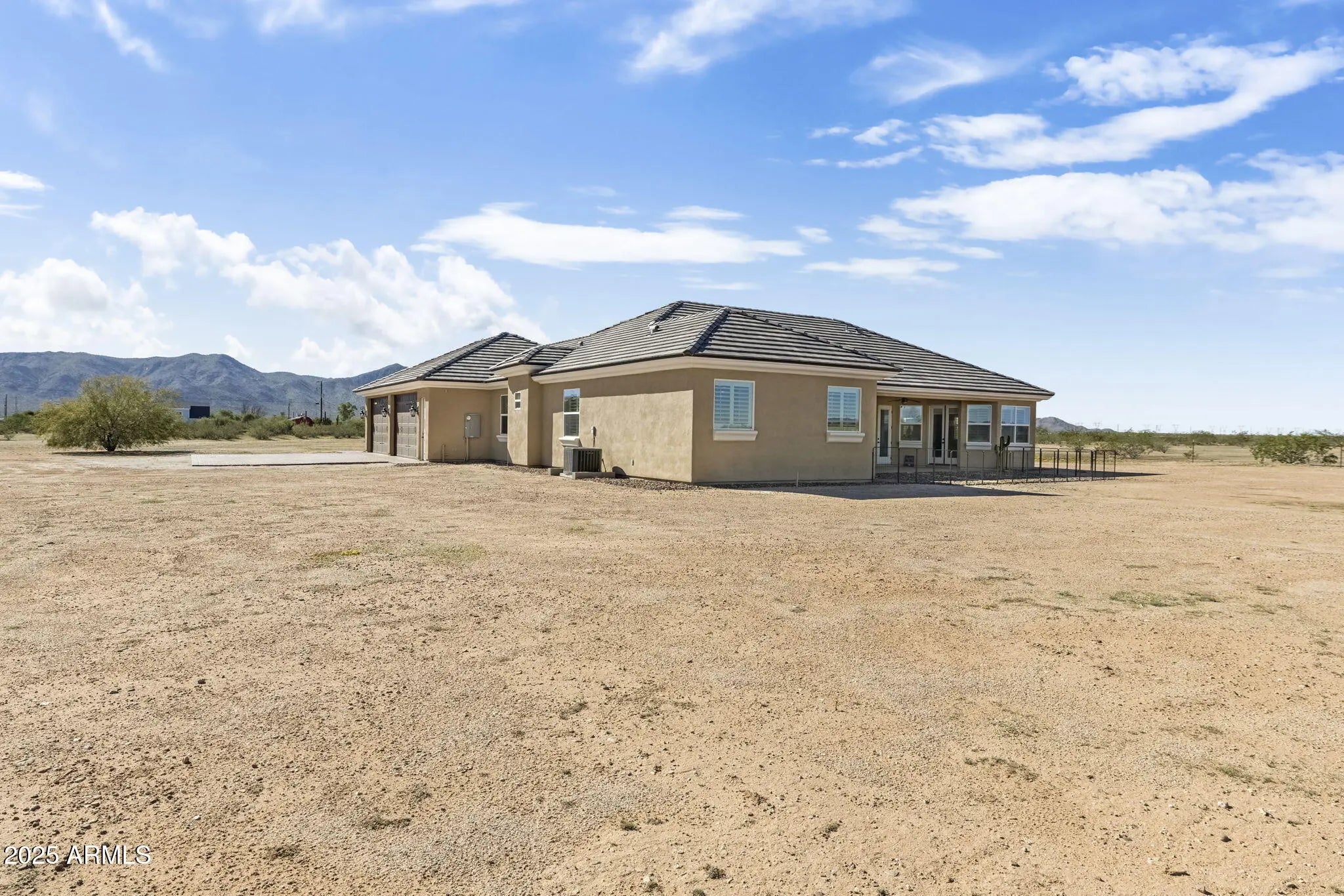 Custom Surprise Estate - Ultimate Desert Retreat. This stunning 3-bedroom, 3-bath plus den custom home sits on 2.5 private acres with panoramic mountain and desert views. Soaring ceilings and abundant natural light create open, inviting living spaces throughout. The gourmet kitchen is ideal for both everyday living and entertaining, showcasing quality finishes and a functional layout designed for the home chef. Elegant design elements shine throughout the home, blending style and practicality. The spacious primary suite offers a sitting area, custom dressing closet, and a luxurious ensuite with clawfoot soaking tub and mountain views. The expansive property provides endless possibilities: create an equestrian estate, add a pool or casita, or explore split-and sell options. 4-car garage.