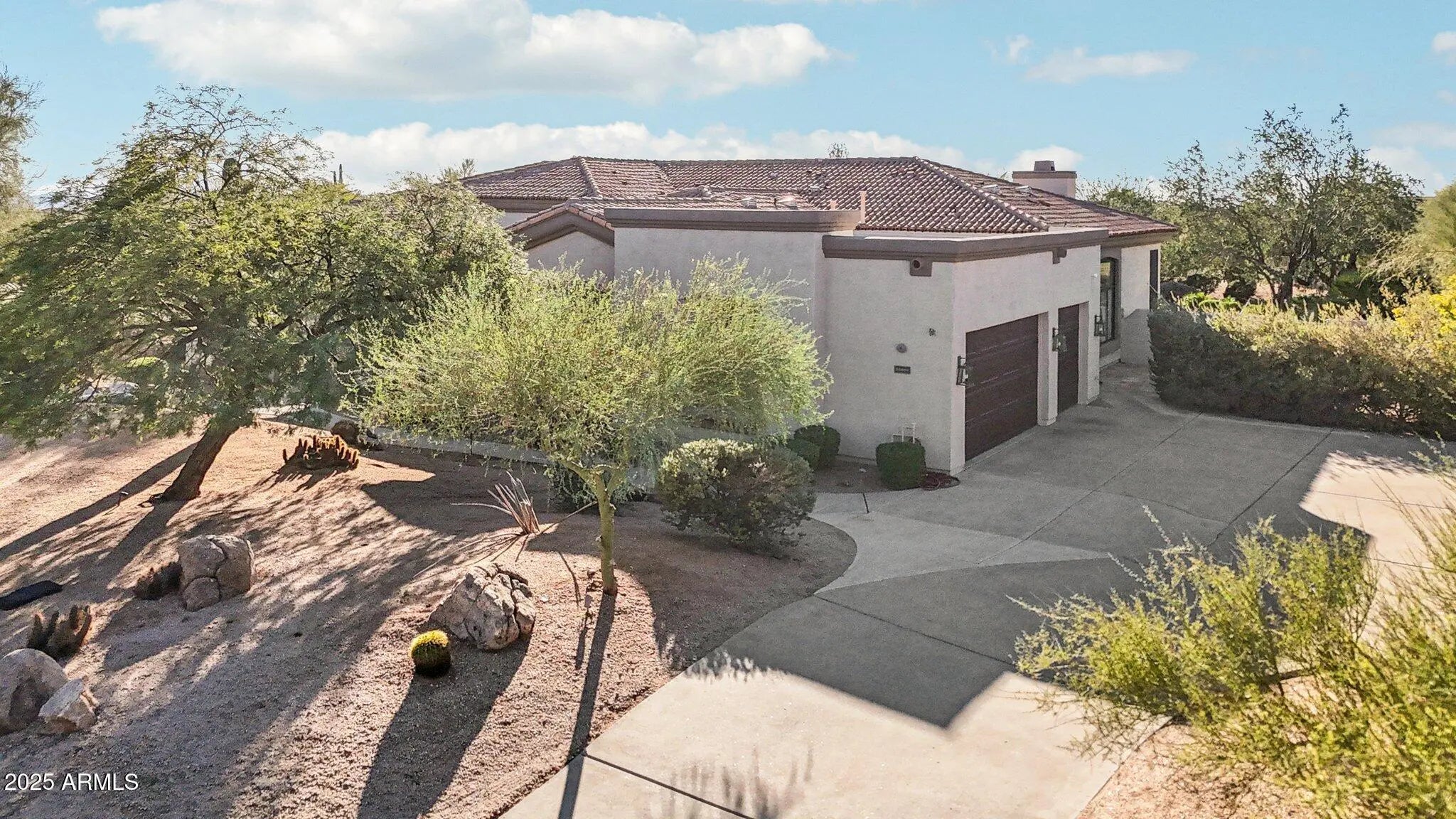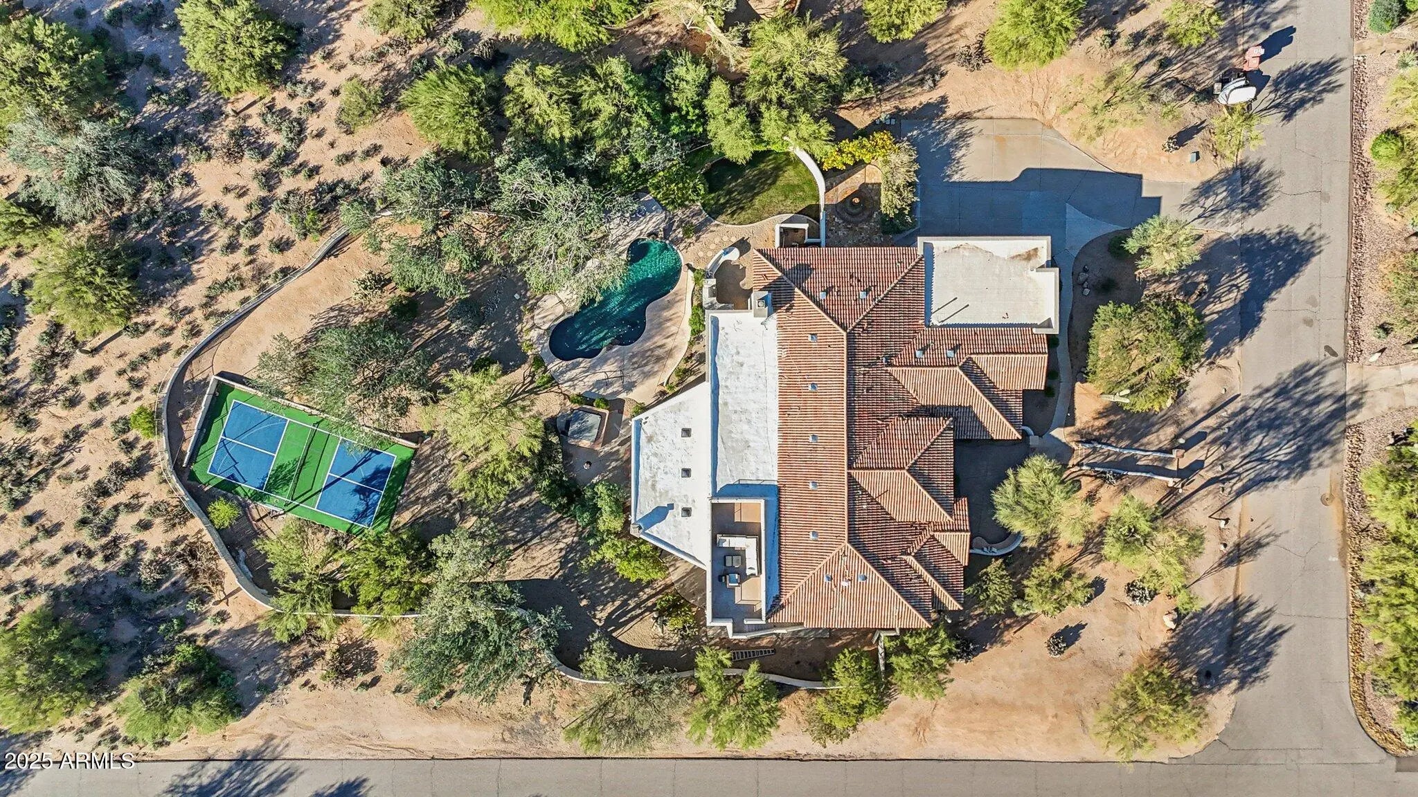 Motivated Seller! Arguably the best-priced home in Happy Valley Ranch, positioned $500,000 below the closest offered home in the community. Seller-approved $75,000 full tear-off tile roof replacement with upgraded underlayment and code-plus installation; new dark gray flat cement tile roof to be completed February 2026 with a 40-year transferable warranty. Thoughtfully remodeled with intention, this single-story corner-lot Chisum Trail estate was reconfigured to enhance layout, flow, and overall functionality. Remodeled beginning in 2022 and further refined through 2024 and 2026, the home offers cohesive design, improved livability, and resort-style living in one of North Scottsdale's most coveted communities. At the heart of the home, the fully remodeled chef's kitchen has been re oriented for modern living, featuring new appliances including a Thermador gas range with pot filler, custom full-dimension cabinetry, expansive quartz countertops with pop-up outlets, and a large waterfall island that opens seamlessly to the main living and dining areas. Nearby entertaining spaces are centered around an LED-lit, temperature-controlled 400-bottle wine gallery with leathered stone back wall, a redesigned built-in bar with RO-enhanced ice maker and beverage refrigeration drawers, and a dramatic floor-to-ceiling leathered stone fireplace overlooking the living room, ideal for entertaining. Five oversized sliding glass doors bring in abundant natural light and strengthen the indoor-outdoor connection. Wide-plank warm wood flooring extends throughout the home, while each bedroom includes a private en-suite bath and walk-in closet for comfort and privacy. The primary suite has been reconfigured to improve flow and functionality, offering separate custom his-and-hers closets, a clawfoot soaking tub, an added breakfast bar, and direct access to the outdoor living areas. Situated on a private 1.2-acre lot with a natural wash providing additional separation from neighboring homes, the outdoor spaces feel open and intentional. A rare 1,200-square-foot extended covered patio with a built-in fireplace serves as a true extension of the home, complemented by a custom barbecue and lounge area with stone counters and built-in seating. An observation deck captures sweeping 360-degree valley views, city lights, and desert sunsets. The resort-style backyard is further enhanced by a professionally installed three-layer acrylic, regulation-size pickleball court with nighttime lighting and an integrated basketball setup, allowing for year-round recreation. An RV gate adds additional flexibility and convenience. Additional improvements include enhanced air circulation through added air handlers, a newly painted exterior, extensive landscape and irrigation upgrades, and updated pool equipment. (Complete improvement list available in the document section.) This is a rare opportunity to own a highly executed renovation in Happy Valley Ranch, where design, functionality, and outdoor living come together seamlessly.