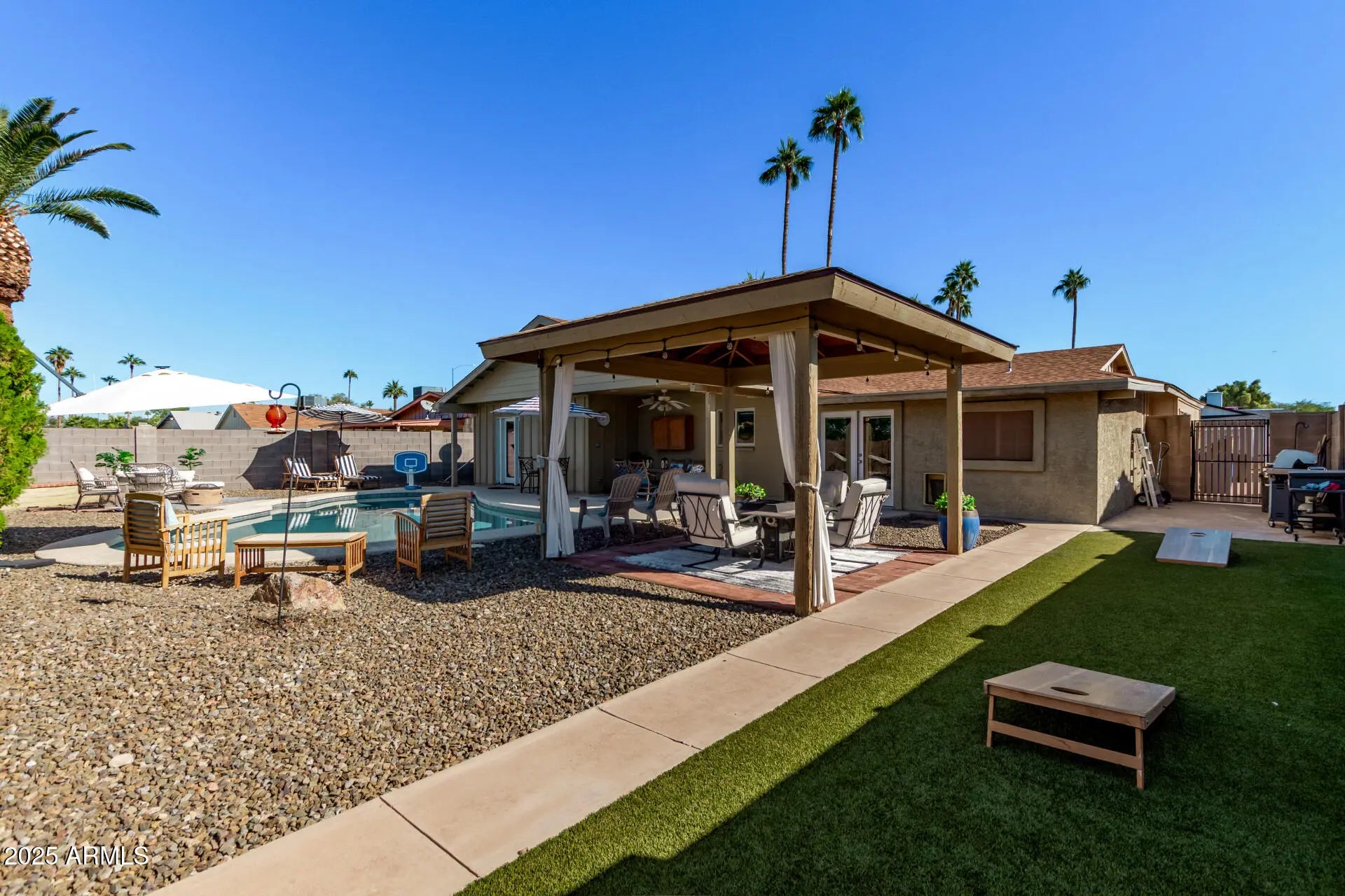 This beautifully updated 3-bed, 2-bath entertainer's dream home perfectly situated near the vibrant Tempe Marketplace District & Downtown Mesa. This home combines modern upgrades, effortless comfort, and an unbeatable location close to dining, shopping, and nightlife. Step inside to find a bright, open layout with stylish finishes and thoughtful updates throughout. The spacious kitchen flows seamlessly into the living and dining areas—perfect for gatherings with family and friends. Outdoors is where this home truly shines! Enjoy your private pool, covered gazebo, and plenty of space for entertaining, relaxing, or hosting weekend BBQs. Whether you're lounging by the pool or enjoying AZ's beautiful evenings under the stars, this backyard is designed for year-round enjoyment.